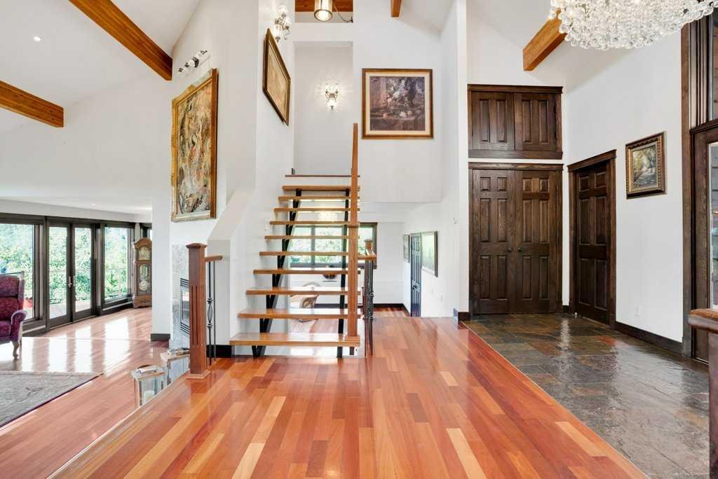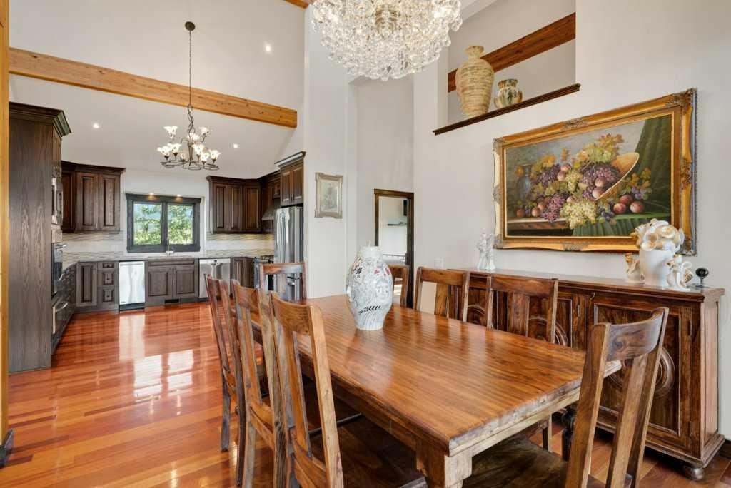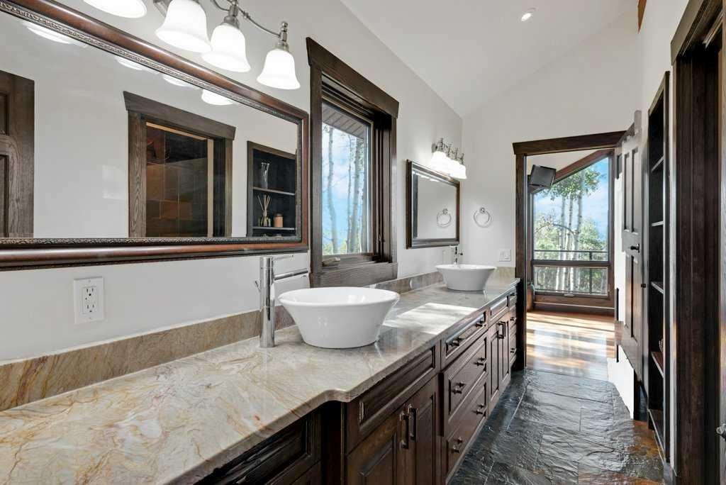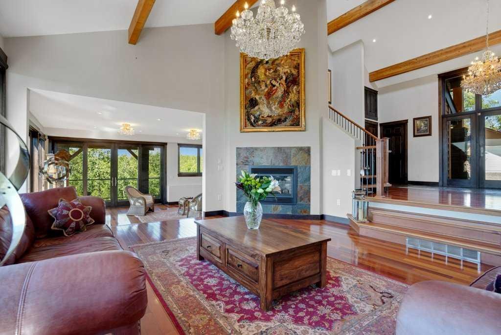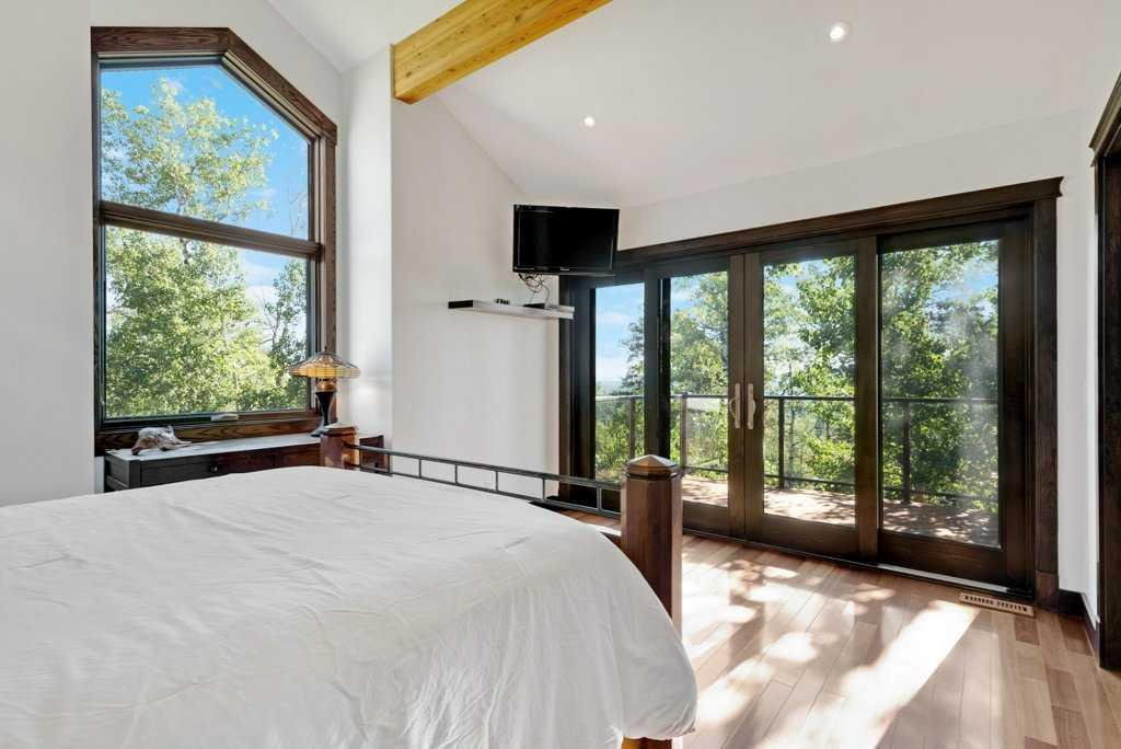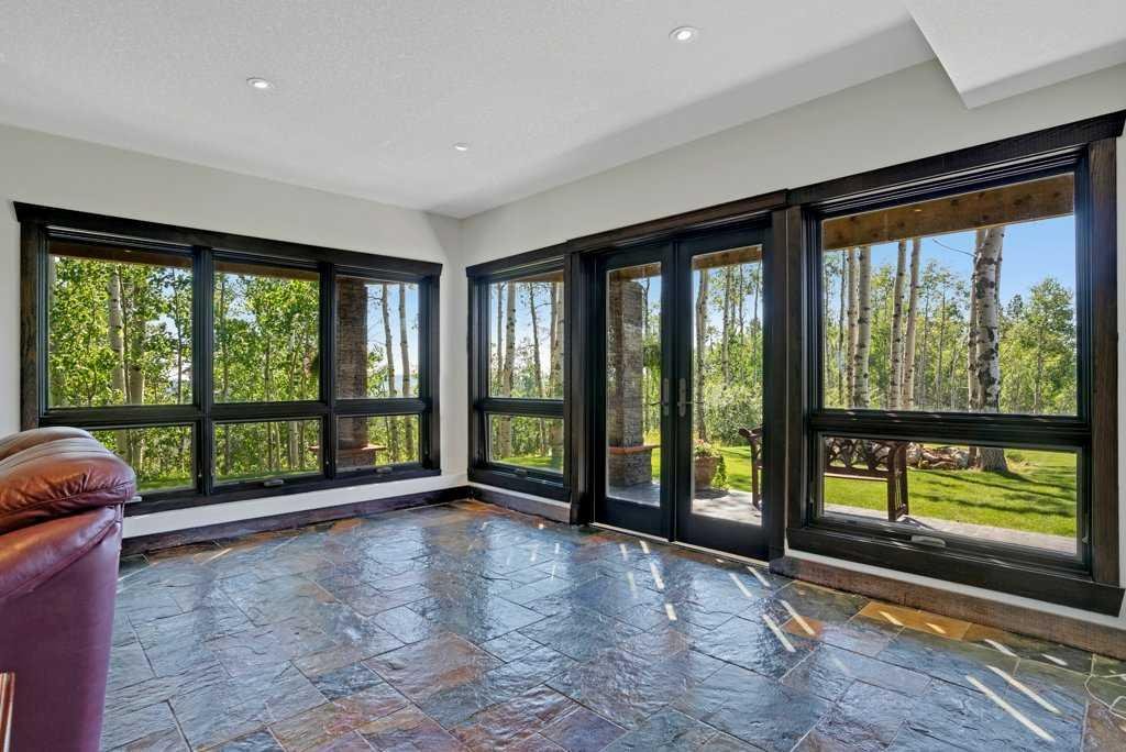 The Bragg Creek Trifecta: many properties have one of these three coveted things, but very few have it all! First, a beautiful home. Redesigned by award winning, internationally acclaimed designer, John Haddon, the 3968 sq. ft. of living space was taken down to the studs and rebuilt, inside and out, with the finest materials and craftsmanship. Second, incredible views of the mountains and forest. Given the seclusion and privacy, not a single curtain on any of the 55 windows impedes the breathtaking views afforded from every room. The third and most rare attribute of all, the thing that makes this “the hat trick”, is direct access to Kananaskis Country! That’s right, there is a private gate that connects to one of the most famous, beautiful, backcountry areas in Alberta, where you can hike or bike or ride for days. This home, sitting on 23 acres, is part of a small exclusive development of properties which span a ridge and directly border K-Country – the biggest backyard of all! Entering the home, the first thing you notice is the airy interior space, with cathedral ceilings and huge windows. The slate foyer gives way to Brazilian cherry hardwood floors, flowing throughout the balance of the home. Resisting the urge to immediately rush to the windows and deck system, to the left is the dining room and kitchen with quartz countertops and high-end appliances. Further on are two high-ceiling bedrooms, each with their own access to the wrap-around deck and connected by a large Jack and Jill 5-piece en suite. The upstairs is entirely devoted to the primary suite, which is unparalleled, with the huge windows and private deck all giving a new perspective to the vistas beyond. The 6-piece bathroom and walk-in closet complete this lofty sanctuary. The walk out lower level features a bar, exercise room, office area, expansive rec room with gas fireplace, 3-piece bath, and French doors to the walk-out patio and huge deck beyond. The property is completed by an insulated and drywalled triple car garage. You’re intrigued, I can tell, and further investigation is needed. Explore using our streaming video and 3-D tour; and then take the next step and make the Trifecta your own.