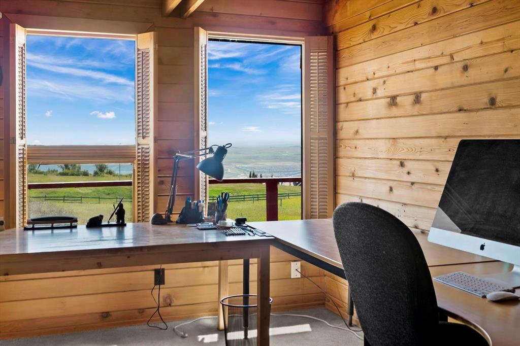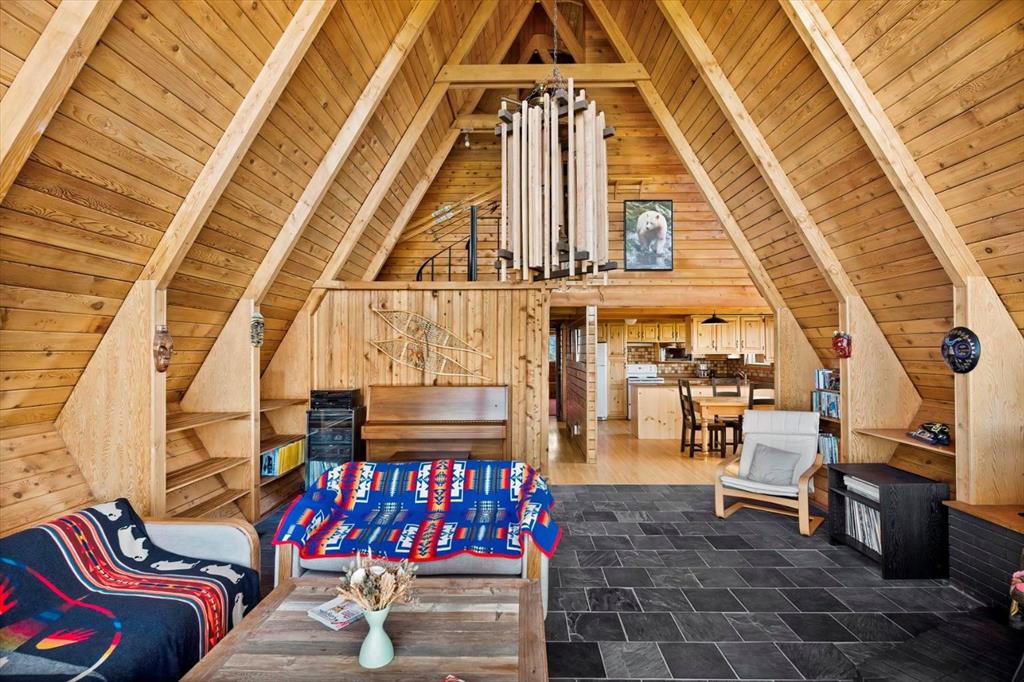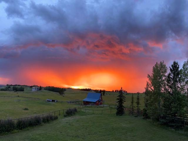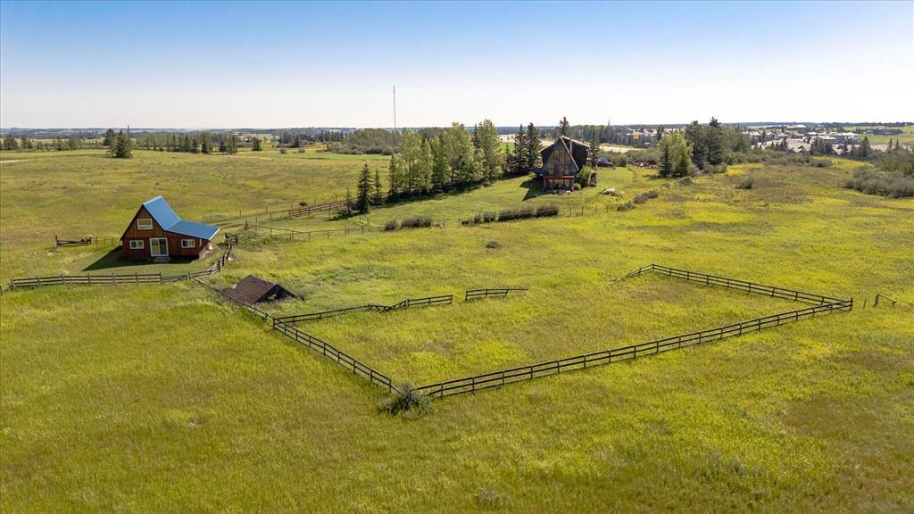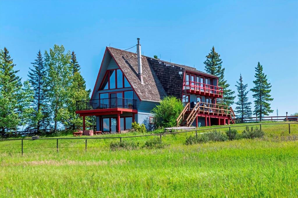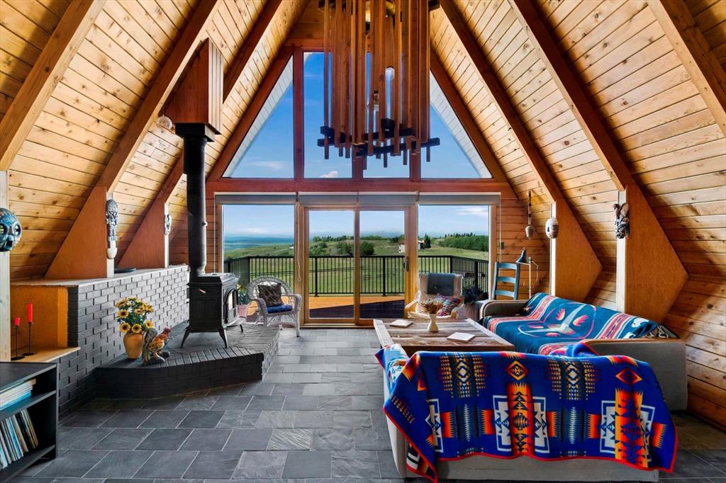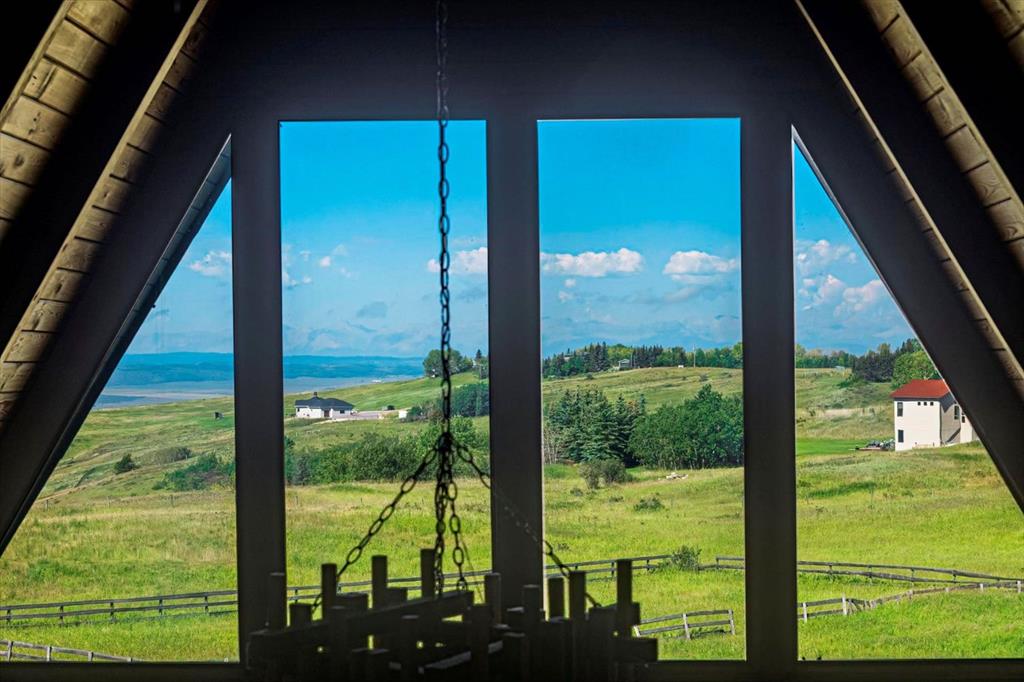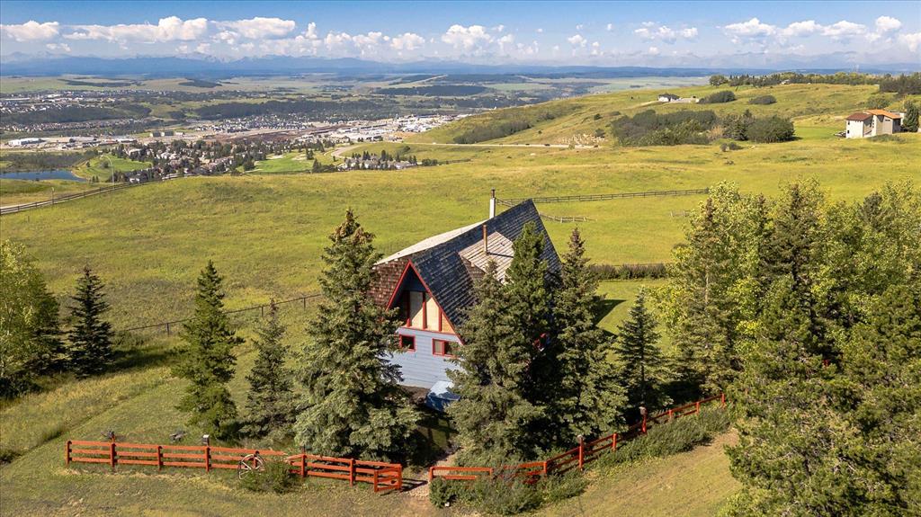 From the country road just five minutes from Cochrane, this A-frame cedar chalet appears as a charming retreat tucked among the trees. Step back to discover the extraordinary truth – 20 sweeping acres unfold before you, revealing some of the most coveted panoramic views in the region, stretching east to west toward the Rocky Mountains. All this and yet you are just a 5 minute drive to Cochrane, 15 minutes to Calgary and you can be at the Calgary airport in less than half an hour!