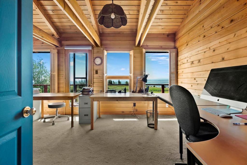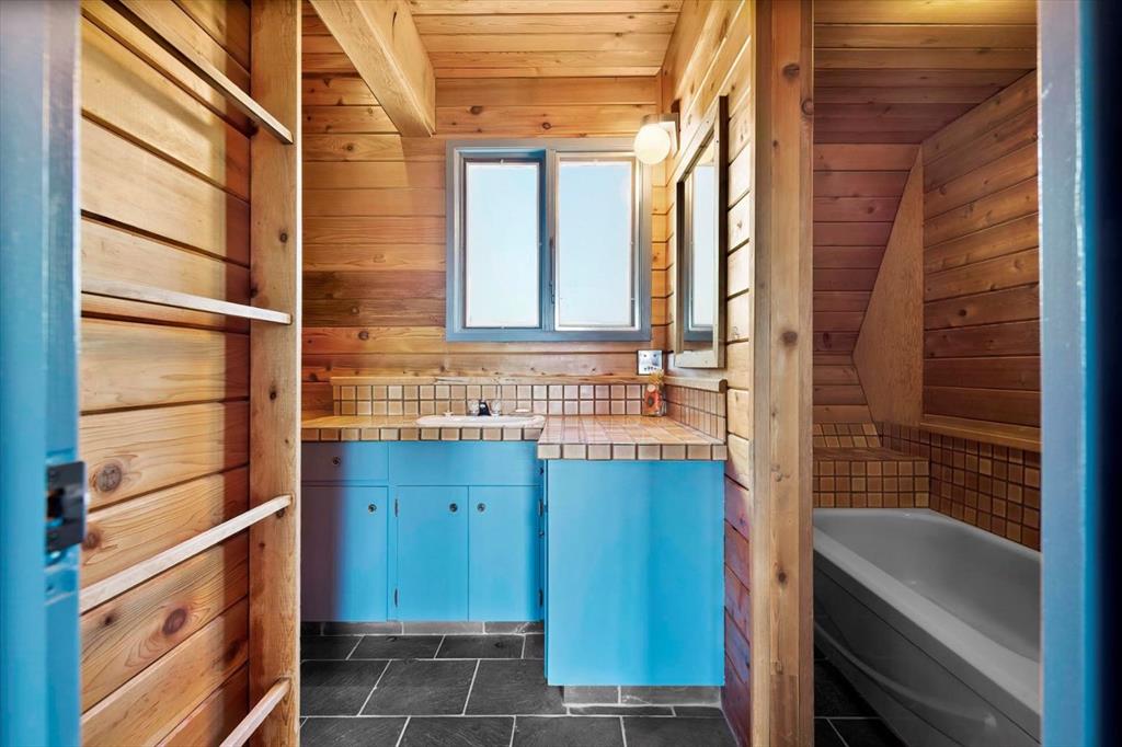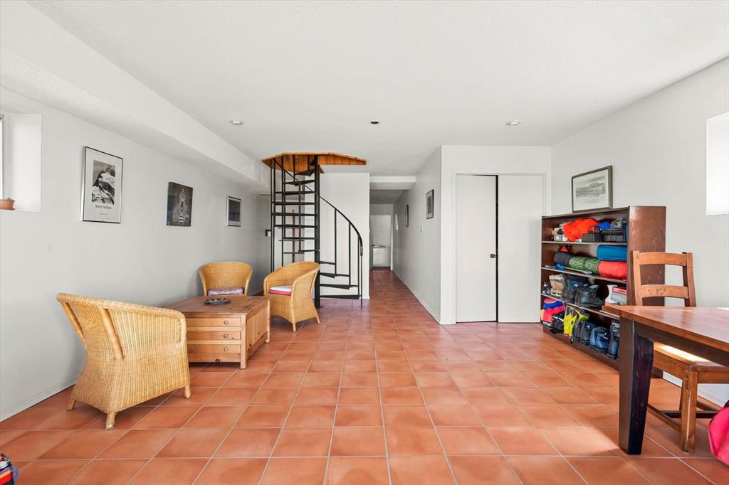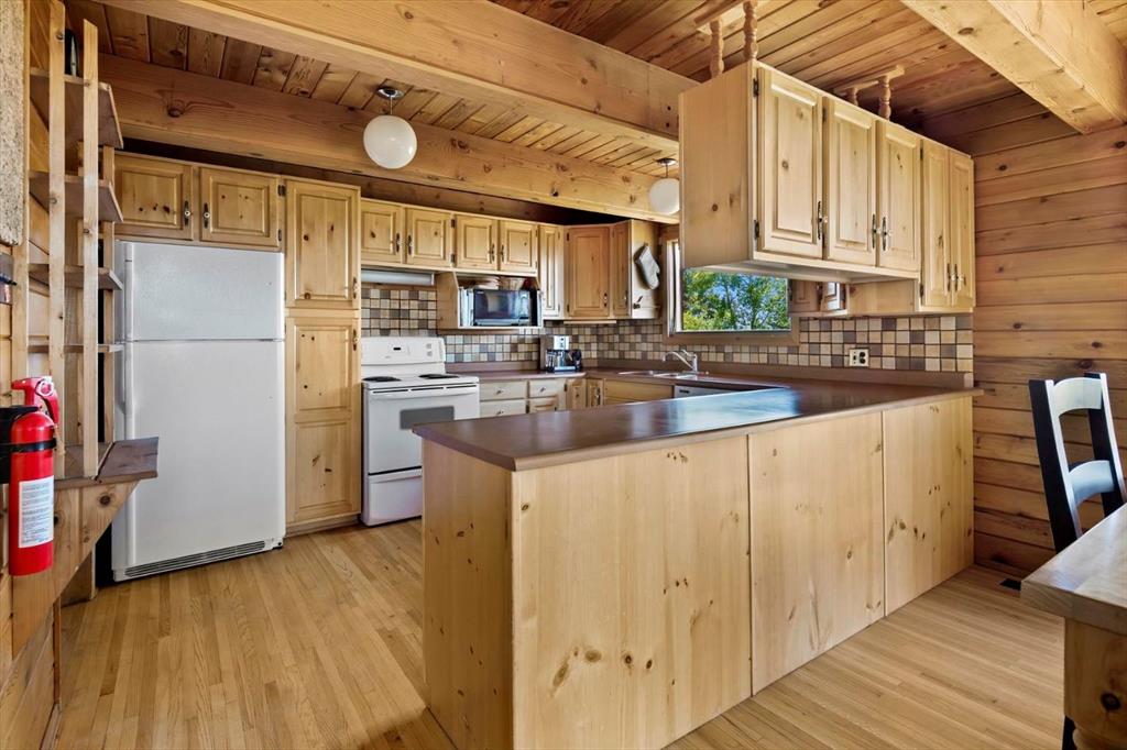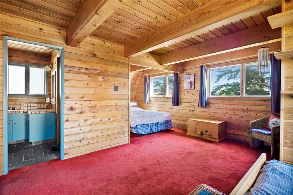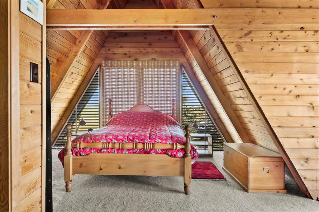 The distinctive spiral staircase connects three thoughtfully designed levels. The main floor offers rustic charm with knotty pine kitchen cabinetry, hardwood floors, and a wonderful bunkhouse-style bedroom that sparks childhood memories. Upstairs, two bedrooms include a versatile space perfect for an office, while the primary suite features a private balcony retreat for morning coffee while soaking in those remarkable views. The walkout basement provides flexible space with practical tiled floors and even includes a surprise climbing wall for adventure-seekers.