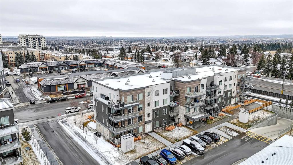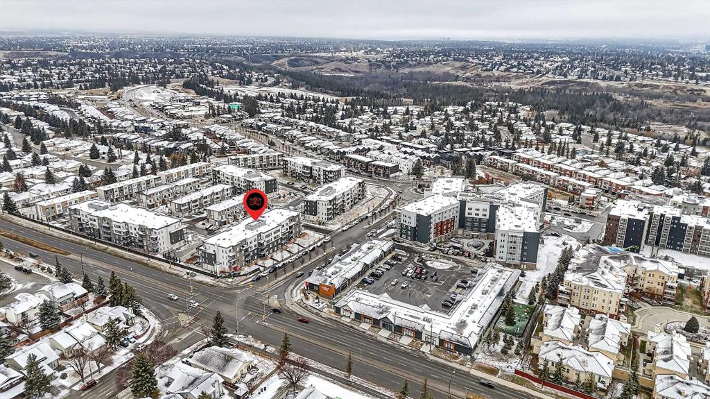 Welcome home to Park South at Fish Creek Exchange in the unique community of Shawnee Slopes. This gorgeous top floor, 2-bedroom, 2-bathroom, 790 sqft (852 sqft Builder Size) condo is full of upgrades! Luxury vinyl plank flooring flows seamlessly throughout the unit (no carpet!), 9’ ceilings, and two air conditioning units to keep you comfortable during the hot Calgary summers. The kitchen features beautifully upgraded shaker style cabinets, quartz counters, upgraded appliances including a no-back oven range, offering a sleek look and allowing more of the upgraded backsplash to be seen. Undercabinet lighting adds another level of luxury and convenience in the kitchen. The thoughtful design of the kitchen island allows additional storage and room for four stools perfect for meals and entertaining. Throughout the condo the plumbing and lighting fixtures, as well as the cabinet hardware have all been upgraded to a stylish matte black. The living room provides plenty of space for your furniture to make it feel like home. The balcony is offset from the neighbours allowing for privacy and includes a gas line for a bbq. The primary bedroom has its own AC unit allowing you to set the perfect temperature while you sleep. The large walkthrough closet was thoughtfully designed having a pocket door to the bedroom, and a separate door to the bathroom. The 3-piece ensuite features a walk-in shower, black fixtures, and quartz counter. The second bedroom is a great size whether you use it as a bedroom, guest room, or office. After a long day, relax in the bath of the 4-piece main bathroom. Both bathrooms have been upgrades with tile installed to the ceiling allowing for easy cleaning. This condo includes a titled parking stall that is conveniently located right beside the door to the elevator. It also includes a titled storage locker, and access to secure bike storage. Enjoy the shared patio and bbq to the right of the building doors and enjoy gardening in the community garden within the complex. Shawnee Slopes was designed with luxury living and nature in mind. A pathway system surrounds most of the community, direct access to Fish Creek Park is less than a 10 minute walk, plenty of amenities are directly across the street, or a 15-20 minute walk to Millrise Sobeys, Shoppers Drug Mart, Starbucks, and more! The Fishcreek-Lacombe C-Train Station is a 10 minute walk and there is convenient access to the ring road (Stoney Trail) or Macleod Trail. Book your showing today!