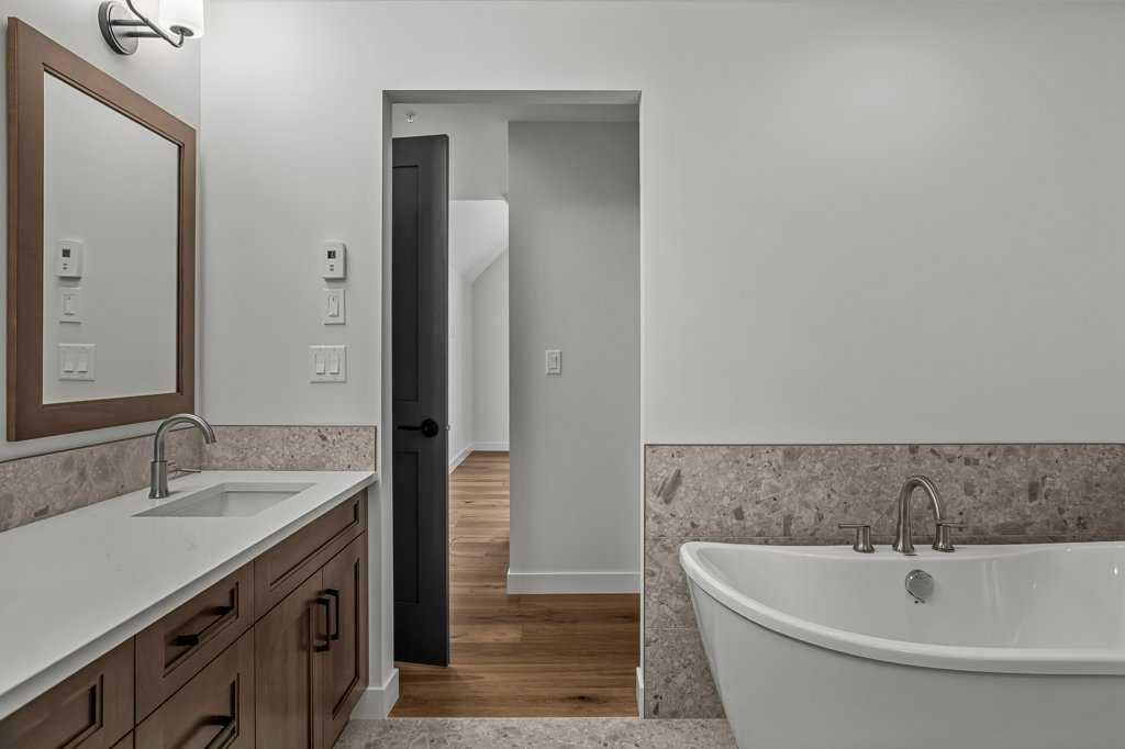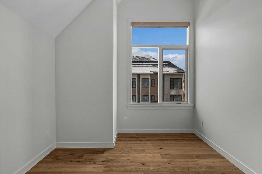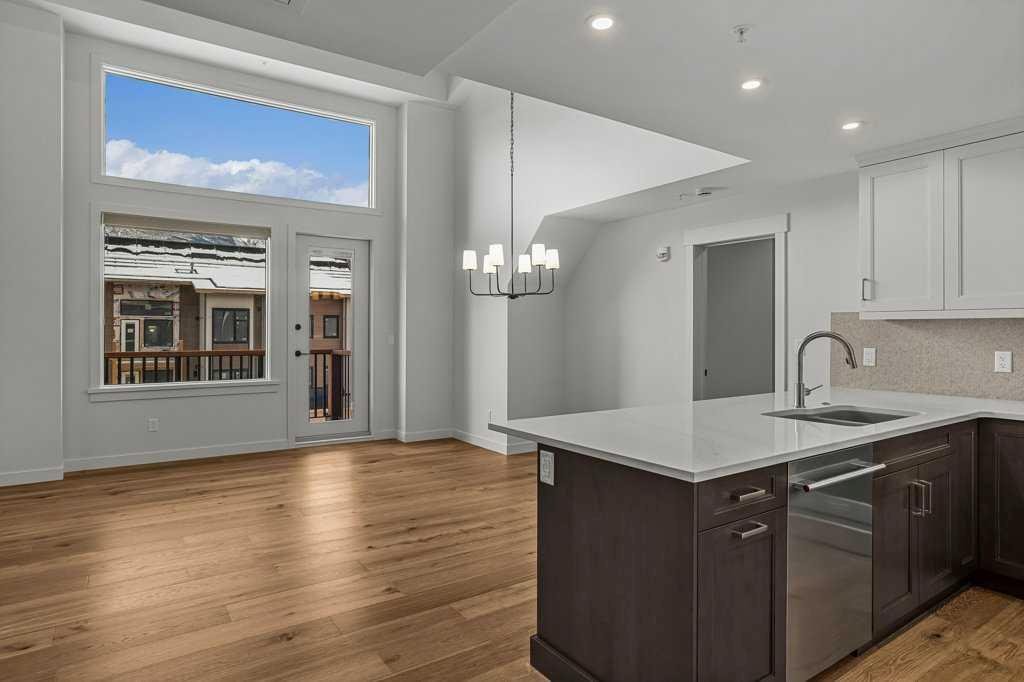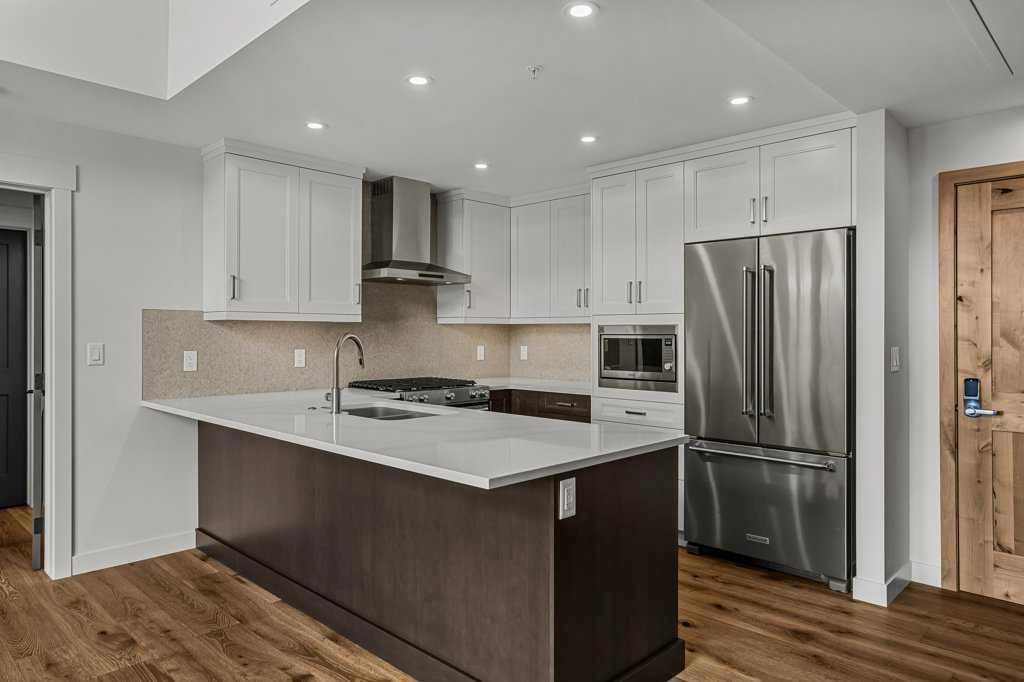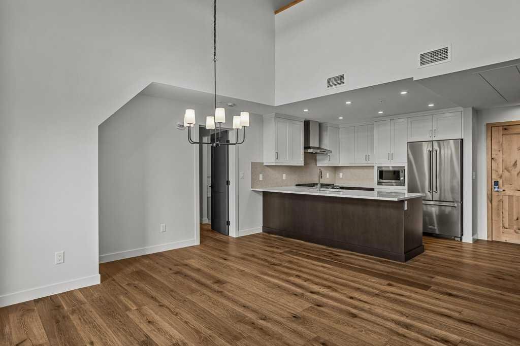 BRAND NEW PENTHOUSE IN SPRING CREEK!! This new Black Swift Lodge penthouse is ready for possession. Bathed in natural light with great mountain views this mountain-modern condominium features an open concept living, wide-plank hardwood flooring throughout, a large galley style gourmet kitchen with stainless appliances, quartz counters with loads of prep space, and a generous cabinet count. The efficient floorplan separates the two bedrooms on opposite sides of the condo providing additional privacy. The primary bedroom features a walk-in closet with upgraded wood shelving and an inviting 5-piece ensuite complete with large stand alone soaking tub. The generous loft is ideal for families, or extra flex space. Black Swift Lodge features a great corner exercise room on the main level, and a lovely common hot tub in the landscaped courtyard. Located very near the Spring Creek Plaza with the conveniences of the new Bridgette Bar restaurant, Rusticana market, and another restaurant to open very soon, and easy access to the path network along the creeks as you take a short stroll to Main Street Canmore.
