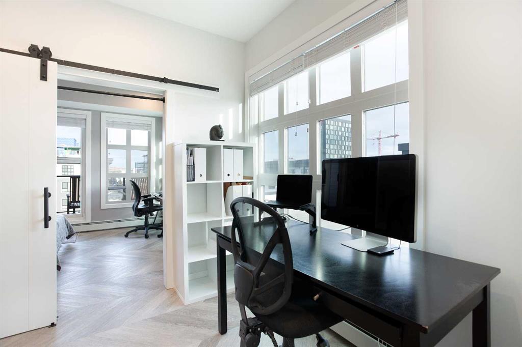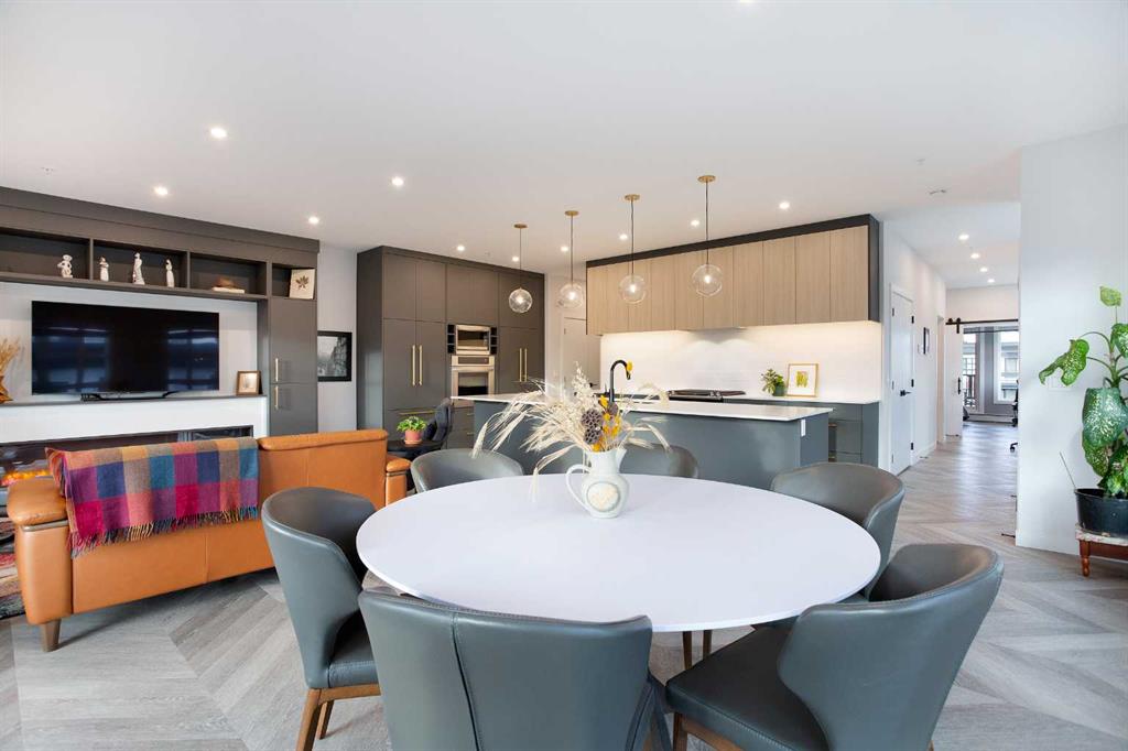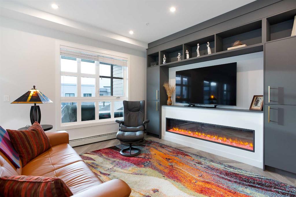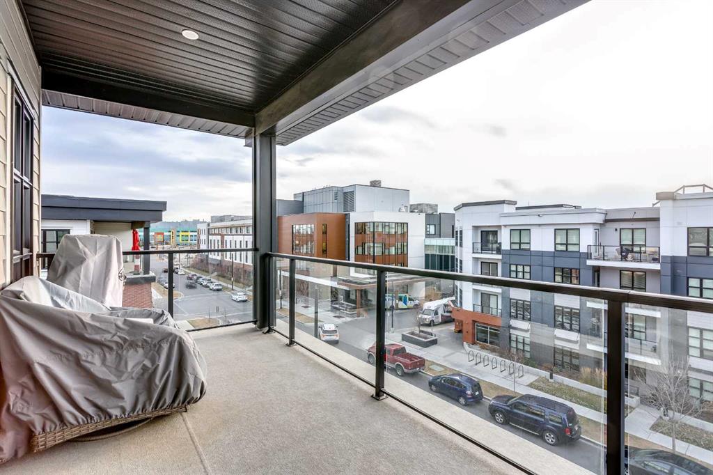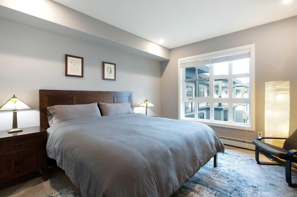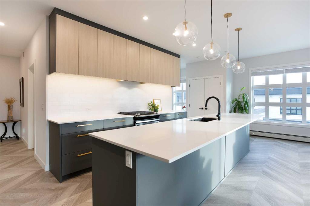 Welcome to Esquire in the University District! This CORNER UNIT, TOP-FLOOR PENTHOUSE is designed for luxury, style and comfort. The gourmet kitchen features a 12-foot central island, TWO built-in refrigerators, a gas range, a built-in oven, a built-in microwave and a bar fridge making entertaining and preparing meals a delight! The spacious living room features gorgeous herringbone flooring and a stylish electric fireplace with built-ins. TWO balconies provide beautiful views – one facing west with MOUNTAIN VIEWS! and the other facing east overlooking the courtyard and park. The primary bedroom has an OVERSIZED walk-in closet with custom built-ins and a luxurious 4-pc ensuite with a floor-to-ceiling tiled walk-in shower and dual sinks. The 2nd bedroom includes a murphy bed and has space for an office / study area. A 2nd 4-pc bathroom is in the hallway for added convenience. A laundry room, a spacious front closet and storage room and THREE underground STORAGE lockers ensure plenty of space for all your needs. TWO underground TITLED parking stalls are included. Loaded with amenities, this building offers a gym, a pet wash station, bike storage and tuning areas and a workshop. Conveniently located close to the University of Calgary, the Alberta’s Children’s Hospital, an urban dog park, Central Commons park, multiple shops, restaurants and grocery stores as well Market Mall, a daycare and the Cineplex VIP theatre. Accessing the rest of the city and downtown is a breeze with nearby transit routes and major road networks. This luxurious penthouse is waiting for you to call home! Call to book your private showing today.