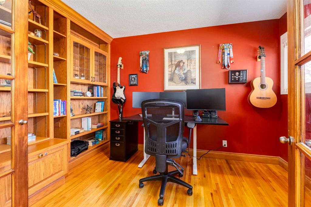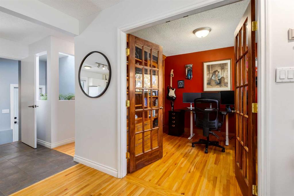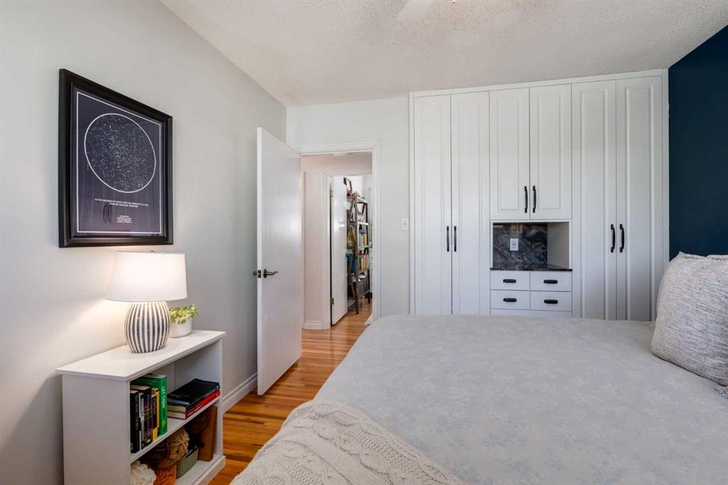 Ideally situated in the quiet, inner-city community of Glendale, this well cared for gem showcases 5 bedrooms, 2 bathrooms, countless upgrades, a single garage, large backyard with mature trees, and a phenomenal location across from a school, steps from the community centre, parks, greenspaces, tobogganing, and outdoor hockey rink. This RC-G zoned, 50×100′ lot features a home with charming curb appeal, a large font yard and matures trees and front planters. As you enter this beautiful home, you are greeted by gorgeous solid oak, site finished hardwood flooring and an open concept layout including a spacious kitchen, bright living room, and a dining room with windows overlooking the beautiful and spacious south backyard. The kitchen boasts a center island with bar seating, tons of counter space, and white solid wood shaker style cabinets with ample storage. The adjacent living room is flooded in natural light through floor to ceiling bay windows and boasts an elegant gas fireplace with marble style surround and a classic white mantle – perfect for cozying up to watch the snow fall outside and to gather around for holidays. Enjoy coffee at your dining room table while watching your kids or pets play in the spacious south-facing backyard. Through double French doors you’ll find the main floor office with beautiful built-in bookcases and shelving, making it the perfect work from home space, or a third bedroom on the main level. The main floor is completed by a full 4-piece bathroom with recent updates. This home boasts a separate back entryway providing access to the lower, giving it the potential to add a legal suite in the future. The lower-level features brand new carpeting, two spacious bedrooms, one with a giant walk-in closet, a large media space, room to play, a large storage area, laundry machines, and a fully renovated 3-piece bathroom with new tile, vanity, and a spacious stand-up shower. Park in the single detached garage and enjoy the summertime in the sprawling south facing backyard with room to play. Other upgrades include central A/C (2021), triple pane windows upstairs (2017), an irrigation system (front and back), a new hot water tank (2024), new sump pump (2025), furnace (2014). Enjoy unobstructed views no neighbors out your windows and the school playground in the distance from your living room windows. This superb location is one block from the Glendale community center which features picturesque scenes, an outdoor rink, tennis courts, a playground, and flows into Turtle Hill Park, which is perfect for enjoying an evening walk in nature. This home is also a quick walk to multiple schooling options including Spanish bilingual, French Immersion, Montessori, Catholic, and public schools, and is a short commute downtown. This wonderful home is extensively upgraded, provides a peaceful inner-city lifestyle in a lower density family friendly community, and affords a great commute to amenities and downtown.