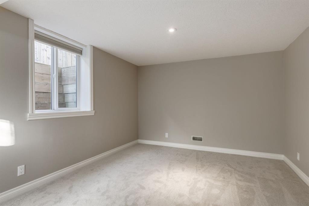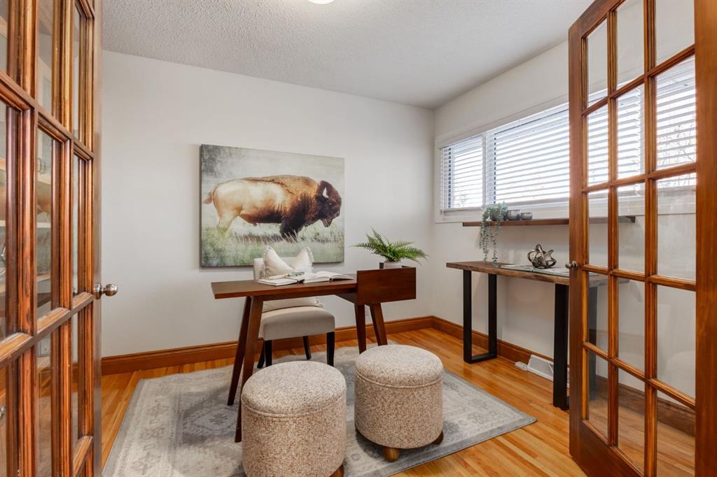 Ideally situated in the quiet, inner-city community of Glendale, this well cared for gem showcases 5 bedrooms, 2 bathrooms, countless upgrades, a single garage, large backyard with mature trees, and a phenomenal location across from a school, steps from the community centre, parks, greenspaces, tobogganing, and outdoor hockey rink. This RC-G zoned, 50×100′ lot features a home with charming curb appeal, a separate back entryway (ideal for a future suite), a large font yard and matures trees and front planters. As you enter this beautiful home, you are greeted by solid oak, site-finished hardwood flooring and an open concept layout including a spacious kitchen, bright living room, and a dining room with windows overlooking the beautiful and spacious south backyard. The kitchen boasts a center island with bar seating, tons of counter space, and white solid wood shaker style cabinets with ample storage. The adjacent living room is flooded in natural light through floor to ceiling bay windows and boasts an elegant gas fireplace with marble style surround and a classic white mantle – perfect for cozying up to watch the snow fall outside and to gather around for holidays. Enjoy coffee at your dining room table while watching your kids or pets play in the spacious south-facing backyard. Through double French doors you’ll find the main floor office with beautiful built-in bookcases and shelving, making it the perfect work from home space, or a third bedroom on the main level. The main floor is completed by a full 4-piece bathroom with recent updates. This home boasts a separate back entryway providing access to the lower, giving it the potential to add a legal suite in the future. The lower-level features brand new carpeting, two spacious bedrooms, one with a giant walk-in closet, a large media space, room to play, a large storage area, laundry machines, and a fully renovated 3-piece bathroom with new tile, vanity, and a spacious stand-up shower. Park in the single detached garage and enjoy the summertime in the sprawling south facing backyard with room to play. Other upgrades include central A/C (2021), triple pane windows upstairs (2017), an irrigation system (front and back), a new hot water tank (2024), new sump pump (2025), furnace (2014). Enjoy unobstructed views no neighbors out your windows and the school playground in the distance from your living room windows. This superb location is one block from the Glendale community center which features picturesque scenes, an outdoor rink, tennis courts, a playground, and flows into Turtle Hill Park, which is perfect for enjoying an evening walk in nature. This home is also a quick walk to multiple schooling options including Spanish bilingual, French Immersion, Montessori, Catholic, and public schools, and is a short commute downtown. This wonderful home is extensively upgraded, provides a peaceful inner-city lifestyle in a lower density family friendly community, and affords a great commute to amenities and downtown.