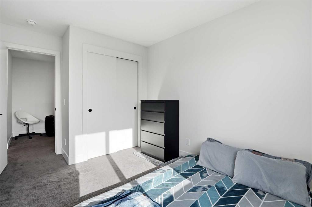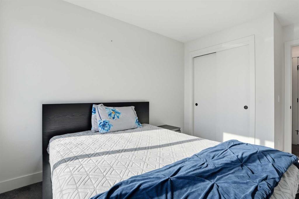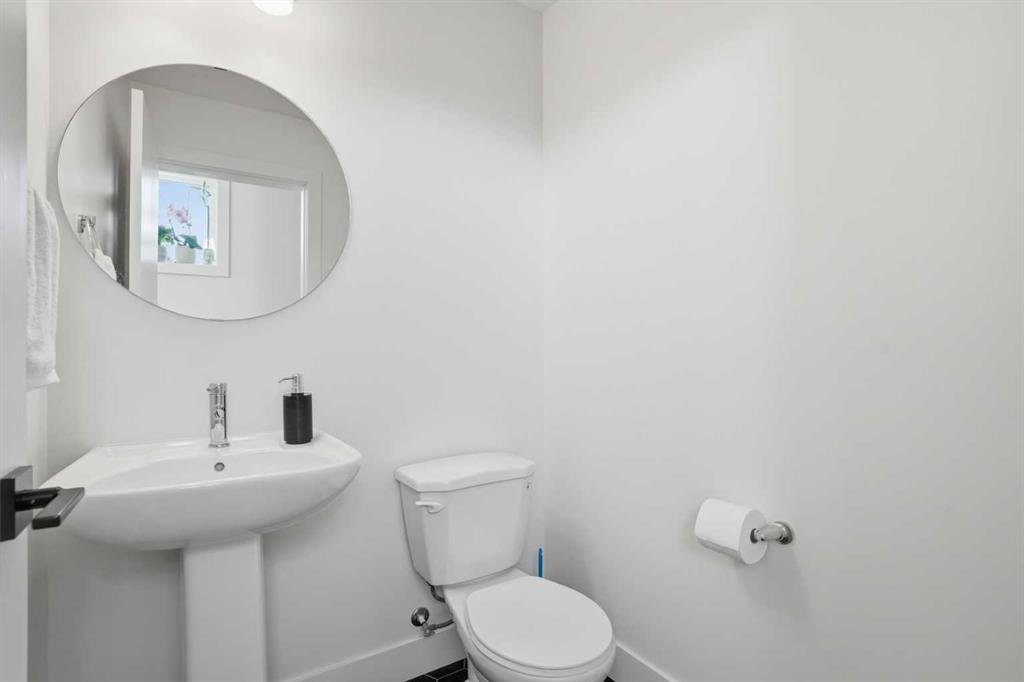 The open-concept main floor is filled with incredible natural light from large windows and features high ceilings and recessed lighting. The kitchen is beautifully finished with sparkling quartz countertops, two-toned cabinetry, stainless steel appliances, and a stylish honeycomb backsplash. A centred breakfast bar with barstool seating provides the perfect spot for casual meals. The kitchen, dining, and living areas flow seamlessly together, creating a welcoming space for both everyday living and entertaining. Just off the living area is access to the first of two balconies—ideal for easy indoor/outdoor cooking and dining during the warmer months. A 2-piece powder room completes this level.