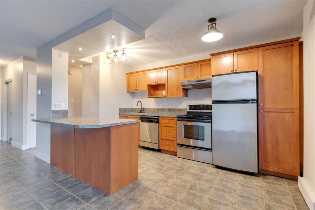 Open concept concrete building with 2 BEDROOMS + 1 bath and IN-SUITE LAUNDRY has been remodeled with designer colors and offers an abundance of light throughout. The open layout includes a renovated kitchen with maple shaker cabinets, stainless steel appliances & a spacious island open to the living & dining room with access to your private oversized balcony with downtown views. Two large bedrooms each with large windows & a shared 4-piece bathroom. Fantastic inner-city location within walking distance to the Downtown core, public transportation, and everything that trendy 17th Avenue has to offer. Don’t forget the covered assigned parking stall.
