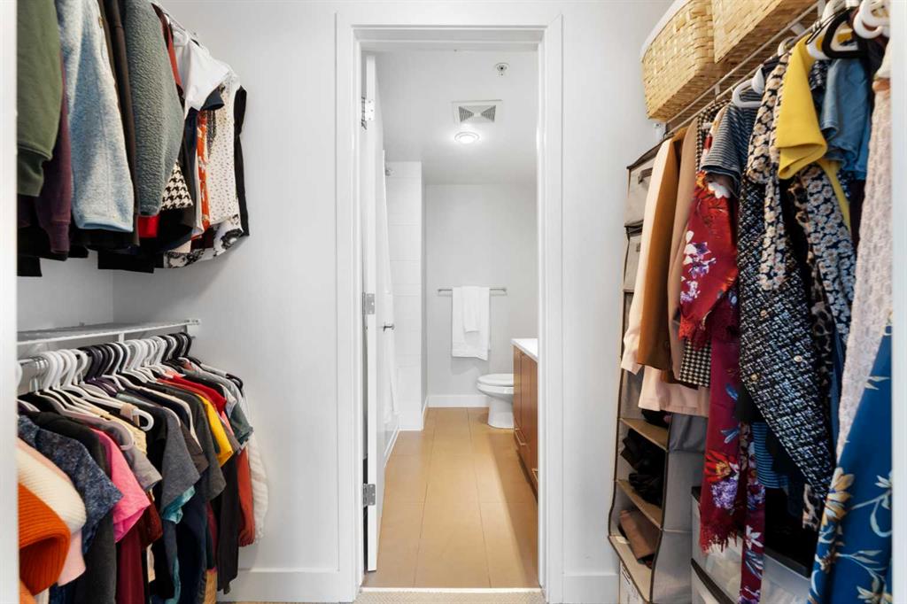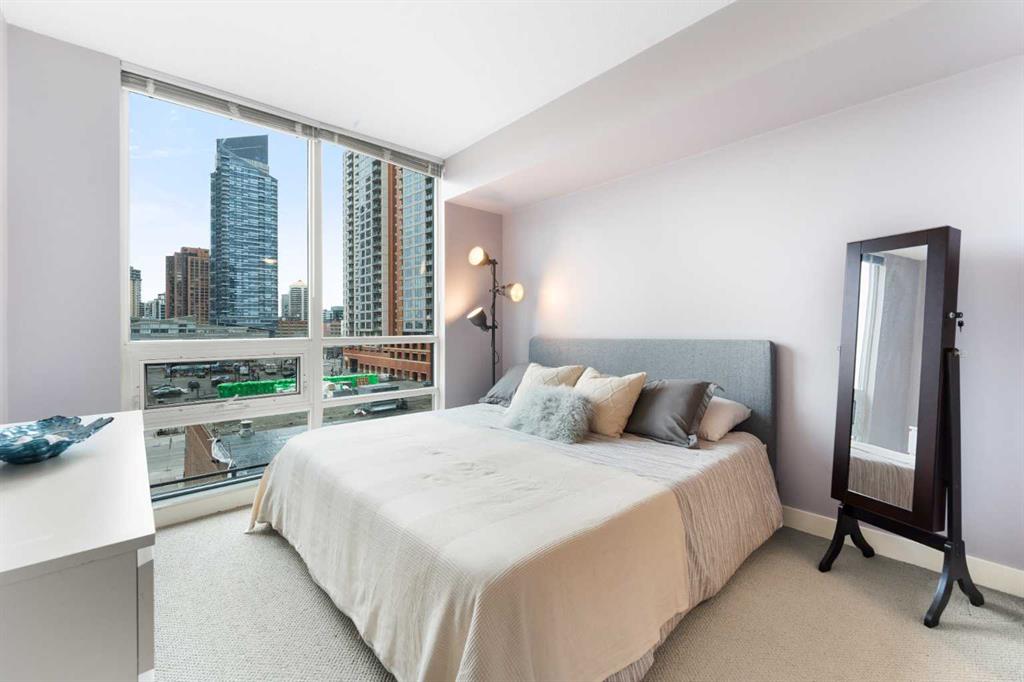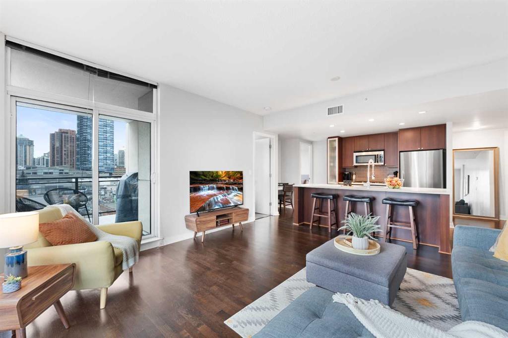 Welcome to this exceptional 2 bedroom, 2 bathroom corner unit featuring desirable west exposures, titled underground parking, in-suite laundry with additional storage, plus a separate secure storage locker. Thoughtfully designed with an inviting open-concept layout, the home is complemented by a contemporary kitchen showcasing a large central island, quartz countertops, stainless steel appliances including a gas cooktop and built-in oven, and rich wood cabinetry—perfect for both everyday living and entertaining. Floor-to-ceiling windows fill the living room and both bedrooms with an abundance of natural light. The spacious primary bedroom offers a walk-through closet and a well-appointed 4-piece ensuite complete with a deep tub and oversized vanity. The second bedroom is generously sized, making it ideal as a guest room or bright home office. Residents of Nova enjoy access to premium amenities, including a fully equipped fitness facility with separate men’s and women’s steam rooms, an owners’ lounge with wet bar, guest suites, 24-hour concierge service, and heated underground parking. Ideally located with a walk score of 92, this property is just steps from the restaurants, pubs, shops, and parks along 17th Avenue, Prince’s Island Park and Eau Claire, and only a 5-minute walk to the C-Train. Co-Op grocery store is also conveniently located just one block away. Whether you’re searching for a place to call home or a strong investment opportunity in as established building, this unit is a must-see.