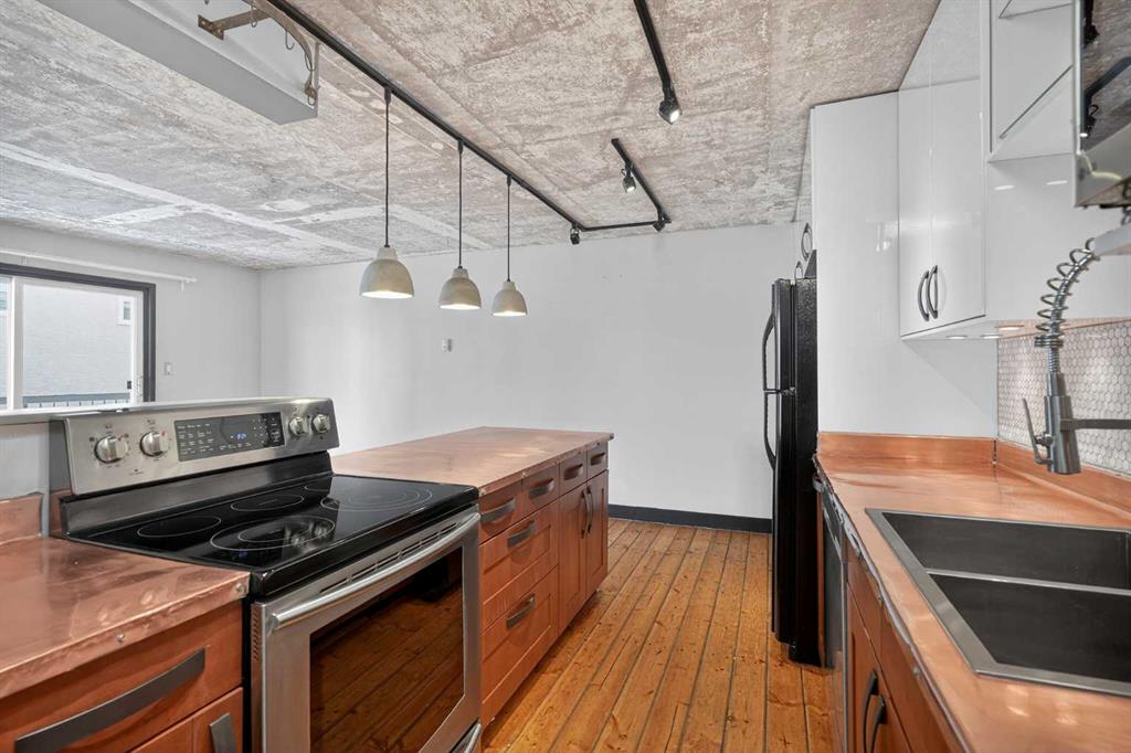 Forget the ordinary. This top-floor gem in the vibrant community of Sunalta offers a rare blend of industrial-chic charm and everyday functionality. If you’ve been looking for a home that reflects your personality, this is it. A fun industrial feeling in the kitchen is a true conversation starter, featuring custom copper countertops that develop a beautiful patina over time, complemented by an abundance of cabinetry and sleek tile work. No carpet here! Enjoy the durability and style of hardwood and tile throughout the entire unit—perfect for easy maintenance and a modern look. Being on the top floor means no upstairs neighbors and plenty of natural light. Step out onto your private east-facing balcony to enjoy your morning coffee on the private balcony. This is a “larger-than-average” one-bedroom floor plan. The living room offers a generous footprint for entertaining, and the bedroom is a true sanctuary with enough room for a king-sized suite. Skip the basement trek; your laundry is in-unit, with extra space for your gear. Keep the snow off your car with your own outdoor covered parking stall. You are just a short walk to the Sunalta C-Train station, making your commute to the downtown core, SAIT, or the University of Calgary a breeze. Sunalta is one of Calgary’s most walkable and transit-friendly neighborhoods. You are minutes away from the eclectic shops and nightlife of 17th Ave, the scenic Bow River pathways, and quick commuter access to Crowchild Trail and Bow Trail.