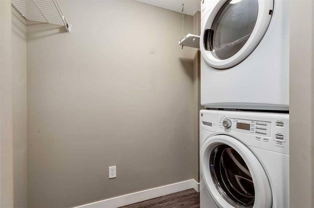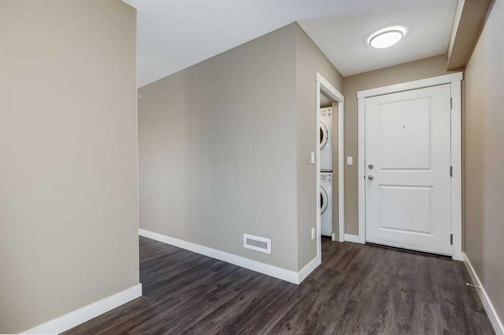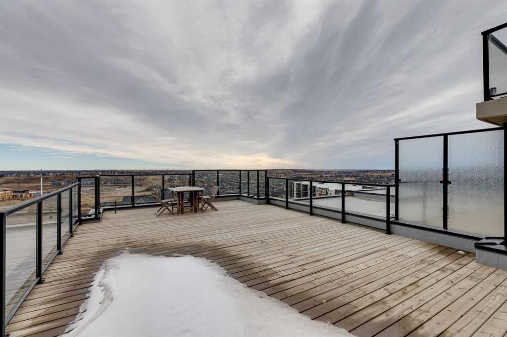 Welcome to this beautifully designed air-conditioned two-bedroom corner condo featuring in-suite laundry, titled parking, and titled storage, plus an incredible rooftop terrace complete with a gas line – perfect for summer BBQs and outdoor entertaining. As you enter, you’re greeted by a spacious flex area ideal for a home office. Laminate flooring flows throughout, leading you into a bright, modern kitchen showcasing quartz countertops, stainless steel appliances, and a convenient eating bar that opens to the dining area. The open-concept living room seamlessly connects to the kitchen, creating the perfect space for hosting family and friends. The generous primary bedroom offers a walk-through closet and a private 4-piece ensuite. A second spacious bedroom is complemented by a stylish 3-piece bathroom featuring a beautiful walk-in shower. Enjoy your northwest-facing balcony, ideal for relaxing evenings. Located close to shopping, pathways, public transit, and with quick access to Stoney Trail, this home offers both comfort and convenience.