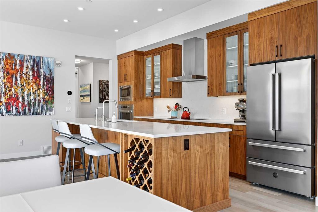 LUXURY PENTHOUSE LIVING WITH UNRIVALED INNER CITY LIVING IN UNIVERSITY DISTRICT – 21 LEBEL CRESCENT NW. Indulge in the pinnacle of upscale living in this exceptional penthouse condo in the prestigious Cabella development—located in Calgary’s premier NW lifestyle community. Offering a rare blend of expansive living space and refined elegance, this 1686+ sq ft residence is designed for those who value quality, privacy, and breathtaking surroundings. From the moment you step into the spacious foyer, you’re greeted by abundant natural light streaming through numerous large south-facing windows, creating a warm, welcoming atmosphere. Adjacent to the entrance, and adorned with a double closet, a private powder room, you’ll be swept into the heart of the condo, which features two distinct yet flowing living and dining areas, each anchored by a central island in the kitchen—ideal for entertaining or unwinding. An outdoor 12′ x 8′ covered balcony provides seasonal escapes, offering panoramic east/south views of University District, Nose Hill, the city skyline, and inner courtyard—an ever-changing natural masterpiece at your doorstep. Inside, the bespoke gourmet kitchen features white quartz countertops, upgraded cabinetry, and generous storage. In the private quarters, you’ll find a beautifully appointed in-suite laundry room with matching cabinetry and surfaces, blending utility with style. The first primary bedroom suite is a sanctuary, featuring a five-piece spa-style ensuite, a large custom walk-in closet, and oversized windows. Adjacent to this suite, a cozy second bedroom is an ideal space for reading, working, or hobbies. The third bedroom is equally luxurious, with generous proportions, large windows, and quick access to the third bathroom. This four-piece ensuite features a tiled soaker tub and a vanity with ample storage, providing convenience and comfort. This home also includes a private, attached double garage with additional storage space — a rare and valuable feature in condo living. Additionally, it’s conveniently located just a few steps from your elevator. Life at Capella is defined by lifestyle and community. Capella, developed by Brookfield Residential in Calgary’s University District, offers a “lock-and-leave” luxury lifestyle that blends high-end, maintenance-free living with immediate access to a vibrant, walkable urban environment. As part of a 200-acre master-planned community, Capella specifically appeals to a diverse demographic—including downsizers, professionals, and academics—seeking to balance comfort with convenience. Set against the backdrop of the University of Calgary, this extraordinary penthouse combines space, privacy, and refined living in an unbeatable location. Don’t miss your chance to experience luxury living at its finest—schedule your private tour today.