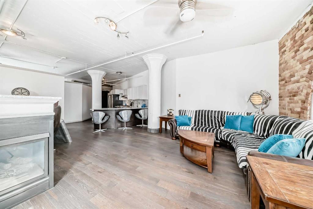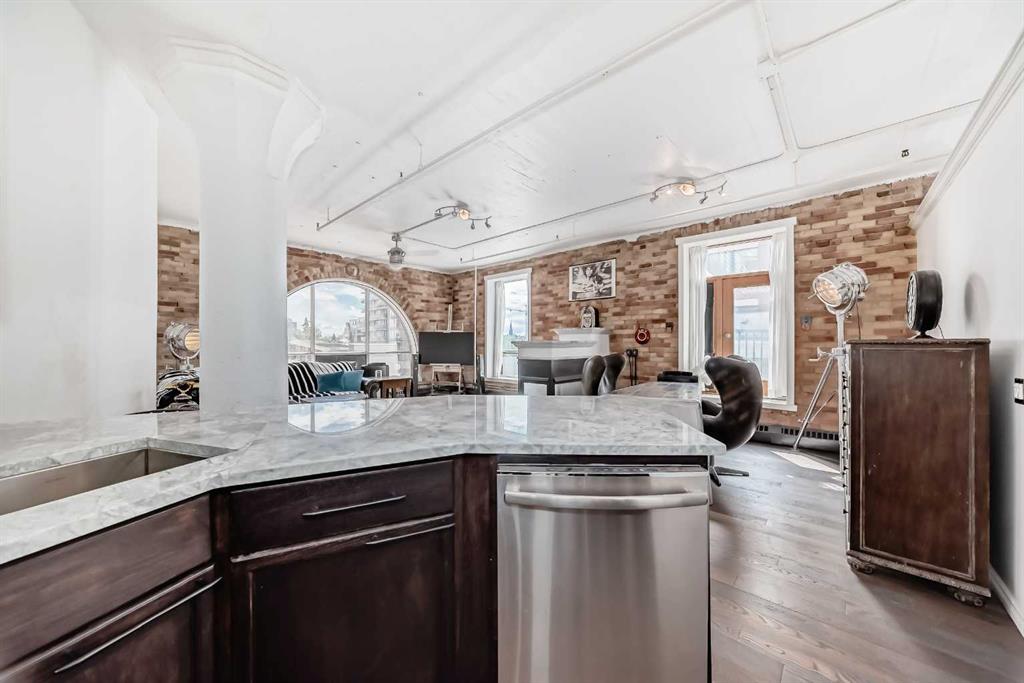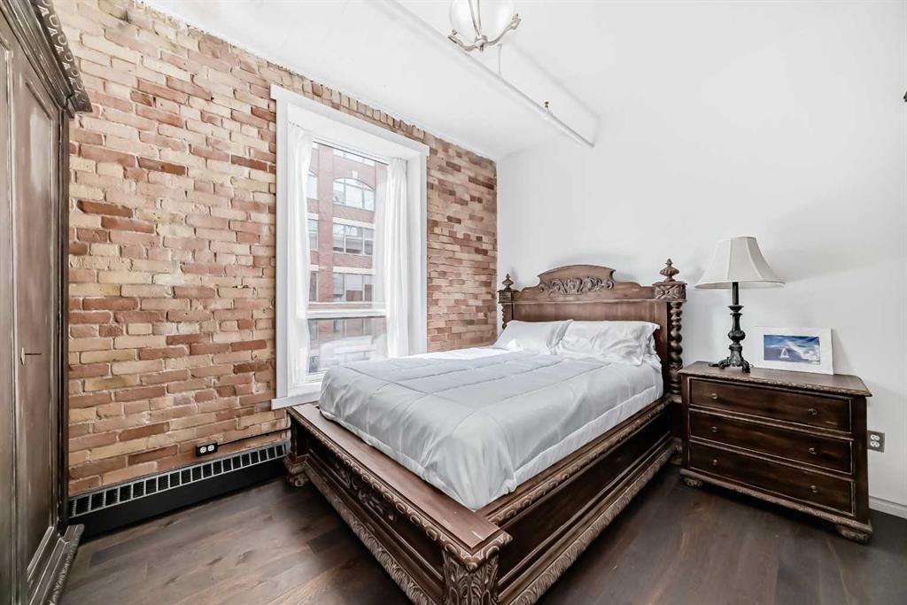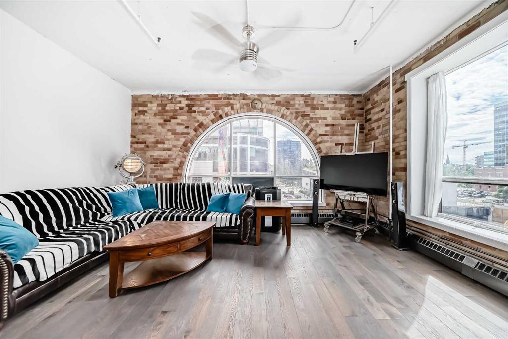 Own a piece of Calgary’s history in this stunning corner unit at Lewis Lofts. Perfectly positioned in the heart of the Beltline, this 4th-floor residence blends timeless architectural charm with modern comfort. High ceilings, exposed brick and concrete, a modern floor plan, and a signature arched window create a bright, open living space full of character. The thoughtfully updated kitchen features stone countertops, stainless steel appliances, and a gas range, flowing seamlessly into the living area complete with hardwood floors, a gas fireplace, and downtown views. Retreat to the private bedroom with a walk-in closet and ensuite. Enjoy your own balcony, plus access to a rooftop garden with gazebo and BBQ. Complete with underground parking, storage, and in-suite laundry, this pet-friendly, adult-only building places you steps from Calgary’s best restaurants, shops, transit, and entertainment.