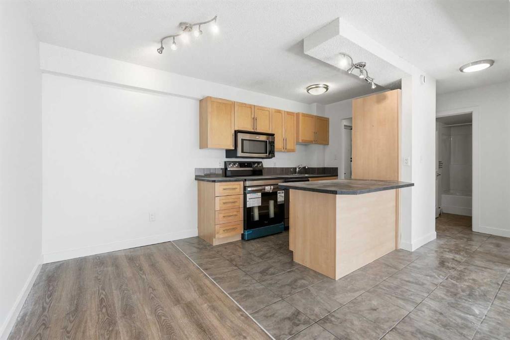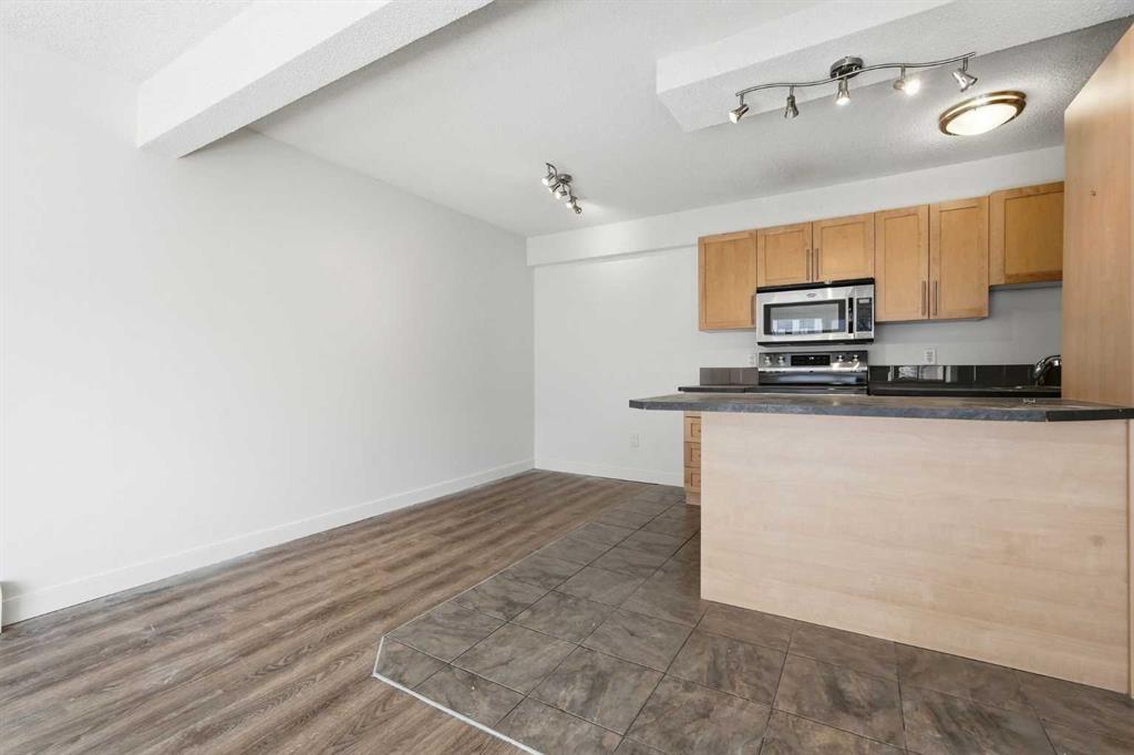 Welcome to this updated one-bedroom, one-bathroom condo, perfectly located for those who love vibrant city living. New vinyl plank flooring in the living room, dining room & bedroom offers a fresh modern feel with an open-concept layout that’s perfect for both relaxing and entertaining. Nestled on the 4th floor overlooking the south facing street you’ll enjoy peace and quiet along with fantastic natural light coming off your private balcony. The spacious living & dining areas seamlessly flow into the kitchen with peninsula & eating bar, plenty of storage space & stainless steel appliances (including a new stove), making the most of the space. Convenience is key with in-suite laundry & assigned parking, so you never have to worry about finding a spot. You’ll also love the short walk to trendy 17th Avenue, known for its eclectic shops, restaurants, and nightlife, as well as proximity to the Saddledome and Stampede Grounds; ideal for sports fans and concert-goers alike. Commuting is a breeze with a seven minute walk to the C-Train, providing quick and easy access to the rest of the city. This condo is perfect for anyone looking for a move-in ready home in one of Calgary’s most sought-after locations. Don’t miss your chance to own this gorgeous condo. Schedule a viewing today!