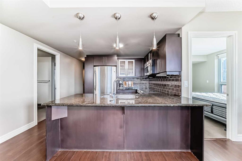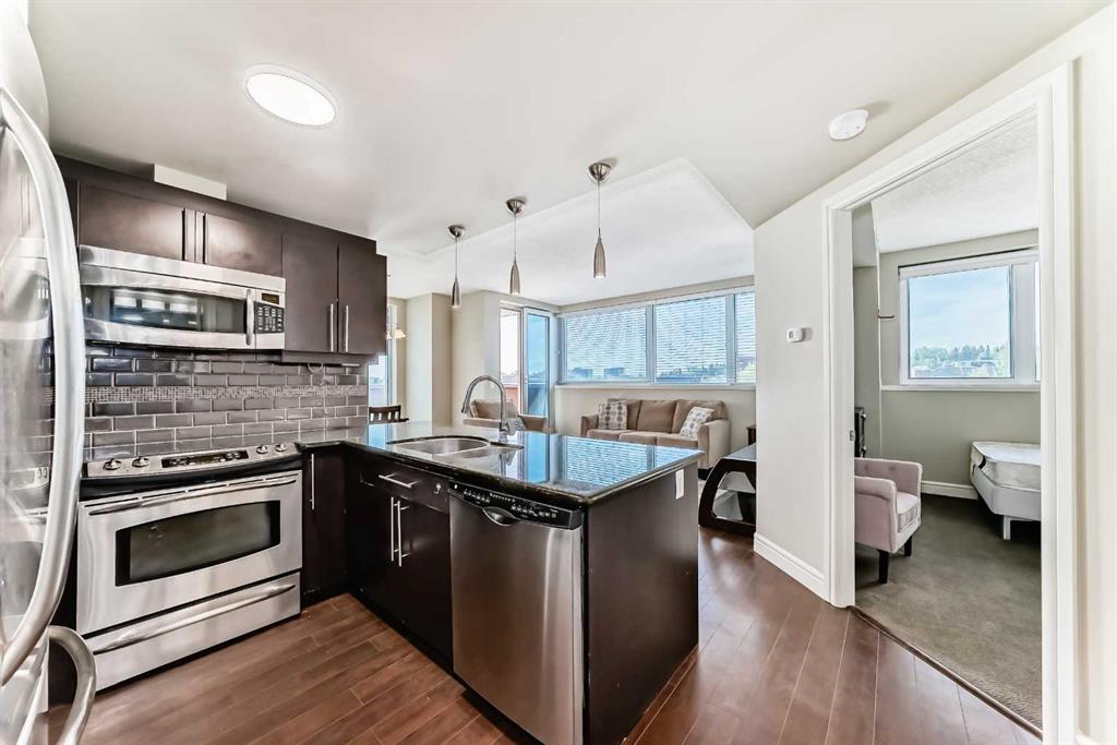 The MONTANA is a classical style building located in the heart of shopping and entertainment district, walking distance to 17th Ave. This is a 2 bed and 2 bath with bright and sunny SOUTH view of Calgary beautiful skyline. Entering into this unit you are welcomed by dark hardwood floors in hallway, kitchen, living room and dining area, 9′ ceilings, in-suite laundry, granite counters, two generous-sized bedroom with walk-in closet. Balcony with gas BBQ outlet. Central air condition keeps the home cool all summer long. One titled underground parking stall, and storage locker come with the unit. This building has 3 high-speed elevators, gym on the main floor totally renovated with new equipment, waste chute on every floor, professional and convenient concierge services available to all residents. MONTANA is the best location in Beltline, just around the corner from Uptown 17th Ave and Mount Royal Village, enjoy the fashionable Inner City lifestyle!