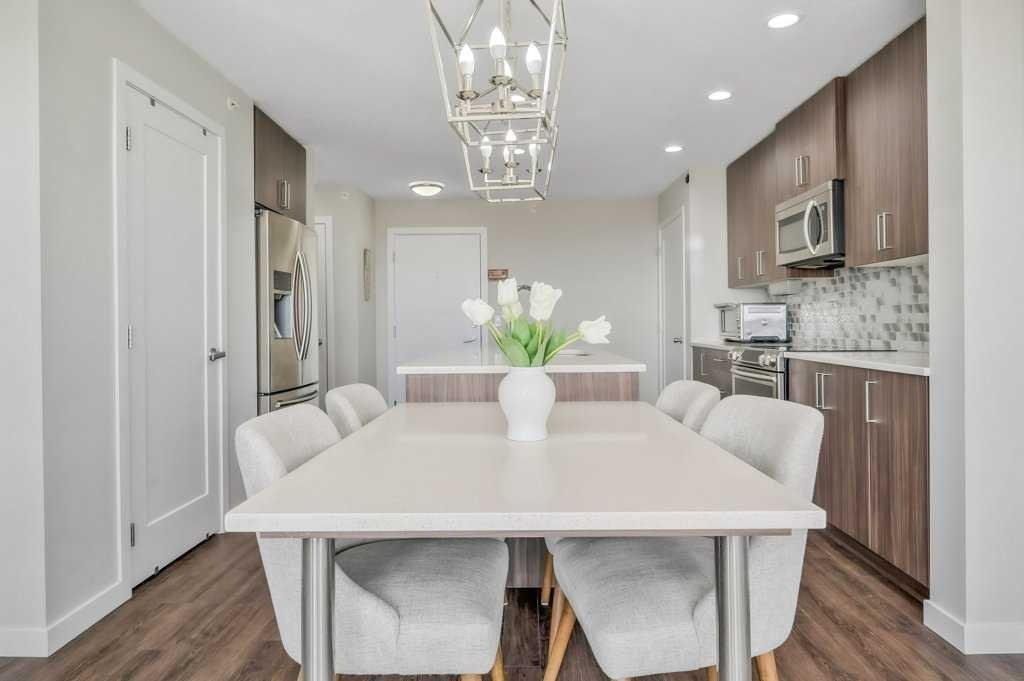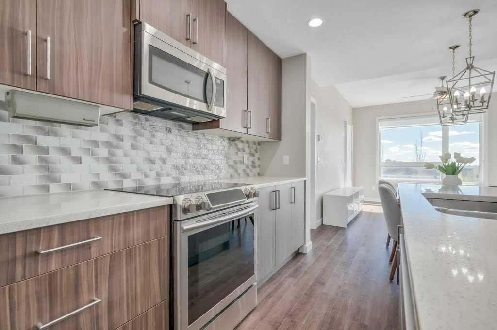 Step inside to discover an open floor plan accentuated by high-end laminate flooring that adds a touch of elegance to the living areas. The kitchen is a culinary dream featuring rich, dark cabinetry paired with light-coloured countertops and a sizable island that seamlessly incorporates a built-in quartz dining bar – perfect for serving up morning pancakes or evening cocktails.