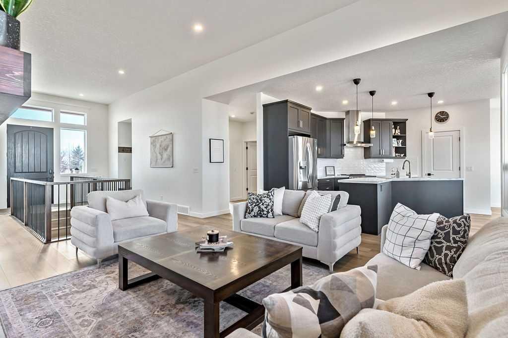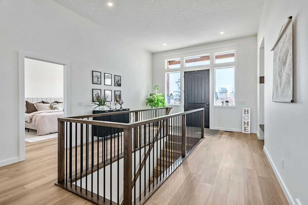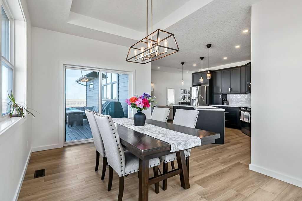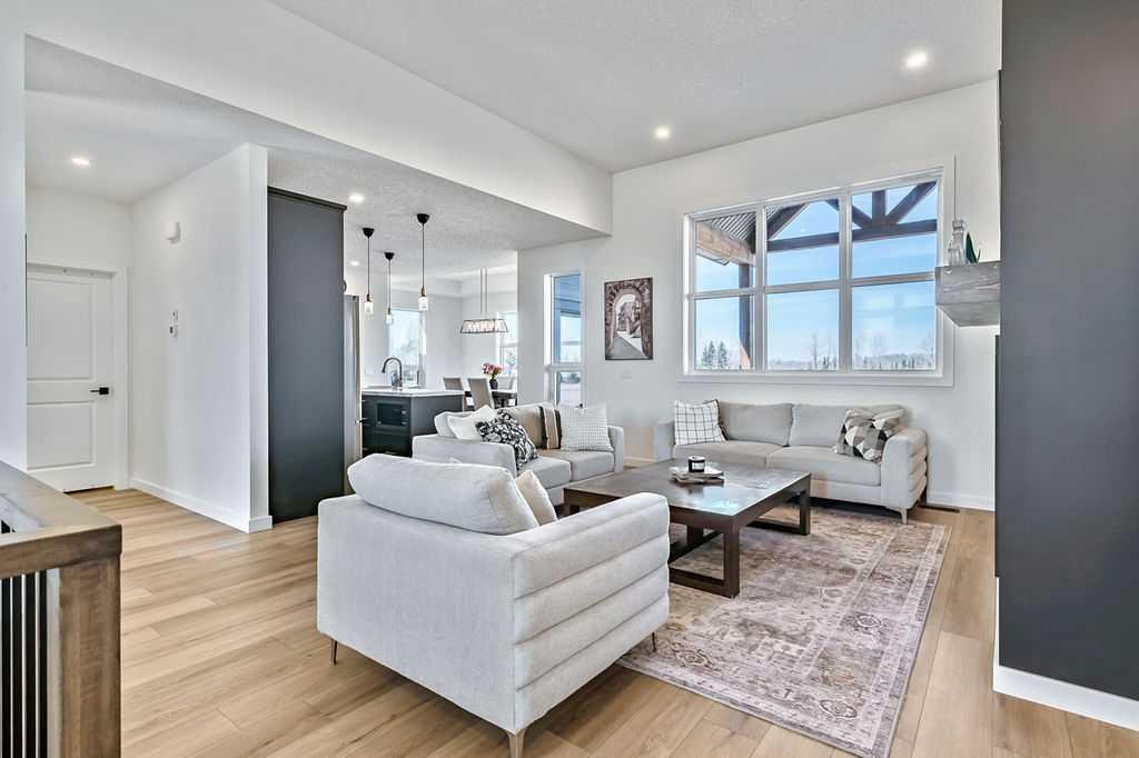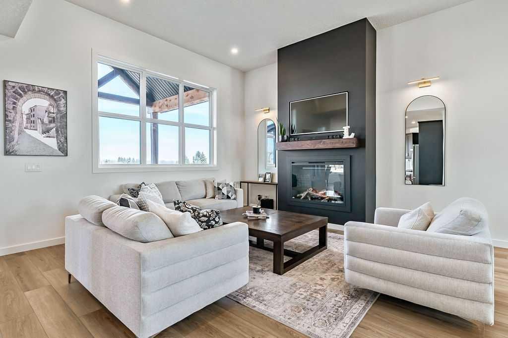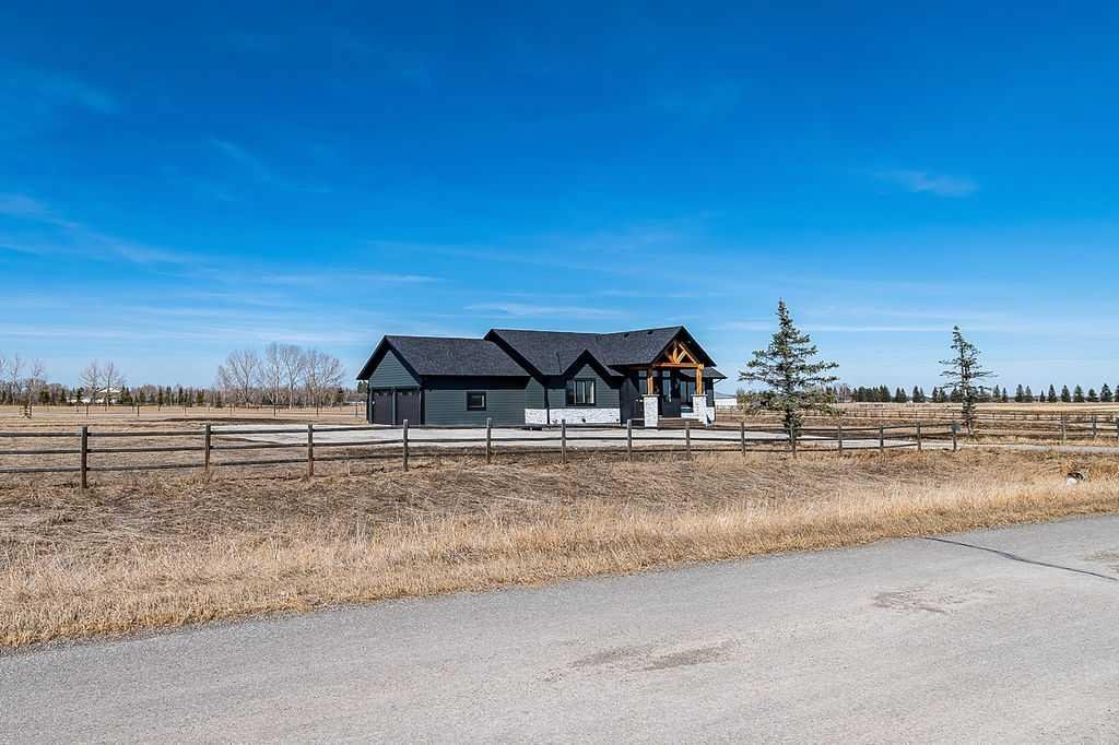Welcome to your dream acreage in sought-after Foothills County—just 5 minutes southwest of High River—where breathtaking mountain views meet the peace of country living with the convenience of town amenities nearby. Situated on 2.42 acres, this stunning custom-built (2025) bungalow offers over 5 bedrooms, 3 full bathrooms, and a beautifully designed, fully finished layout. From the moment you arrive, the striking Hardie board and stone exterior, large covered front porch, and clean contemporary lines set the tone. Step inside to a bright, welcoming foyer featuring a custom built-in bench and hooks—perfect for everyday functionality. The open-concept main floor showcases gorgeous vinyl plank flooring and a seamless flow between the living, kitchen, and dining spaces. The living room impresses with 11’ ceilings, expansive north-facing windows, and a modern gas fireplace—creating a warm yet sophisticated gathering space. The chef-inspired kitchen is a showstopper, featuring sleek black cabinetry, white countertops and backsplash, and elegant gold accents, along with a large island (with sink and microwave), premium appliances, and a spacious walk-in pantry. The dining area comfortably accommodates large gatherings and is surrounded by west- and north-facing windows, with direct access to the expansive covered deck—private, sheltered, and ideal for year-round enjoyment. The primary retreat offers a peaceful escape with bright east-facing windows, a luxurious ensuite with double vanity, soaker tub, oversized walk-in shower, and an expansive walk-in closet conveniently connected. Thoughtful finishes of tile, wood, and stone elevate the space. The main level also includes a second bedroom (perfect as a home office or den), a full 4-piece bathroom, and a well-designed mudroom and laundry area with direct access to the oversized double garage. The fully finished lower level features three additional spacious bedrooms, a 4-piece bathroom, large windows for abundant natural light, and a versatile layout ideal for a recreation room, gym, home business, or media space. Ample storage completes the lower level. Outside, the property is ready for your vision—offering endless potential for landscaping, outbuildings, and outdoor living. This home perfectly blends modern design, clean lines, and a neutral palette of white, black, wood, and natural textures, creating a space that feels both elevated and inviting. A rare opportunity to own a newly built home in an unbeatable location—space, style, and lifestyle all in one.