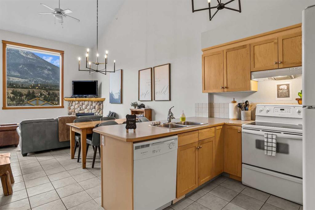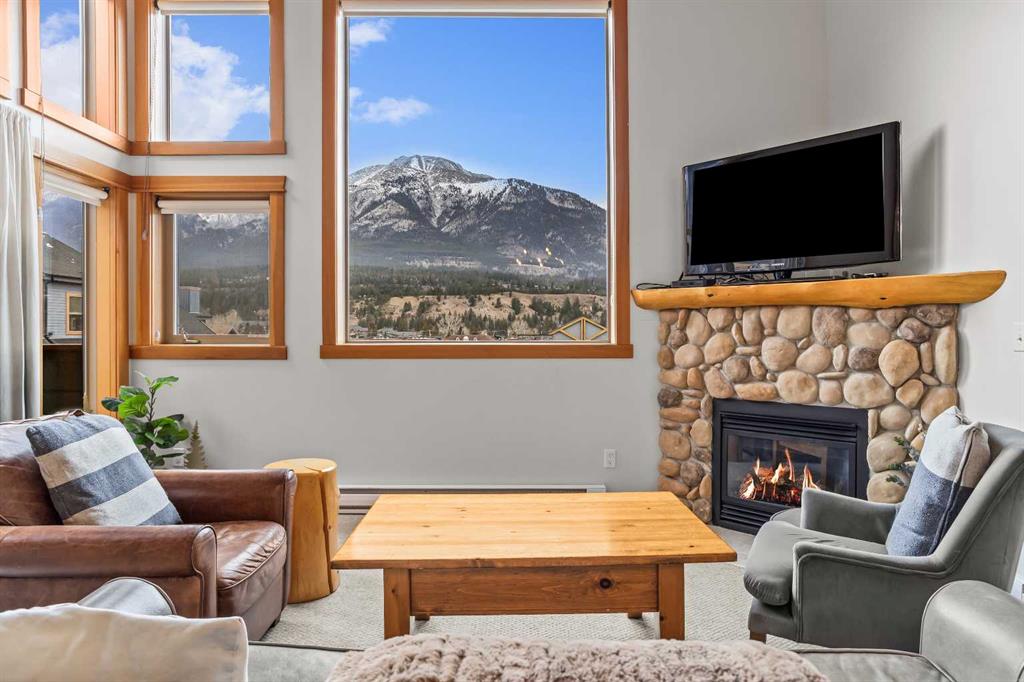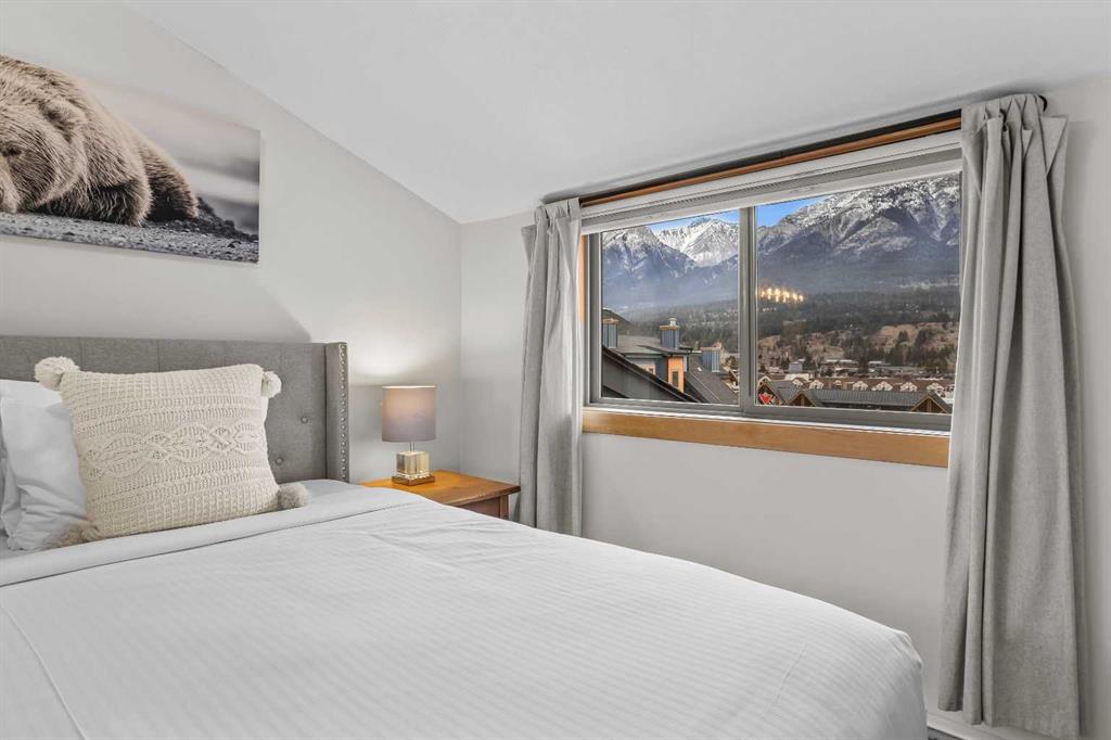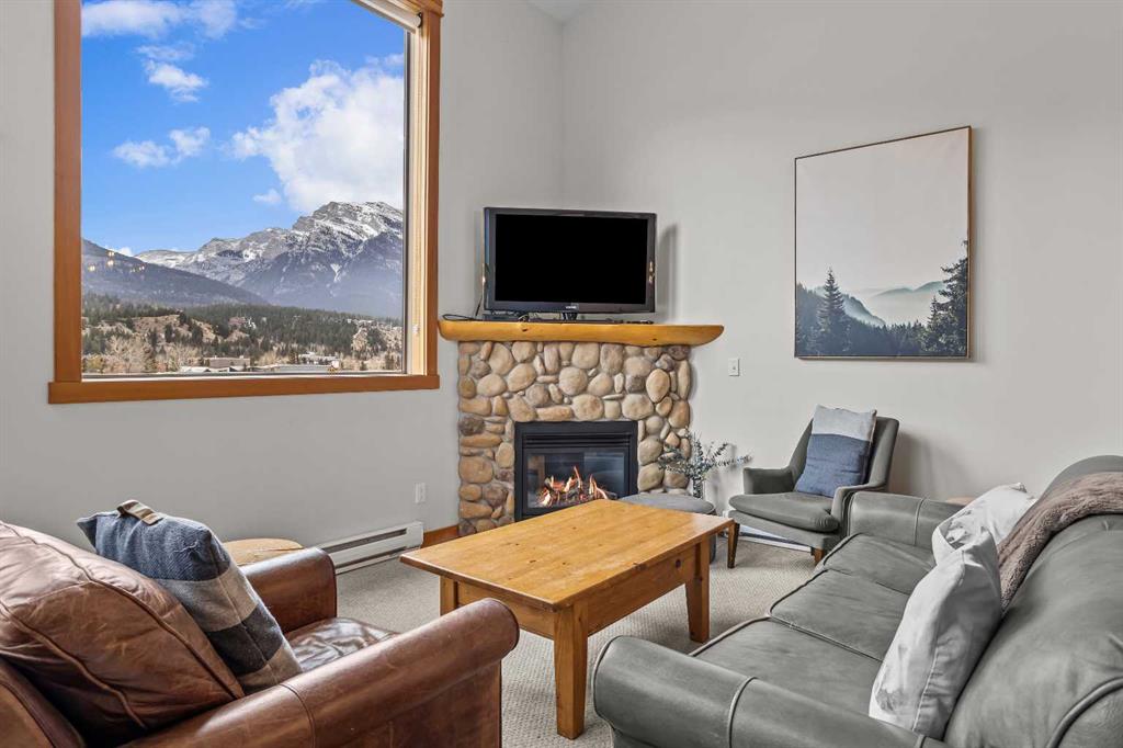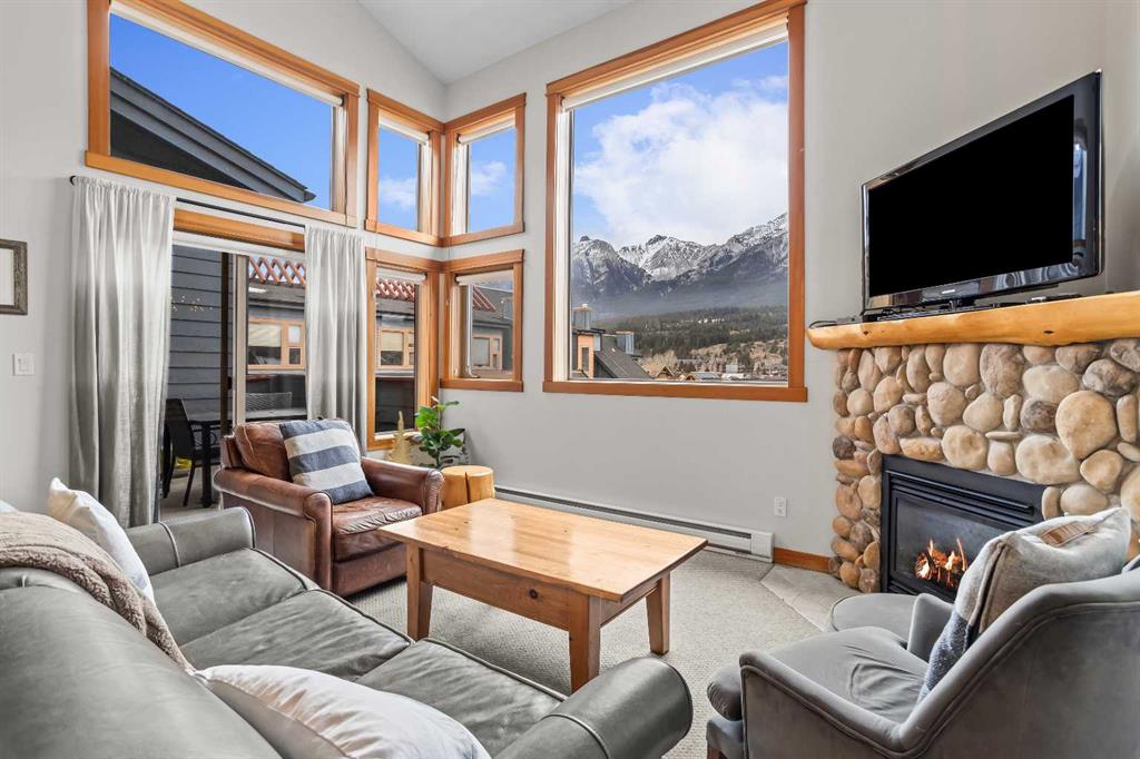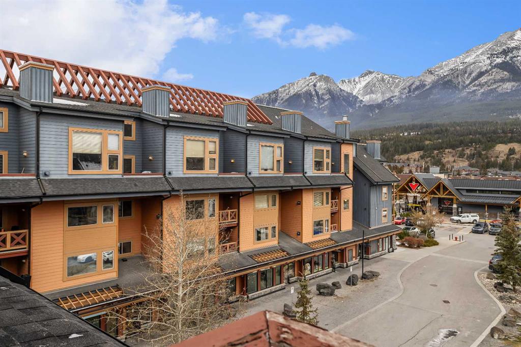 DOWNTOWN TOURIST HOME CONDO, HUGE VIEWS! Turn key opportunity with this beautiful 2 level, top floor condo zoned Tourist Home. You can choose to live there full time or to rent it nightly with fabulous returns. This condo is one of the top producing 2 bedroom rentals in the complex. 2 bedrooms, 2 baths, vaulted ceilings and gorgeous mountain views from every window. The kitchen comes complete with an eating bar and is open to the dining and living room areas. On the main floor you will also find a bedroom, 3 piece bath and laundry. The lofted master bedroom also has tremendous views and features a corner jetted tub. This complex boast 2 of the best hot tubs in town, located on the roof top. These shared amenity areas feature 360 panoramic breathtaking views. You’ll also find a full gym facility, tandem parking stall in underground secured parking plus storage. This condo is located in the center of Canmore, within walking access to all the amenities dining and shopping