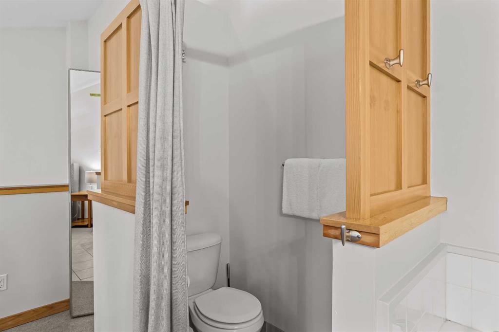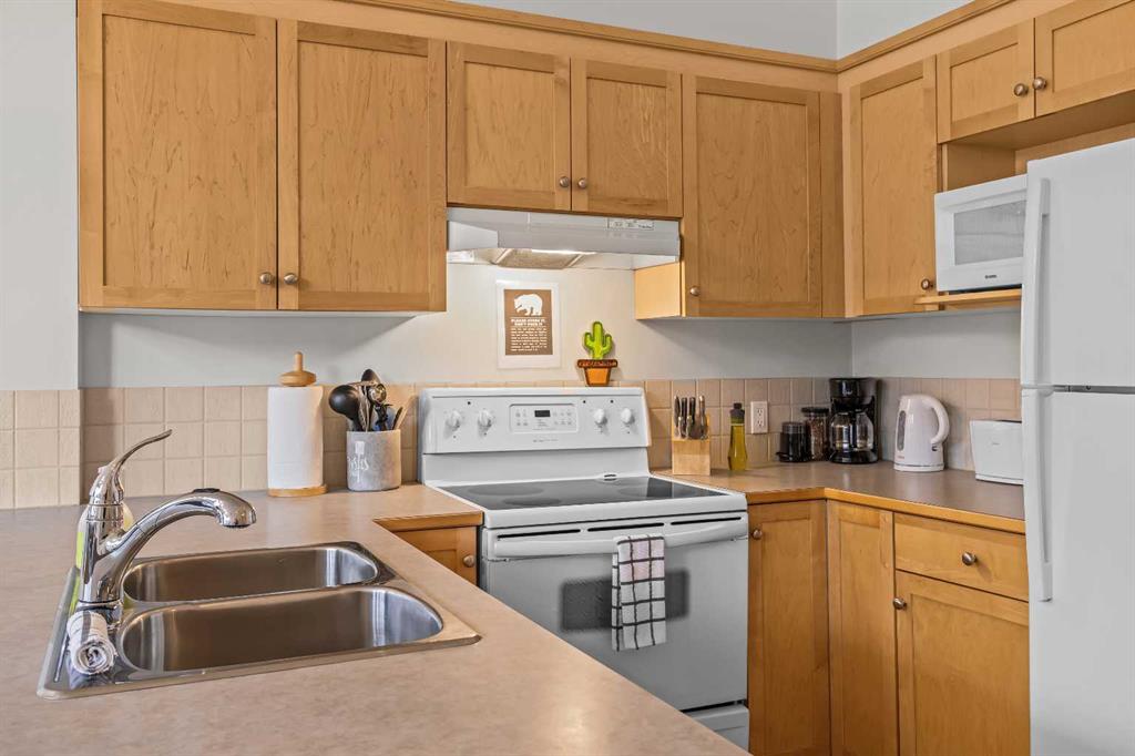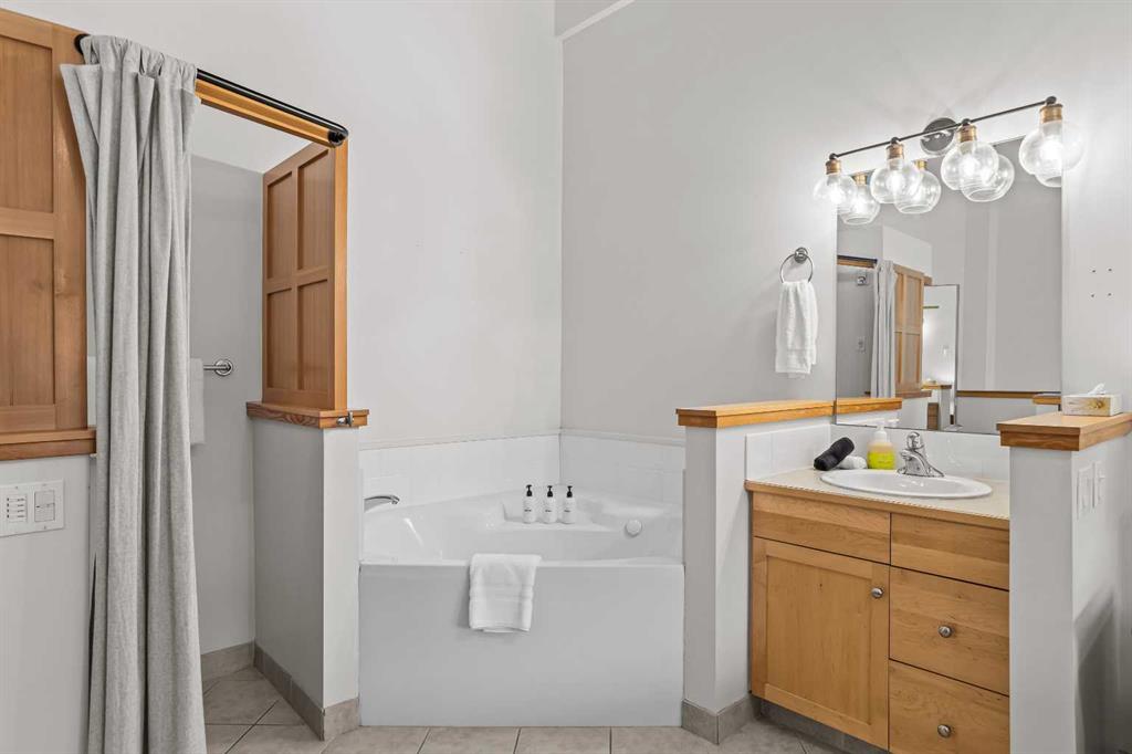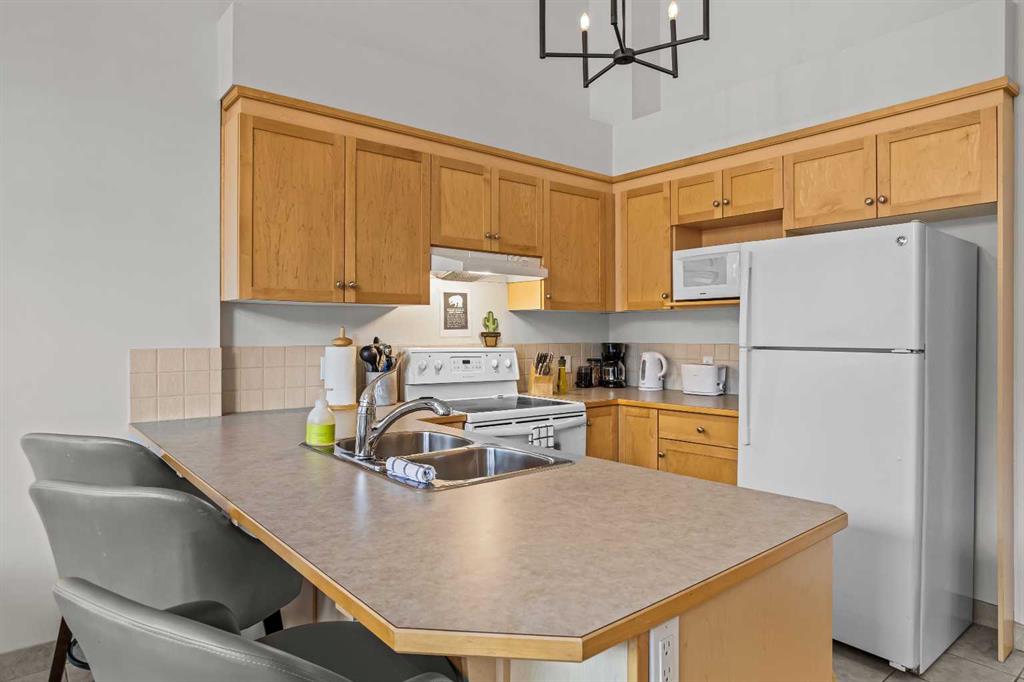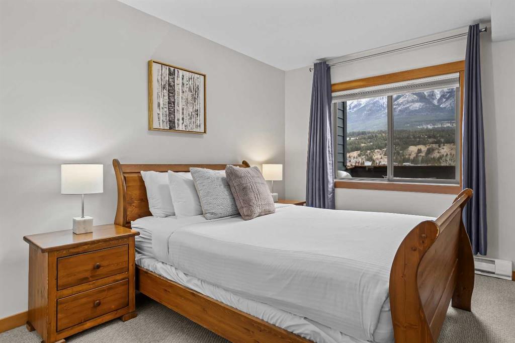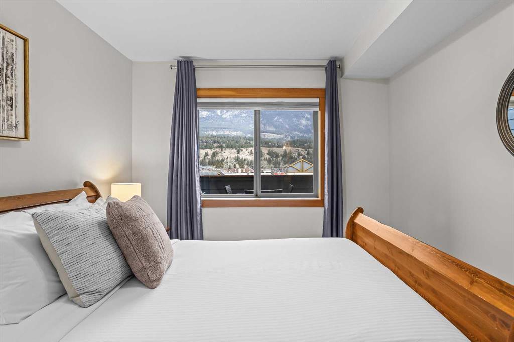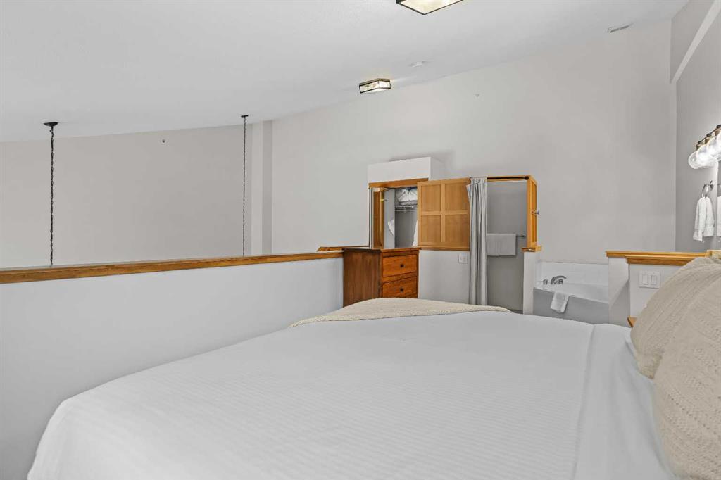 DOWNTOWN TOURIST HOME CONDO, HUGE VIEWS! Turn key opportunity with this beautiful 2 level, top floor condo zoned Tourist Home. You can choose to live there full time or to rent it nightly with fabulous returns. This condo is one of the top producing 2 bedroom rentals in the complex. 2 bedrooms, 2 baths, vaulted ceilings and gorgeous mountain views from every window. The kitchen comes complete with an eating bar and is open to the dining and living room areas. On the main floor you will also find a bedroom, 3 piece bath and laundry. The lofted master bedroom also has tremendous views and features a corner jetted tub. This complex boast 2 of the best hot tubs in town, located on the roof top. These shared amenity areas feature 360 panoramic breathtaking views. You’ll also find a full gym facility, tandem parking stall in underground secured parking plus storage. This condo is located in the center of Canmore, within walking access to all the amenities dining and shopping