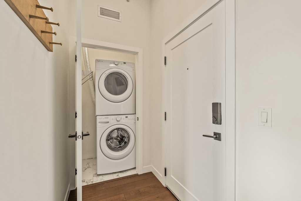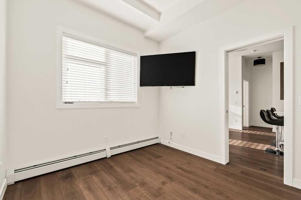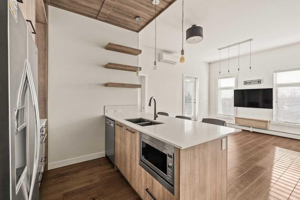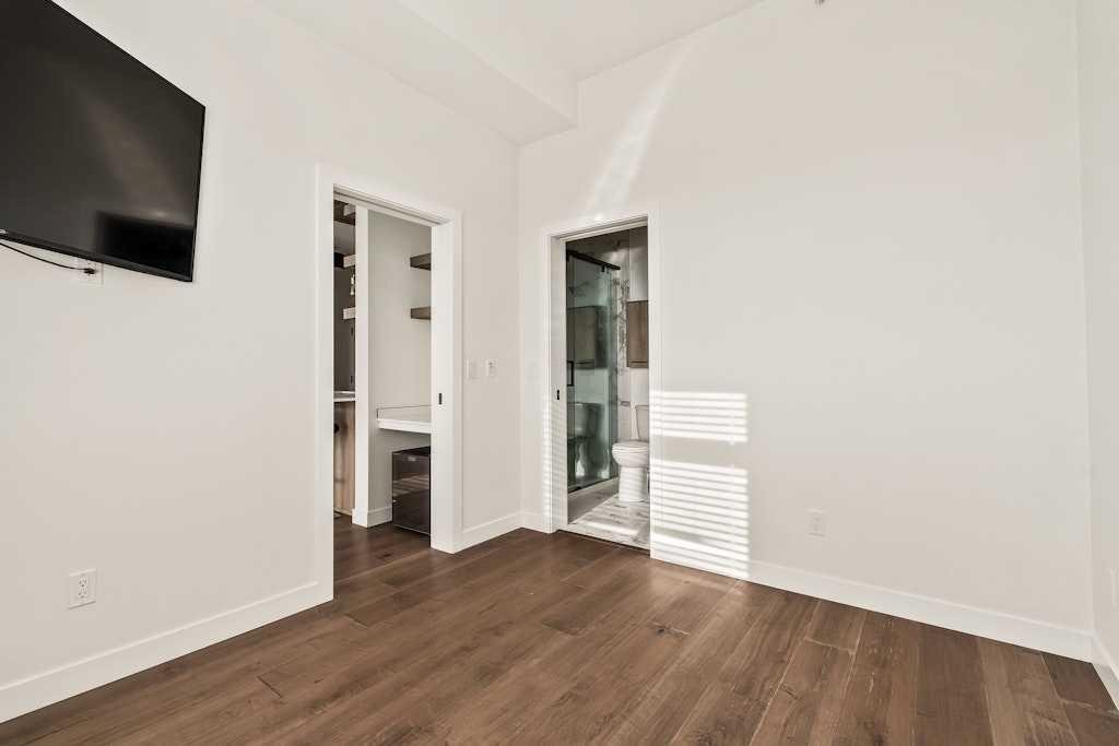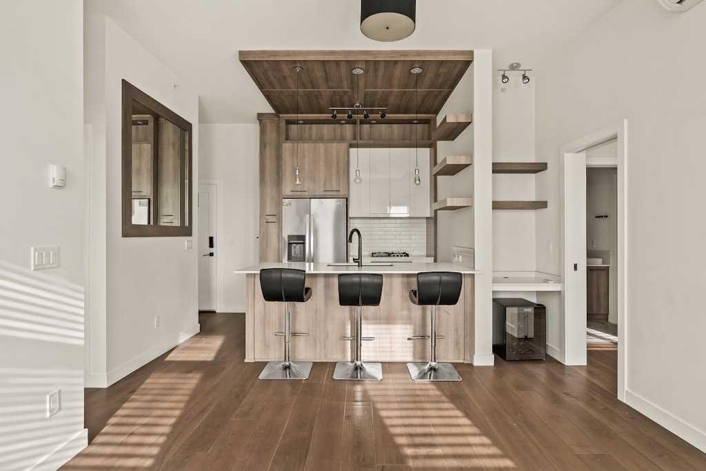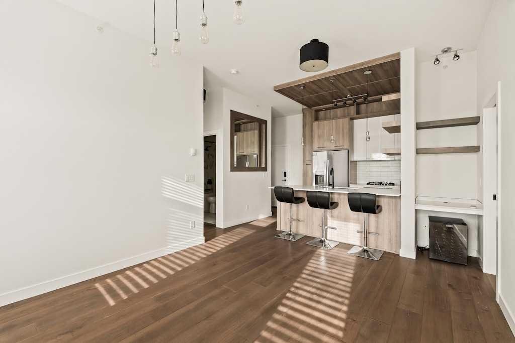 Perched on the top floor of 1741, this beautifully curated 2-bed, 2-bath residence blends contemporary sophistication with effortless urban living, offering a sunny south-facing balcony with a gas BBQ hook-up and a coveted position steps from Calgary’s favourite restaurants, boutique shopping, the LRT, Killarney Pool, Shaganappi Golf Course, local parks, and the library. Inside, illuminated in natural light and boasting all fresh paint, discover hand-scraped engineered hardwood floors that sets a warm, textural foundation for the opulent picture-frame kitchen-finished with high-gloss soft-close cabinetry, white subway tile backsplash stainless steel appliances including a gas cooktop and french-door fridge with filtered water/ice, Caesarstone counters, an under mount sink, under-cabinet LED lighting, and modern industrial-inspired fixtures glowing with vintage Edison bulbs. Thoughtful finishes elevate the everyday: A/C, a custom pantry, added shelving over the built-in desk nook, a newer dishwasher (1.5 years), garburator, matte-black hardware throughout, and seamless in-suite laundry. The spacious layout offers plenty of space to entertain, and offers excellent separation between the bedrooms, making it ideal for couples, professionals, or shared living, while underground titled parking and an assigned storage unit provide year-round convenience. Perfectly balancing high design and high function, you’ll find every element of refined inner-city living in one exceptional property. **OPEN HOUSE: Saturday, November 15th from 1:00 – 3:00pm**