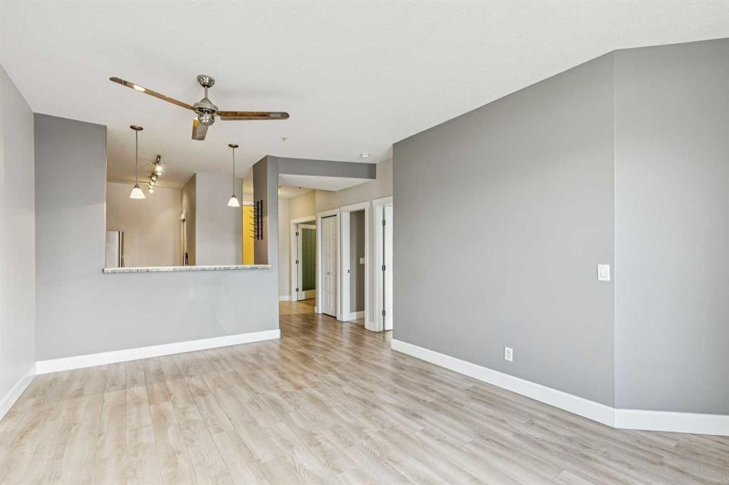 Welcome to Bella Citta! This top floor unit with unobstructed downtown views is located in an impeccably maintained building in the heart of Bridgeland. Enjoy granite tile counters, stainless steel appliances, full size pantry, with a separate dining area and spacious living room featuring upgraded flooring, gas fireplace and in suite laundry. Large master with walk-through ensuite which features an over-sized soaker tub, upgraded shower and sink faucets. Need more space? Use the den as an office, guest bedroom, or extra storage for your bike or workout equipment. Professionally completed upgrades include: high-profile baseboards, top of the line laminate (with board approved underlay), wardrobe in den and built-in closet organizers. Located within walking distance to shops, services and trendy restaurants. LRT is close and convenient. This is the best unit in the complex! Complete with underground parking and a storage unit. Clean and well maintained. One of a kind! You will take pride in calling this place home.