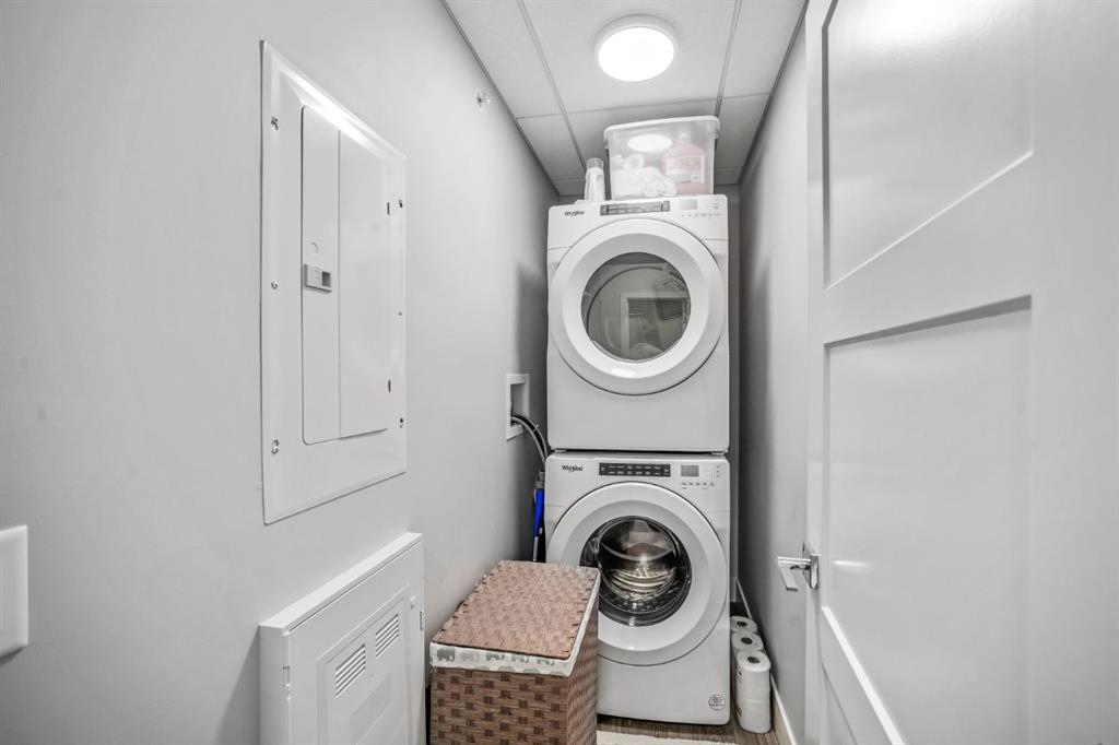 Additional highlights include air conditioning, a large in suite laundry/storage room, luxury vinyl plank flooring, and a spacious balcony. The unit is exceptionally quiet within the building. The titled underground parking stall includes a dedicated storage area directly in front of the stall, plus a second, larger storage locker in the storage room. The building also offers a separate bike storage room. Condo fees are a very reasonable $305 dollars per month, offering strong value for this location and building quality. A great opportunity to own in a well built development in one of Calgary’s most desirable west side communities.