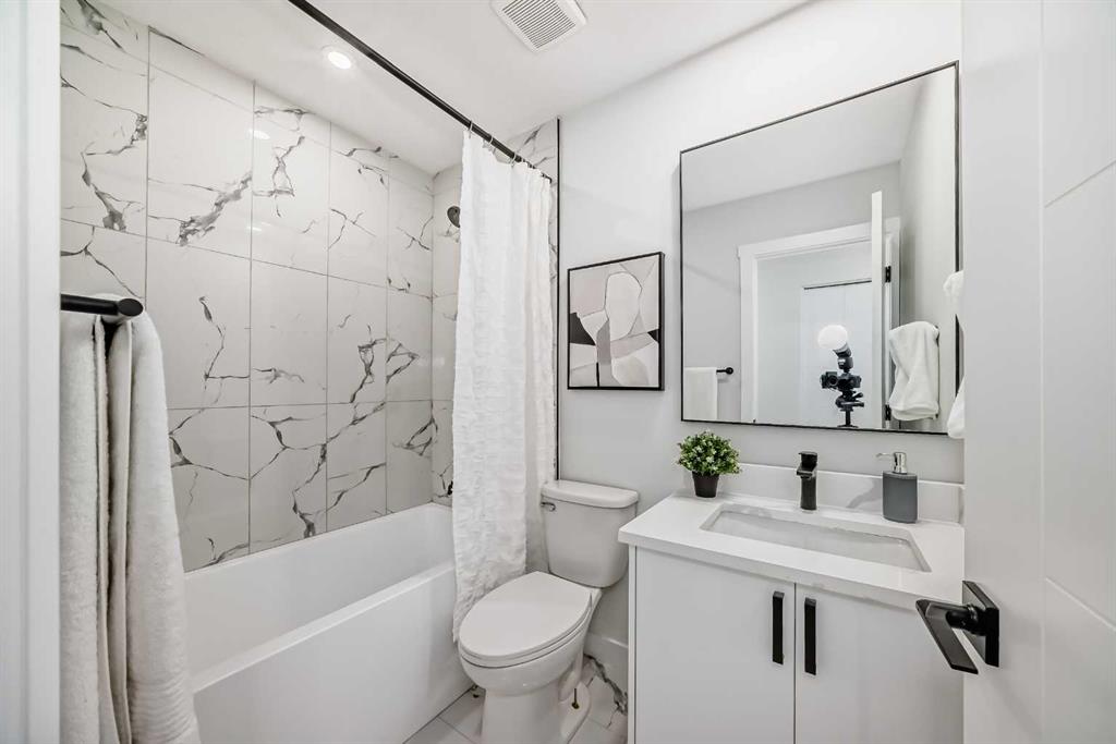 Are you looking for the perfect starter home or investment property? This is it! Seriously! Come and be amazed at this just renovated 4 bedroom and 2 full bathroom town house with almost1,500.sqft of developed space in the very desirable and central community of Thorncliffe. This townhouse is located in a very well managed complex. With very quick access to Deerfoot and hence everywhere in the city, there no better location. Super close to shopping, Thorncliffe community YMCA where you find swimming, fitness center, lawn tennis, library, also walking distance to all levels of schools (elementary to high school). Get captivated by the spacious and open floor plan, brimming with abundant natural light that pours in from the very big windows, perfect for entertaining and family life. Picture yourself entertaining guests or indulging in family time in this spacious and bright living room perfected with the fireplace providing a cozy atmosphere. To the right is the kitchen complete with brand new stainless-steel appliances and quartz counter tops with a dining area. Upstairs you have a spacious primary bedroom, 2 other good-sized bedrooms and a 4 piece bathroom. Downstairs in the basement is the fully developed space that provides you with a family room for family game or movie nights or a play area for the little ones, a separate study/office space, an additional bedroom and a full 3-piece bathroom. Priced to sell. This will Not last. Call your favorite Realtor today.