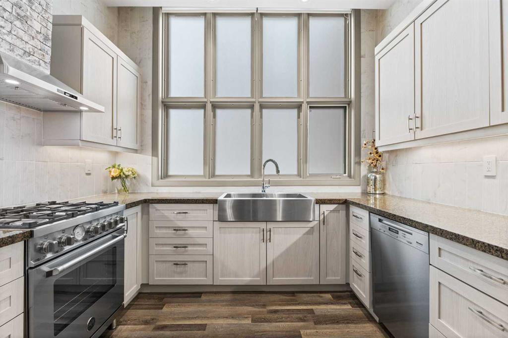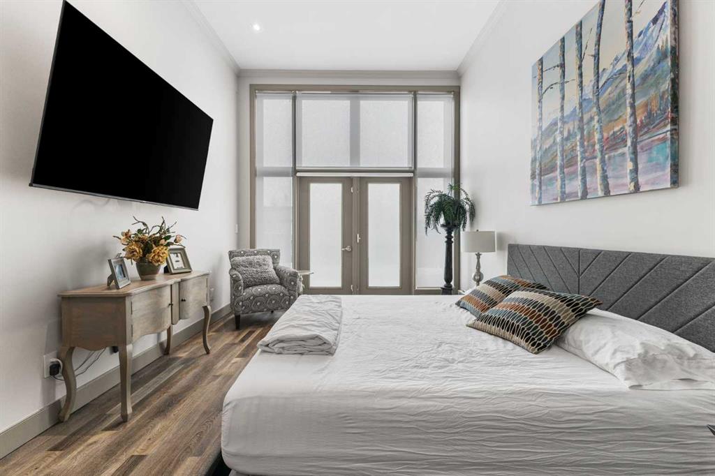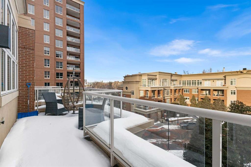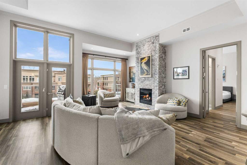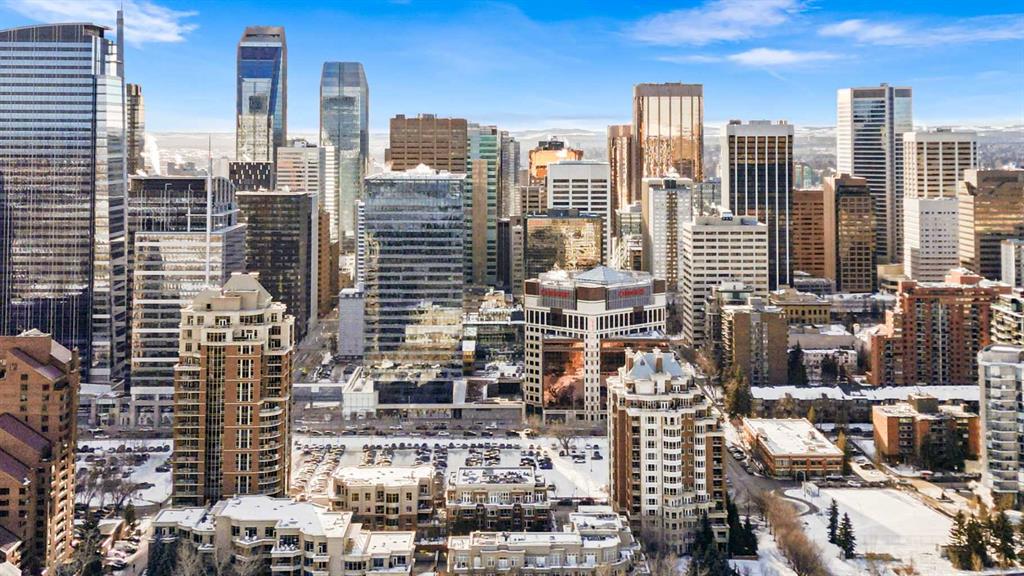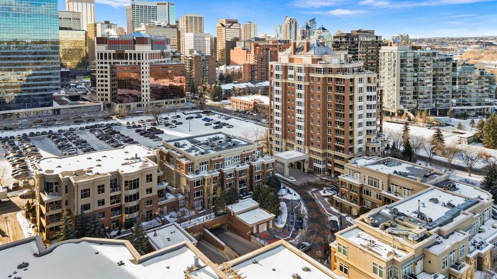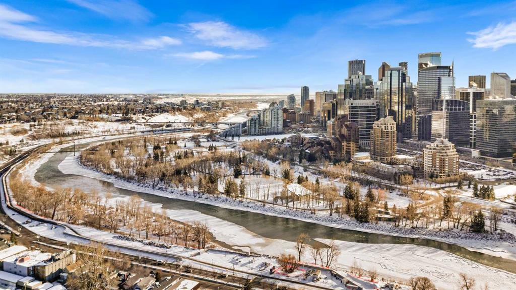 Exceptional completely renovated 2 bedroom, 2 bath penthouse residence offering over 1500 sq ft of luxurious living space in coveted Eau Claire, just steps to picturesque Prince’s Island Park & scenic Bow River pathways. This well-appointed condo presents hardwood floors, soaring ceilings & is drenched in natural light, showcasing a spacious living room with terrace access & anchored by a stunning floor to ceiling fireplace. A formal dining room adorned with an elegant chandelier affords ample space to entertain family & friends. The kitchen is beautifully finished with granite counter tops, eating bar, plenty of storage space & all new high-end stainless steel appliances. Just off the living room, the primary bedroom with balcony access features abundant closet space & private 5 piece ensuite with dual sinks, relaxing freestanding soaker tub & separate shower. The second bedroom & 3 piece bath are ideal for guests. Other notable features include in-suite laundry, 3 large terraces with north & west views, halogen recessed lighting, in-floor heat, central air conditioning, humidification through forced air & power blinds on high windows. Also enjoy the convenience of 2 titled underground parking stalls near the elevator, one titled storage space & recently renovated common areas. The central location can’t be beat – Bow River pathways & Prince’s Island Park & the Peace Bridge are just steps away plus downtown restaurants & amenities are close by. This elegant residence offers the ultimate in exclusivity & privacy with only 4 units on the floor & no noise from above.
