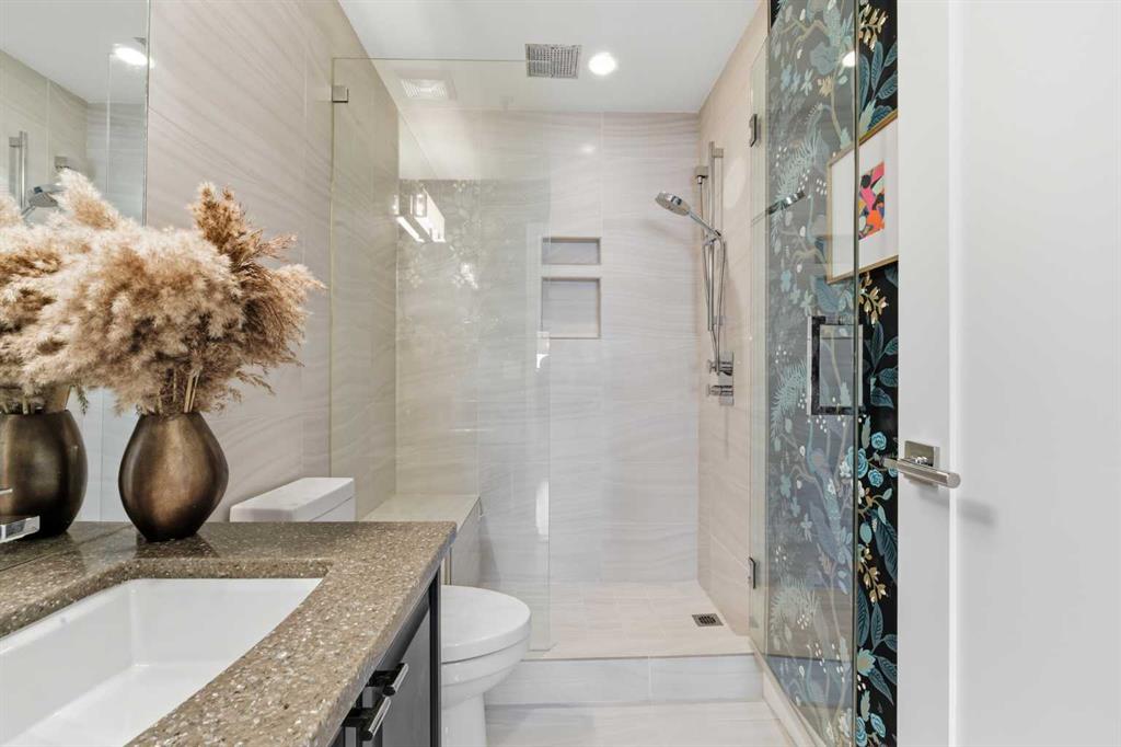 Experience sophisticated urban living in this beautifully upgraded 2-bedroom, 2-bathroom executive condo, ideally located with direct +15 access to GoodLife Fitness, London Drugs, top restaurants, and just steps from the boutiques and nightlife of 17th Avenue. Enjoy a highly walkable lifestyle with easy access to downtown and the Bow River Pathway system. This light-filled, modern residence features designer lighting, expansive windows, and an open-concept layout. The chef-inspired kitchen boasts a sleek peninsula island with eating bar, premium stainless steel appliances, classic subway tile backsplash, and timeless white cabinetry. An elegant dining area flows into the spacious living room, complete with a stylish fireplace and breathtaking panoramic city views. Step onto the covered balcony to enjoy morning coffee or evening sunsets year-round. The primary suite offers a luxurious retreat with a full private ensuite, while the second bedroom and full guest bath provide comfort and flexibility. Additional features include in-suite laundry, secure underground parking, and ample storage.Perfect for professionals or those seeking an upscale urban sanctuary—this home offers the ultimate in downtown luxury living.