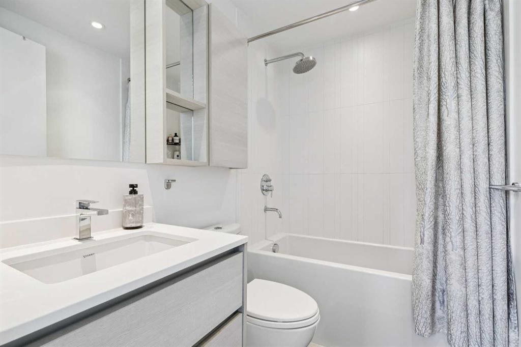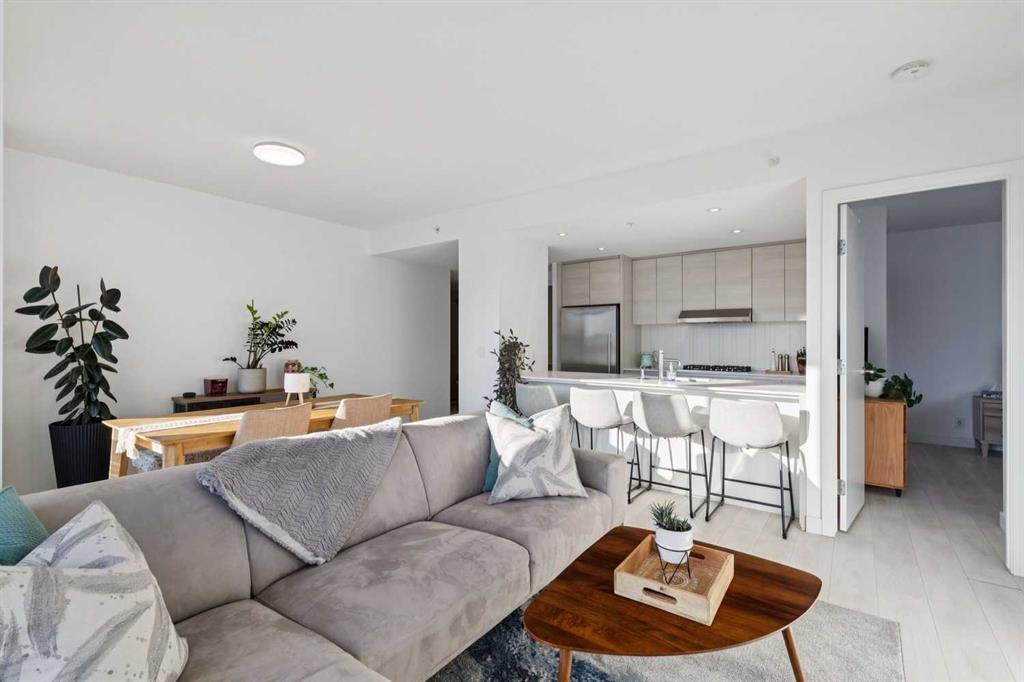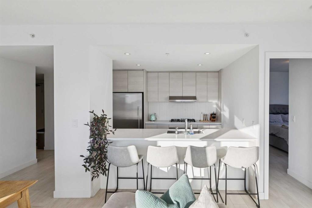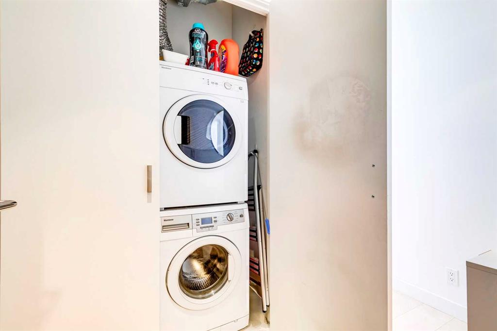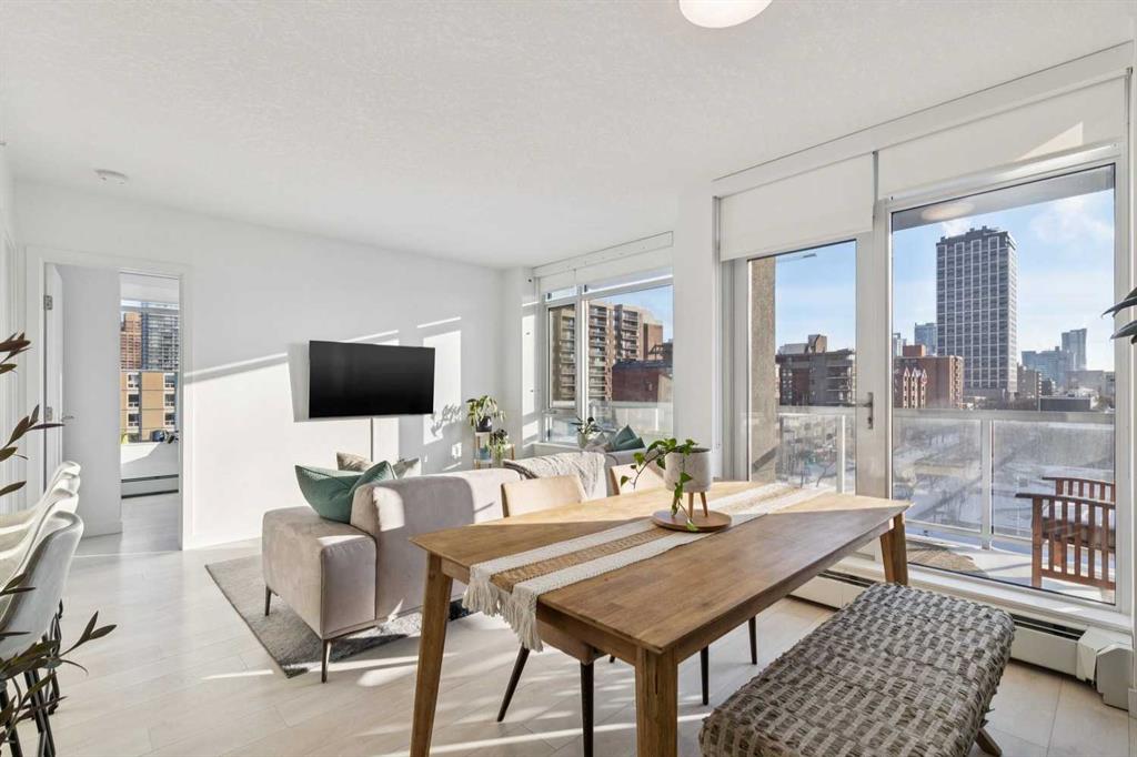 The Smith building is in THE BEST Beltline location. Unit 405 is a large 2 bed + 2 full bath CORNER UNIT at the front of the building, with titled parking and a rare/amazing titled storage locker. Designed for entertaining + comfortable living, the floor plan is anchored by a galley kitchen with custom cabinetry, quartz counters, gas cook-top + wall oven, microwave, plenty of storage, and breakfast bar. This over looks formal living/dining spaces which are flooded by natural light and enjoy access to the fabulous patio with park + downtown views + an inner city vibe. The primary bedroom has plenty of closet space w/ organizers, and an ensuite bath w/ HEATED FLOORS, soaker tub, rain head shower fixture, and high end plumbing. The second good sized bedroom has incredible views, a big closet, and direct access to a modern 3-piece bath. Don’t miss the CONCIERGE, IN-SUITE LAUNDRY, bike storage, and easy walkability to restaurants, groceries, parks + downtown.