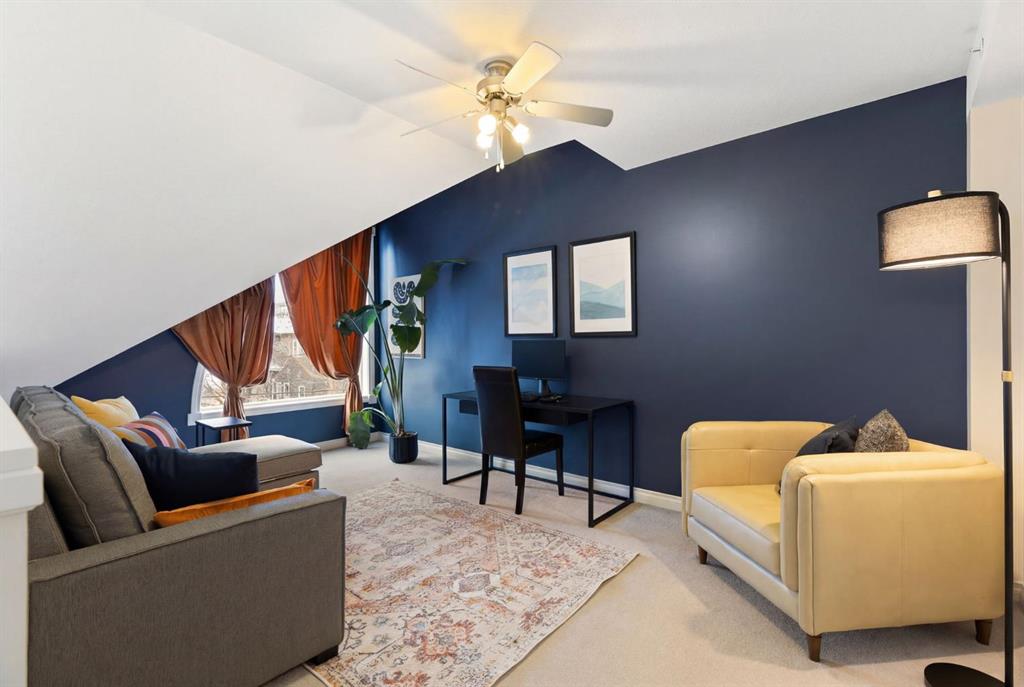 You will find exceptional value in this extensively renovated, 1 bedroom + loft, 2 bathroom condo in South Calgary! Featuring 1,214 sqft of space, this spacious top floor condo is full of high quality renovations and upgrades. As soon as you enter the front door, you will immediately notice the 17-foot ceilings, big windows offering plenty of natural sunlight, and vinyl plank flooring throughout the entire main floor. Next, you will find a beautifully renovated kitchen featuring new cabinets, quartz countertops, large pantry, upgraded stainless steel appliances, and a peninsula island. With a dining room and living room adjacent to the kitchen, this functional, open concept floor plan makes it easy to entertain family and friends! The living room also features a gas fireplace. The large primary bedroom has plenty of natural light with a sliding door leading to your balcony, a walk through closet, and a 4-piece ensuite with soaker tub and shower. Finishing off the main level is an additional 4-piece bathroom, in-suite laundry with new washer & dryer (Dec 2025), and a storage room under the stairs – an extra feature that most units in this complex do not have! Heading up the stairs, you will find a generous sized loft that is perfect for an additional sleeping area, office, or entertainment room. Lastly, this unit features a 20-foot balcony with south exposure, perfect for enjoying many nice summer evenings or relaxing after work. This unit also comes with an underground, titled parking stall and an assigned storage locker. Finally enjoy everything that South Calgary and vibrant Marda Loop has to offer, the perfect blend of urban energy and neighbourhood charm, with trendy cafĂ©s, boutique shopping, and top-rated restaurants just steps from your door. Enjoy a walkable lifestyle surrounded by parks, excellent schools, and quick access to downtown, in one of Calgary’s most desirable places to call home. Do not miss out on this opportunity!