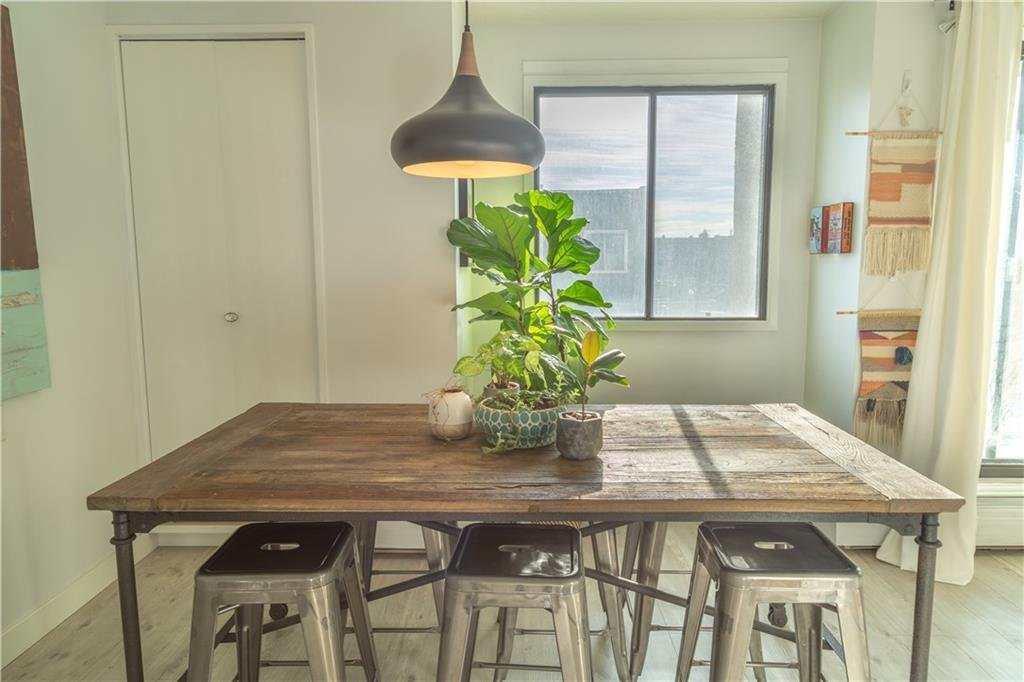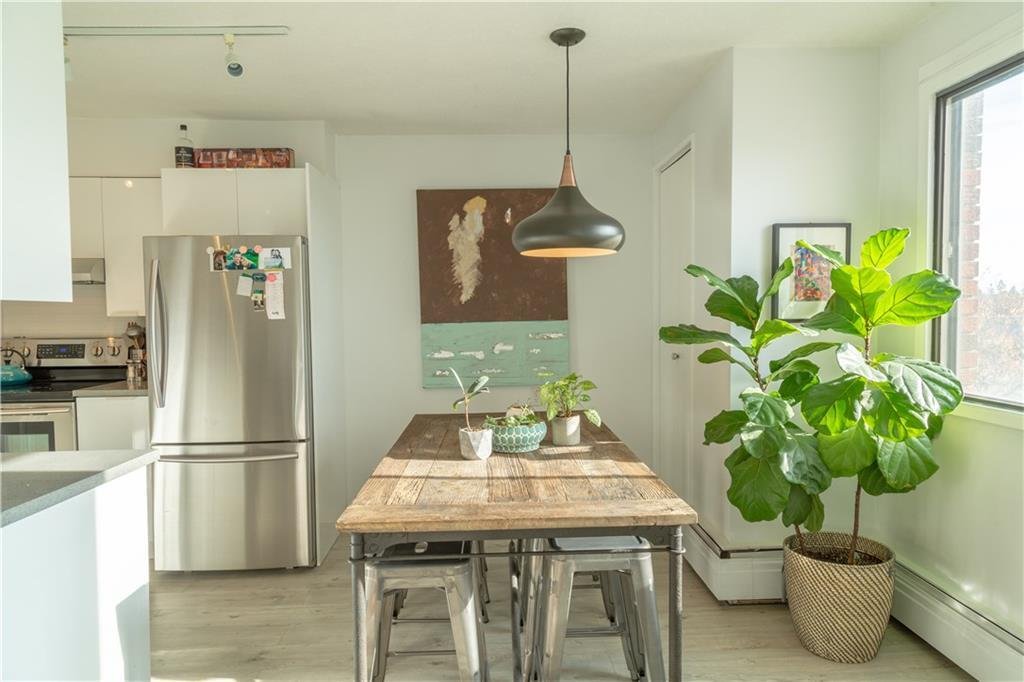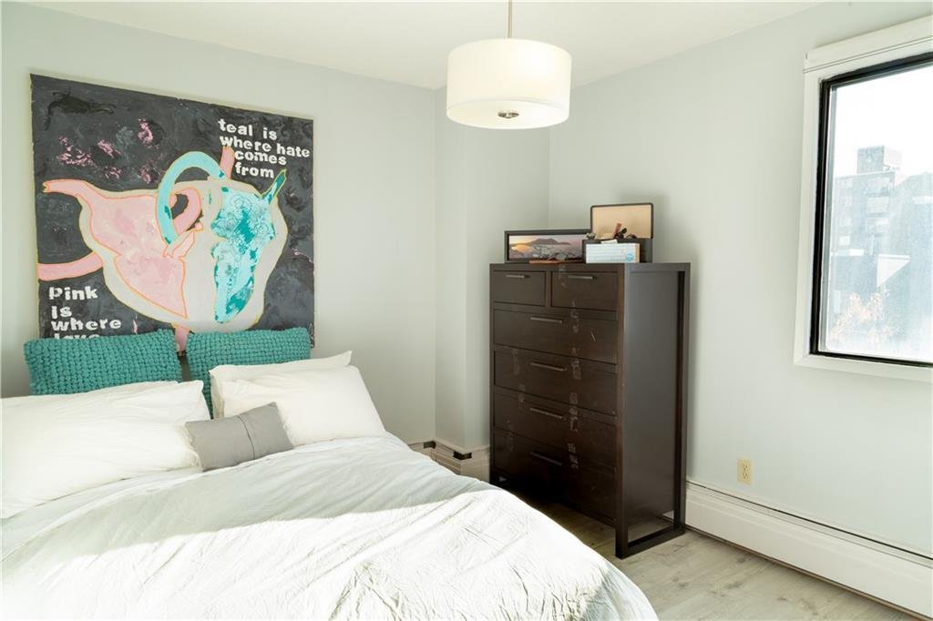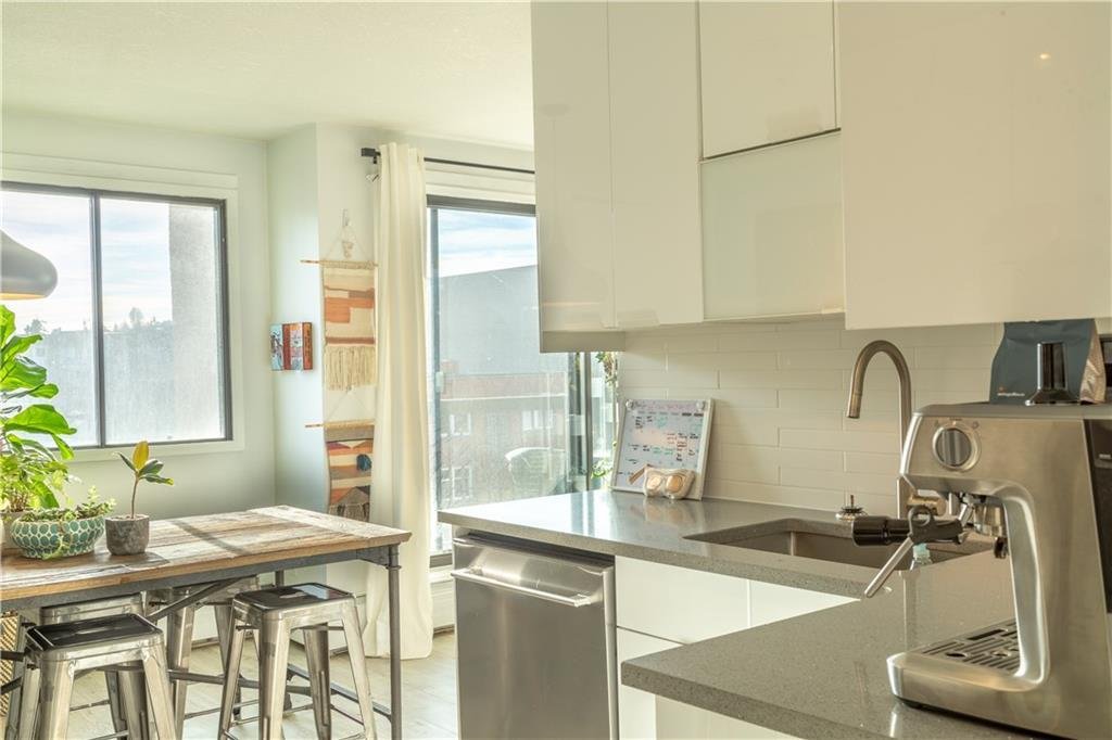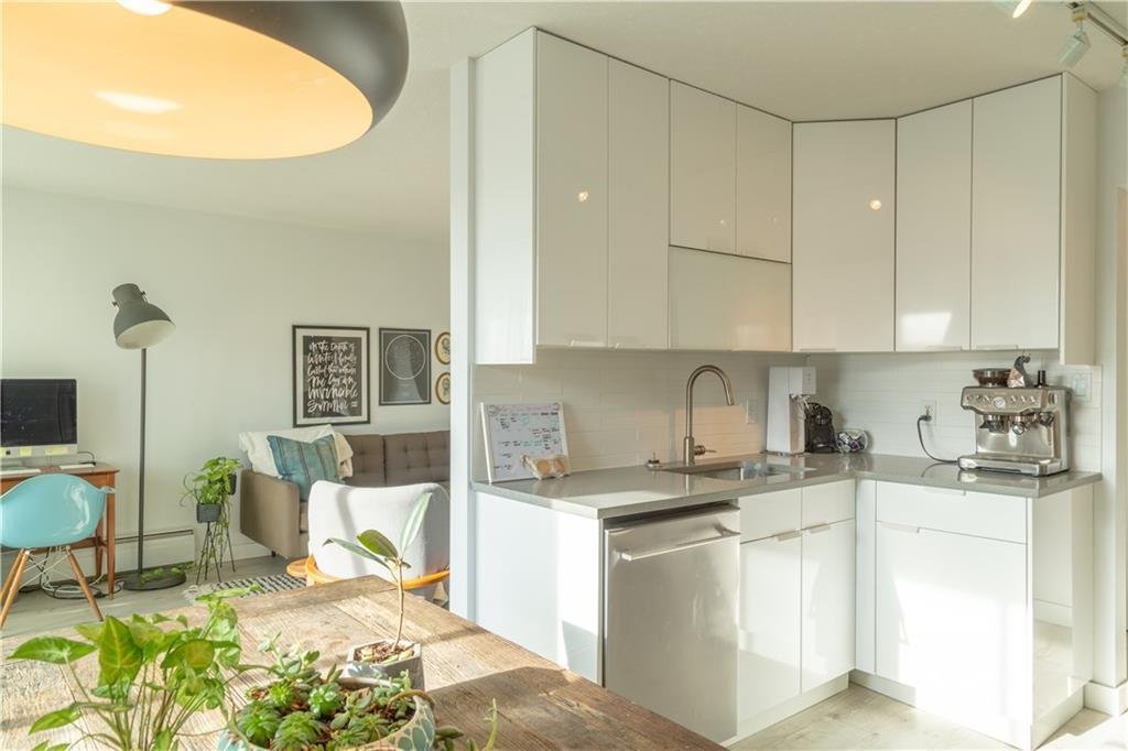 Wake up to sun-filled south-facing sunshine and soak in the natural light that fills this beautifully updated condo. With a stylish mid century modern vibe, this move in ready unit offers the perfect blend of character and comfort right in the heart of the city. Step inside to an inviting main living space that feels both open and welcoming, the ideal spot to unwind or entertain. The kitchen is thoughtfully designed and highly functional, seamlessly overlooking a generous dining area that is perfect for hosting or everyday living. Down the hallway, you will find a rare and practical bonus, a large in-suite storage room, along with convenient in-suite laundry featuring a European washer dryer combo. The bright, refreshed bathroom is centrally located, just steps from two spacious bedrooms, each offering plenty of room to relax and recharge. Step outside to your private south facing balcony, where you can enjoy peaceful moments basking in the sun. Located in a solid concrete building, this home also includes secure, gated covered parking and an additional storage unit, adding everyday convenience to an already exceptional package. All of this in an unbeatable location, just steps to shopping, coffee shops, restaurants, pubs and fitness studios, everything you love about downtown living right at your doorstep. Come experience the view for yourself, this is one you do not want to miss.