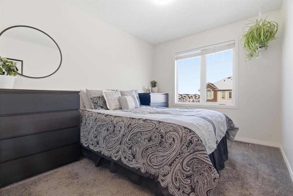 The entry level welcomes you with a spacious foyer and convenient laundry room, along with access to the single attached garage, which is notably large and deep — offering excellent storage or workspace potential in addition to parking. Upstairs on the main level, you’ll find a bright open-concept floor plan designed for comfortable everyday living and entertaining. The kitchen is surprisingly spacious, featuring quartz countertops, stainless steel appliances, and an abundance of counter space, making it the perfect hub for cooking and gathering. The kitchen flows seamlessly into the dining area and living room, creating a warm and inviting space filled with natural light from large windows. A convenient 2-piece bathroom completes this level. Step outside onto the front balcony, a great spot to enjoy your morning coffee or unwind at the end of the day. The upper level features two nicely proportioned bedrooms, including a generous primary bedroom with a walk-in closet, along with a 4-piece bathroom. The thoughtful layout offers both comfort and functionality for homeowners or guests alike. Built in 2013, this home offers modern style and low-maintenance living in one of Airdrie’s most popular communities. Windsong is known for its family-friendly atmosphere, parks, walking paths, and convenient access to schools, shopping, and major commuter routes, making it an ideal place to call home. With no condo fees, a bright open layout, large kitchen, private balcony, and attached garage, this home delivers exceptional value and comfort in a fantastic location. Don’t miss your chance to see this one today.