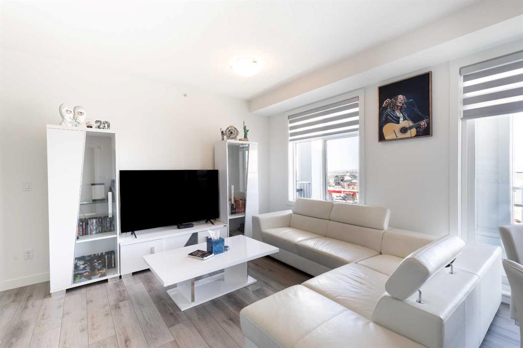 Welcome to Auburn Rise! Here’s your rare opportunity to own one of the best in the building in one of Calgary’s few LAKE communities; A TOP FLOOR, CORNER UNIT featuring TWO BEDROOMS, TWO FULL BATHROOMS, AIR-CONDITIONING and underground parking for TWO VEHICLES! This beautiful building is part of a well-managed complex offering modern style and contemporary finishes that rival most condos in the City, and built only 4 years ago. Step into Unit 406 and you’re welcomed with tall 9-foot ceilings and wide-plank LVP flooring that flows throughout, leading to large windows that completely fill the open-concept living space with BRIGHT natural light. With classic shaker style cabinets in crisp white, and a huge 6-person island with double-waterfall quartz counters and undermount composite sink, the kitchen is a host’s dream come true for guests and family gatherings alike. A suite of quality stainless appliances include a built-in stove and microwave oven, along with a glass countertop range promising quick and easy cleaning once the cooking is done.