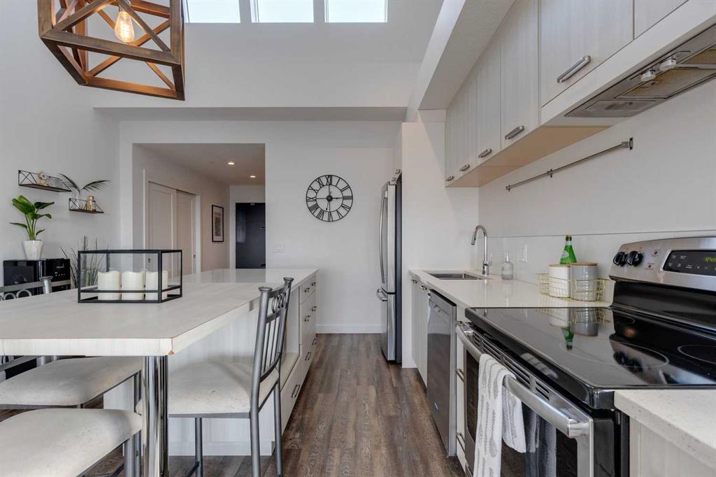 Meet “Ray” – Unbelievable Downtown View | South Exposure | Vaulted Ceilings | Titled Parking. Soak in one of Calgary’s very best downtown views from this stylish end unit in LiFTT located in the heart of Renfrew. With a coveted south exposure, soaring vaulted ceilings, and skylights, this home is flooded with natural light all day. The bright living room frames the skyline like artwork, and the private balcony is a prime vantage point to watch the city glow—unobstructed views stretching from sunrise to nightfall. Inside, you’ll find durable vinyl plank flooring and a modern kitchen with quartz countertops, ample cupboard space, and a built-in eating area. As a bonus, there’s a gas line behind the stove. The spacious bedroom features a walk-through closet leading to a sleek 4-piece bathroom, while the large laundry/storage room provides rare extra space. Additional perks include underground titled parking and a separate storage locker. Located at 730 5 St NE, you’re just steps from Renfrew’s best restaurants, cafes, and amenities—Namo Cafe, SS106 Aperitivo Bar, Blue Star Diner, UNA, breweries, fitness studios, and easy access to the river pathways and downtown. A one-of-a-kind inner-city condo that blends modern design, practical space, and a show-stopping view.