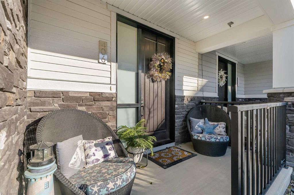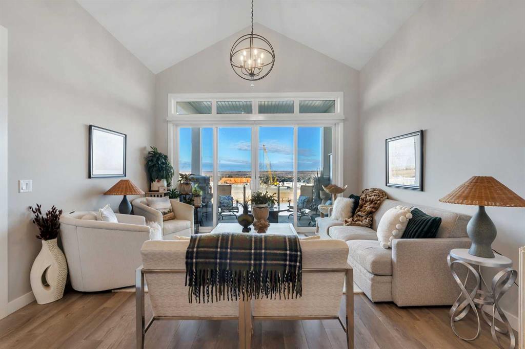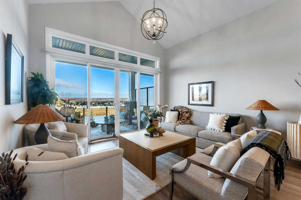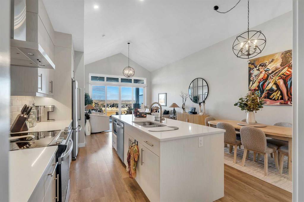 This exceptional bungalow villa offers the perfect blend of luxury, privacy, and natural beauty, ideally situated on a serene water feature and lush green space with a scenic walking path steps away. From the moment you arrive, the tranquil setting and elegant exterior make a lasting impression. Stepping inside, you’re welcomed by soaring vaulted ceilings, grand 8-foot doors throughout, and a main floor filled with natural light. A beautiful neutral colour palette and laminate flooring lead you to a stunning show-stopper kitchen designed for both everyday living and effortless entertaining. The kitchen is beautifully appointed with floor-to-ceiling white cabinetry, sleek quartz countertops, and modern stainless-steel appliances, flowing seamlessly into the open-concept dining and living area. Expansive patio doors extend the living space onto a private patio, creating an inviting indoor-outdoor connection. The serene primary suite offers a spacious retreat with a walk-through closet and a spa-inspired ensuite featuring a tiled shower so large it could host a party. A convenient main-floor powder room and laundry area make daily living easier. The fully finished sunshine basement offers incredible versatility, with space for a home office, gym, games room, or cozy media space, along with a comfortable guest bedroom, a full bathroom, and generous storage. Opportunities like this are rare. Enjoy easy access to Stoney Trail and Highway 1, which make for quick getaways to the mountains, and shopping is just minutes away.