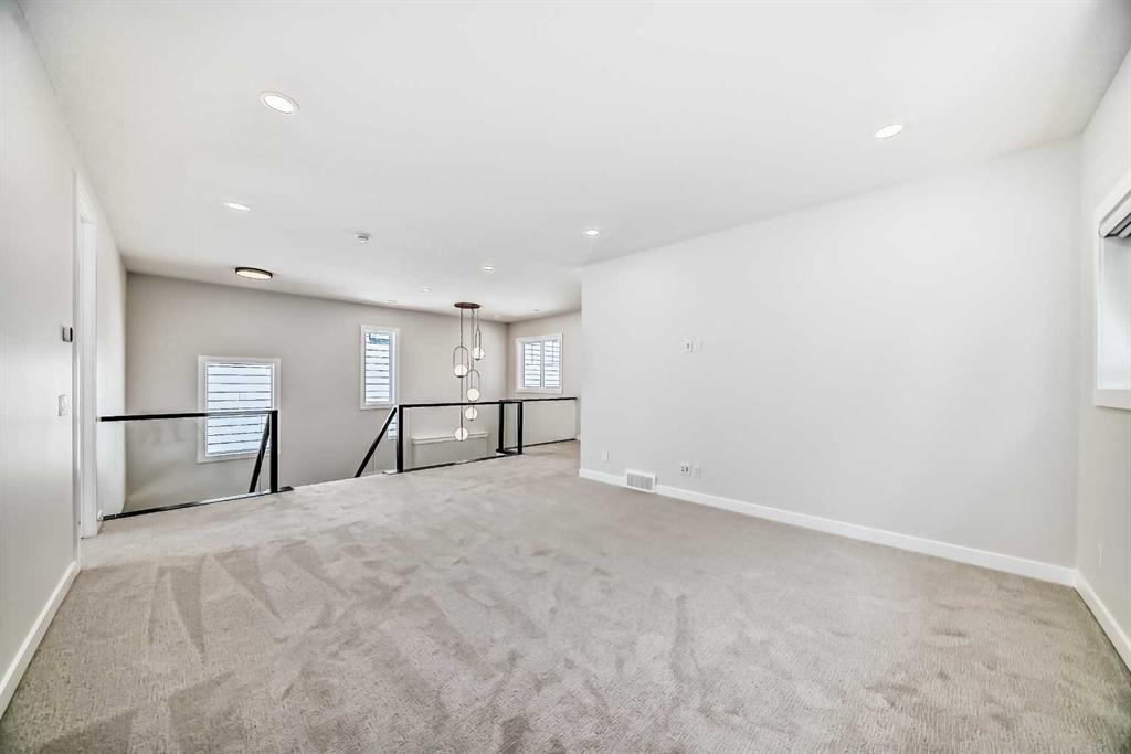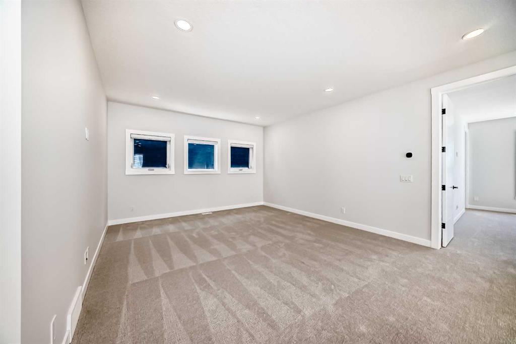 The finished walkout basement provides incredible versatility with two more bedrooms, a spacious living area, a full bathroom, and a kitchen rough in—ideal for multi-generational living or guests. Additional upgrades include: an oversized island with waterfall edge and hidden cupboards for extra storage, elegant window coverings, pot lights throughout the house, vaulted ceilings, widened staircase with glass railings, 10 mm glass in the private office, luxurious primary ensuite with oversized shower, drywalled and insulated garage and much more.