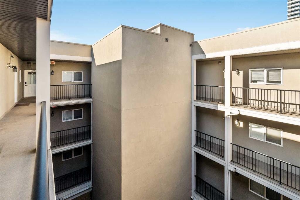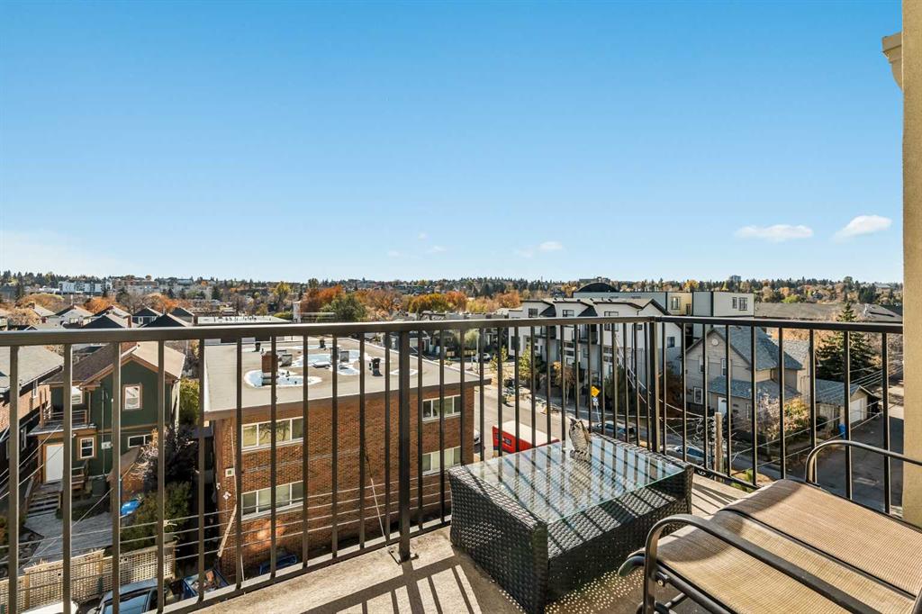 Top floor 1 bedroom plus den condo with bright south exposure and beautiful views in a pet-friendly building! Perfectly situated just a quick 4-minute walk to the Sunalta LRT Station and only minutes to trendy 17th Avenue, downtown, and the river pathways. A sunlit breezeway overlooking the courtyard leads you to your door, where you’ll be welcomed by an abundance of natural light and impressive 9’ ceilings. The well-designed kitchen features a centre island with raised eating bar, stainless steel stove and microwave, and a convenient wall cabinet for extra pantry storage. Adjacent to the kitchen, the dining area offers plenty of space to host family and friends for dinner. The open-concept living room is bathed in sunshine from the south-facing windows and flows effortlessly to the large balcony, creating a seamless indoor/outdoor lifestyle. Enjoy your morning coffee or evening barbeques while soaking in the beautiful views from this fantastic outdoor space. The primary bedroom is a peaceful retreat, complete with a cooling ceiling fan and ample room for a king-sized bed. A versatile den—accessible from both the bedroom and living room—makes an ideal bright office or study area. The stylish 4-piece bathroom features a modern vessel sink and an additional wall cabinet for bonus storage. Enjoy the convenience of in-suite laundry with full-sized washer and dryer, plus titled underground parking to keep your vehicle safe from the elements while you explore this vibrant community. Outdoor enthusiasts and commuters alike will love being steps from the LRT station and river pathways, making it easy to balance city life with outdoor enjoyment. An exceptional top-floor condo in a well-managed, pet-friendly complex—offering unbeatable value and location in the heart of the inner city!
