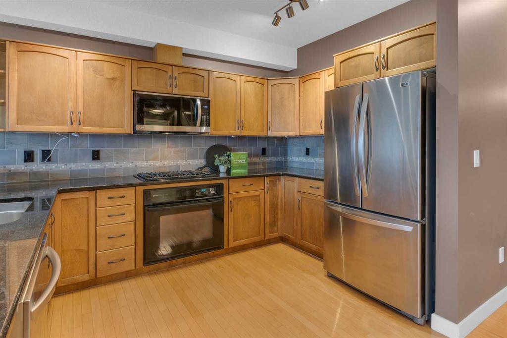 Welcome to The Hemisphere on the Bow, a quiet, well-managed, pet friendly, 28-unit building perfectly located just steps from the Bow River and the river pathway system! This top-floor, two-storey condo offers 1 bedroom plus loft, 3 full bathrooms, a very large in-suite storage room, titled underground parking and a storage locker. This well cared for condo features an open concept main level with a spacious kitchen with granite countertops, wood cabinetry, raised breakfast bar & stainless steel appliances. The kitchen opens onto the dining room, as well as onto the living room with vaulted ceilings, large windows, a gas fireplace & the patio door out to the roomy deck with gas hook up for your bbq. The main-floor primary bedroom is a standout, featuring vaulted ceilings, oversized windows, a walk-in closet, and an ensuite with a jetted tub, separate shower, and extended vanity offering ample counter and storage space. Completing the main level is a second full bathroom, a laundry area with stacked washer and dryer, and a convenient walk-in storage/coat room near the foyer. The upper loft level offers incredible versatility, use it as a bedroom, home office, gym, hobby room, or games area. This level also includes a third full bathroom with shower and a rare 10’ x 10’ storage room. Additional highlights include custom opening and self-closing skylights, a new expansion tank for the in-floor heating system, and a new electric heater in the utility room. One titled underground parking stall and an assigned storage locker, plus plenty of on-street parking for guests outside the building. Enjoy an unbeatable location close to Edworthy Park, coffee shops, restaurants, and shops, with quick access to the Foothills Hospital, Alberta Children’s Hospital, the University of Calgary, and downtown.