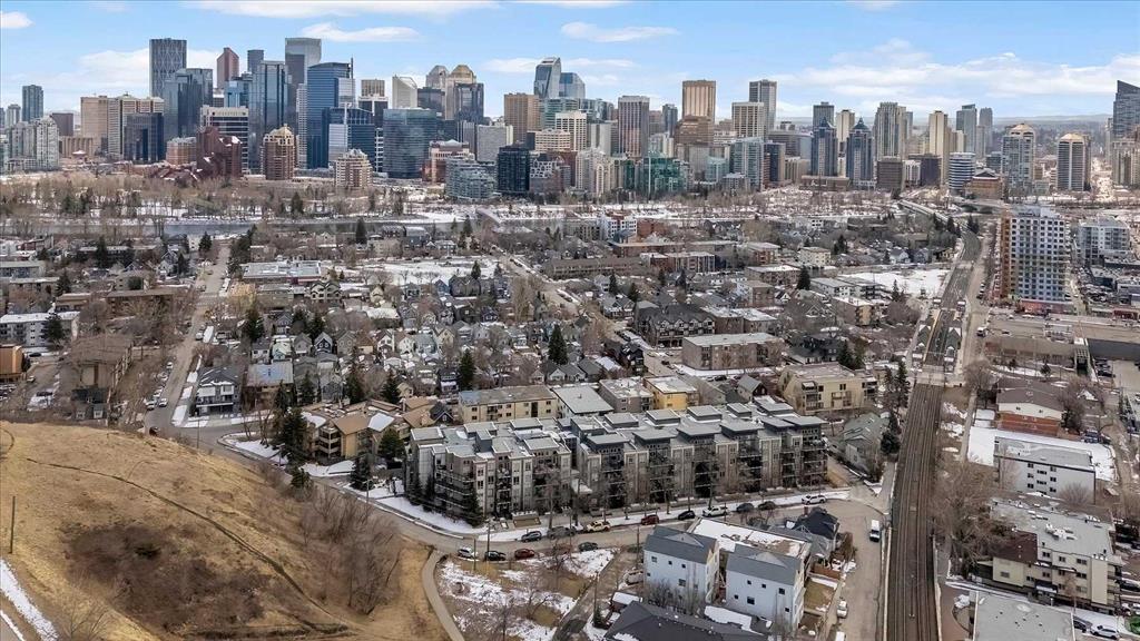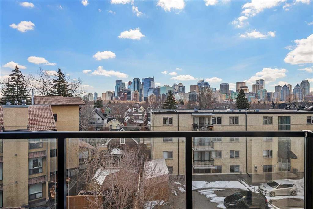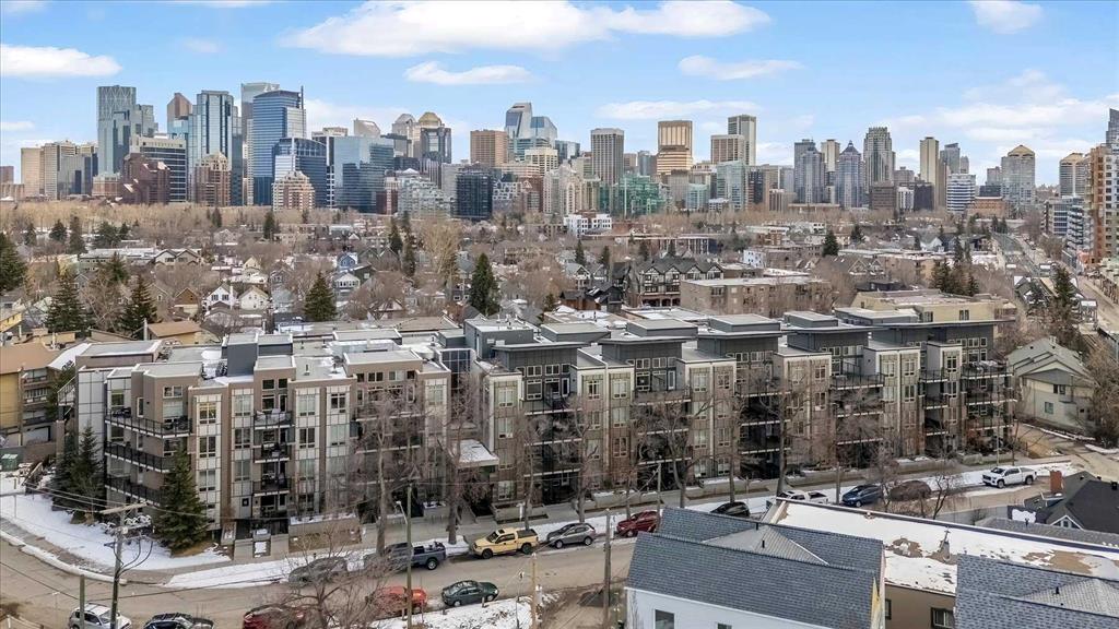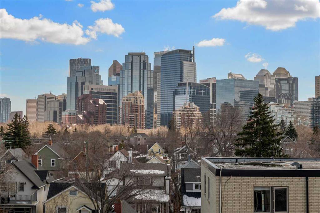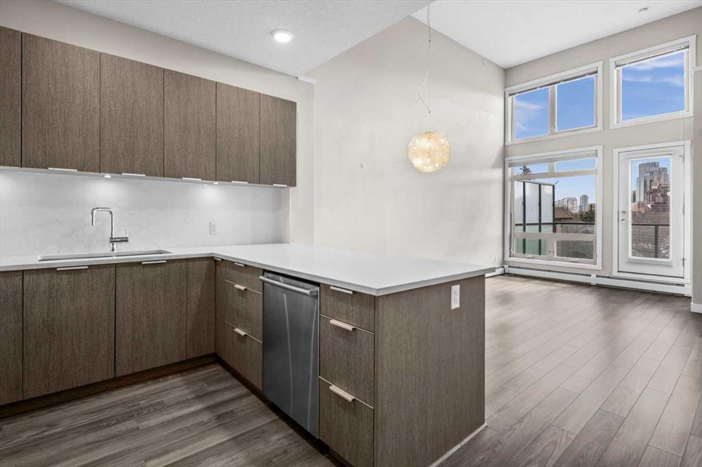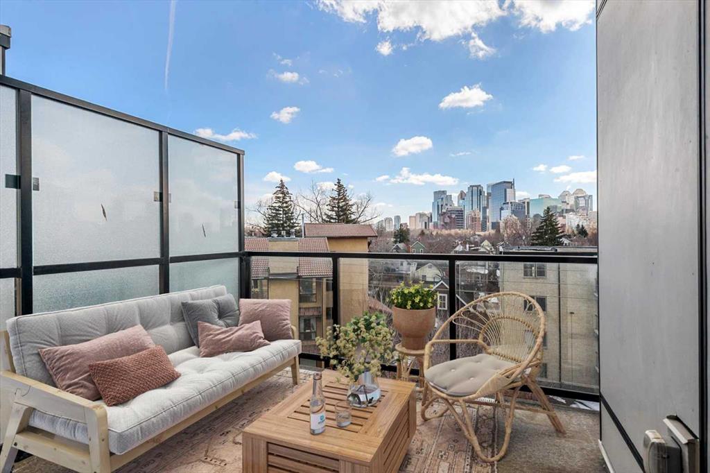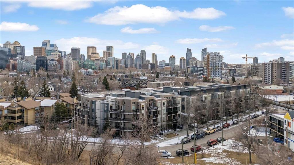There’s a version of city living that gets talked about a lot — and then there’s the version you actually get to live. This is the latter. Perched on the top floor of The Ven with views of Calgary’s downtown skyline, this one-bedroom penthouse sits in the heart of Sunnyside, steps from Kensington and one of Calgary’s most walkable communities. Fourteen-foot vaulted ceilings, massive windows that fill the space with light, and a south-facing balcony so generous it becomes a room of its own. Inside, the open-concept living and dining area feels genuinely spacious, those soaring ceilings and oversized windows do a lot of the heavy lifting, making the space feel bright and open on a quiet weeknight and easy to have people over on the weekend. The kitchen is well set up for someone who enjoys cooking, quartz countertops, stainless steel appliances, and a gas cooktop that gives you real control. In-suite laundry means one less errand on the to-do list, and additional in-suite storage means everything has a place without giving anything up. The primary bedroom is bright and naturally lit, connecting to a four-piece ensuite through a walk-through closet, a standup shower and soaker tub that make winding down at the end of the day genuinely easy. Then there’s that balcony. South-facing, loaded with sun across all four seasons, with a gas hookup ready for the BBQ and enough room to actually use it — for morning coffee with the skyline in front of you, a summer dinner that stretches into the evening, or a quiet afternoon with a book and more sun than you expected in October. The location does what only a handful of Calgary neighbourhoods can. The Sunnyside LRT is steps away, putting downtown within a seamless commute and SAIT just up the hill, the kind of access that quietly shapes how you spend your time. Puccinella, Hayden Block, and Kensington Pub are down the street for evenings out, Kensington Wine Bar when the occasion calls for it, and High Ground Cafe or Agudo Coffee Roasters for the mornings that deserve a proper start. The Bow River pathways, Prince’s Island Park, and everything the inner city offers are all within easy reach, close enough to be part of your regular week, not just a weekend plan. The building takes care of the rest — pet-friendly with board approval, visitor parking, a car wash, bicycle storage, an assigned storage locker underground, and a small workshop tucked in for the projects that need a bit more room to breathe. This is the kind of home and the kind of address that makes the decision easy, and makes you feel good about it long after you’ve settled in.