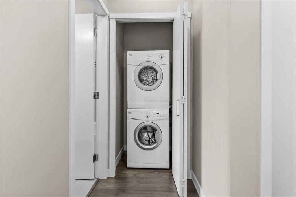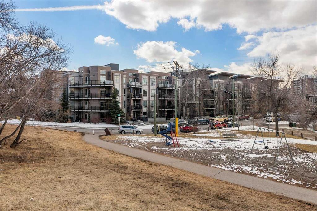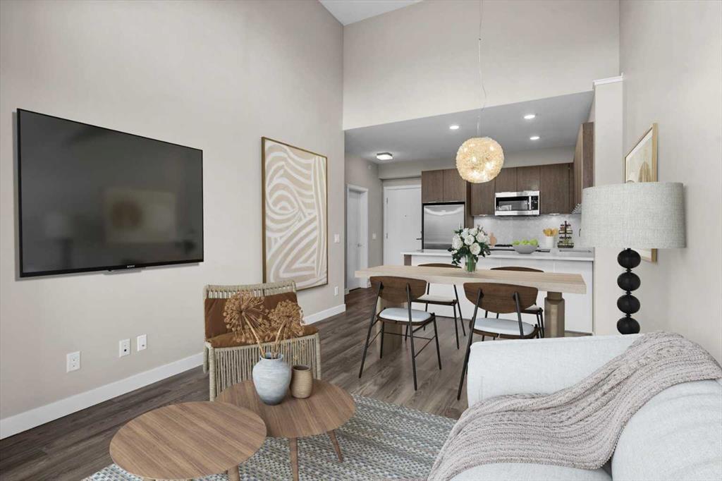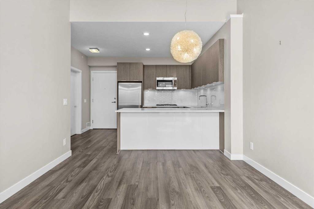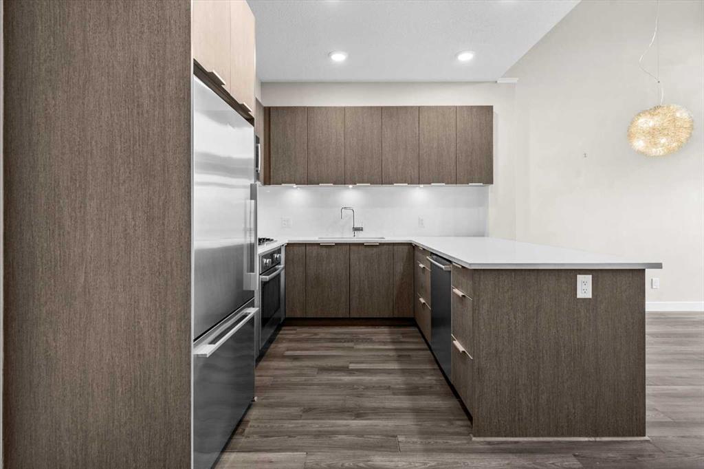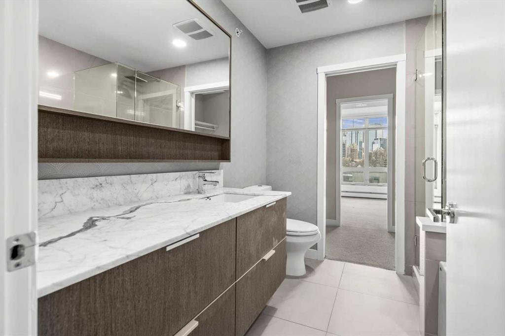 There’s a version of city living that gets talked about a lot — and then there’s the version you actually get to live. This is the latter. Perched on the top floor of The Ven with views of Calgary’s downtown skyline, this one-bedroom penthouse sits in the heart of Sunnyside, steps from Kensington and one of Calgary’s most walkable communities. Fourteen-foot vaulted ceilings, massive windows that fill the space with light, and a south-facing balcony so generous it becomes a room of its own. Inside, the open-concept living and dining area feels genuinely spacious, those soaring ceilings and oversized windows do a lot of the heavy lifting, making the space feel bright and open on a quiet weeknight and easy to have people over on the weekend. The kitchen is well set up for someone who enjoys cooking, quartz countertops, stainless steel appliances, and a gas cooktop that gives you real control. In-suite laundry means one less errand on the to-do list, and additional in-suite storage means everything has a place without giving anything up. The primary bedroom is bright and naturally lit, connecting to a four-piece ensuite through a walk-through closet, a standup shower and soaker tub that make winding down at the end of the day genuinely easy. Then there’s that balcony. South-facing, loaded with sun across all four seasons, with a gas hookup ready for the BBQ and enough room to actually use it — for morning coffee with the skyline in front of you, a summer dinner that stretches into the evening, or a quiet afternoon with a book and more sun than you expected in October. The location does what only a handful of Calgary neighbourhoods can. The Sunnyside LRT is steps away, putting downtown within a seamless commute and SAIT just up the hill, the kind of access that quietly shapes how you spend your time. Puccinella, Hayden Block, and Kensington Pub are down the street for evenings out, Kensington Wine Bar when the occasion calls for it, and High Ground Cafe or Agudo Coffee Roasters for the mornings that deserve a proper start. The Bow River pathways, Prince’s Island Park, and everything the inner city offers are all within easy reach, close enough to be part of your regular week, not just a weekend plan. The building takes care of the rest — pet-friendly with board approval, visitor parking, a car wash, bicycle storage, an assigned storage locker underground, and a small workshop tucked in for the projects that need a bit more room to breathe. This is the kind of home and the kind of address that makes the decision easy, and makes you feel good about it long after you’ve settled in.