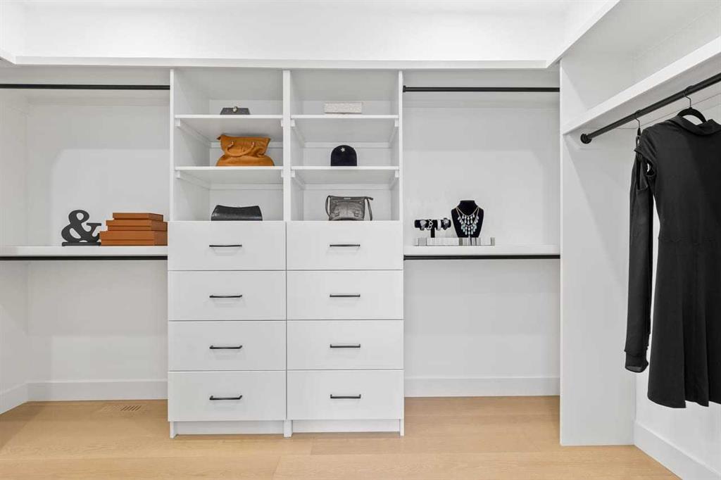 Set within the prestigious community of Patterson Heights – The Point – this exceptional luxury residence offers over 5,000 sq. ft. of elevated living designed for comfort and functionality. From the moment you arrive, the home makes a statement with a grand entryway highlighted by a floor-to-ceiling custom closet. Just off the entrance, a well-appointed mudroom features a walk-in closet and a striking full-height wall unit, providing direct access to the oversized double garage. The garage is fully outfitted with EV charging outlets, a gas heater rough-in, and hot and cold water taps. Completing this level is a full bathroom with quartz countertops and a floor-to-ceiling glass shower. The main living space is defined by 10-foot ceilings and wide vinyl plank flooring, creating a clean, modern flow throughout. The living room offers warmth and style with a custom wall unit and ambient LED lighting, while the dedicated bar area, complete with a bar fridge, is ideal for hosting. A private, light-filled gym with recessed lighting, floating shelving, and generous space for equipment. A striking open-riser staircase and a private elevator connect all 3 levels and lead to the stunning 2nd floor. Here, you’ll find a bright home office overlooking a large window, a sleek powder room, and a refined dining area anchored by a built-in LED-lit wall feature. Glass sliding doors open to a large East facing balcony, while the family room impresses with a coffered ceiling, art-block feature wall, and gas fireplace. Additional sliding doors lead to a fully landscaped backyard complemented by a composite rear deck with a gas line, backing onto peaceful green space, where nature and wildlife create a serene setting. The chef-inspired kitchen anchors the home with a quartz waterfall island, hidden cabinetry, two-tone modern cabinets, and high-end stainless steel appliances. A fully equipped spice kitchen allows for effortless entertaining, while a modern breakfast nook with a statement light fixture completes the space. The upper level is a private sanctuary, beginning with a grand primary suite set behind French doors. Enjoy a private balcony overlooking green space, a juice bar, in-floor heated ensuite, and a spa-style bathroom featuring a freestanding tub and a glass-enclosed steam shower with rainfall head and granite seating. Two additional bedrooms share a Jack & Jill bathroom with quartz countertops, while a fourth bedroom offers its own full bath and walk-in closet. A thoughtfully finished laundry room enhances everyday convenience. A bonus room with downtown views and an additional wall unit completes the upper level, which continues the home’s open feel with 9-foot ceilings throughout. Additional highlights: basement under-slab heating rough-in, a 75-gallon hot water tank, two high-efficiency furnaces, two central A/C units, and extensive built-in cabinetry. Don’t miss the opportunity to own this exceptional luxury home. Book your private showing today!