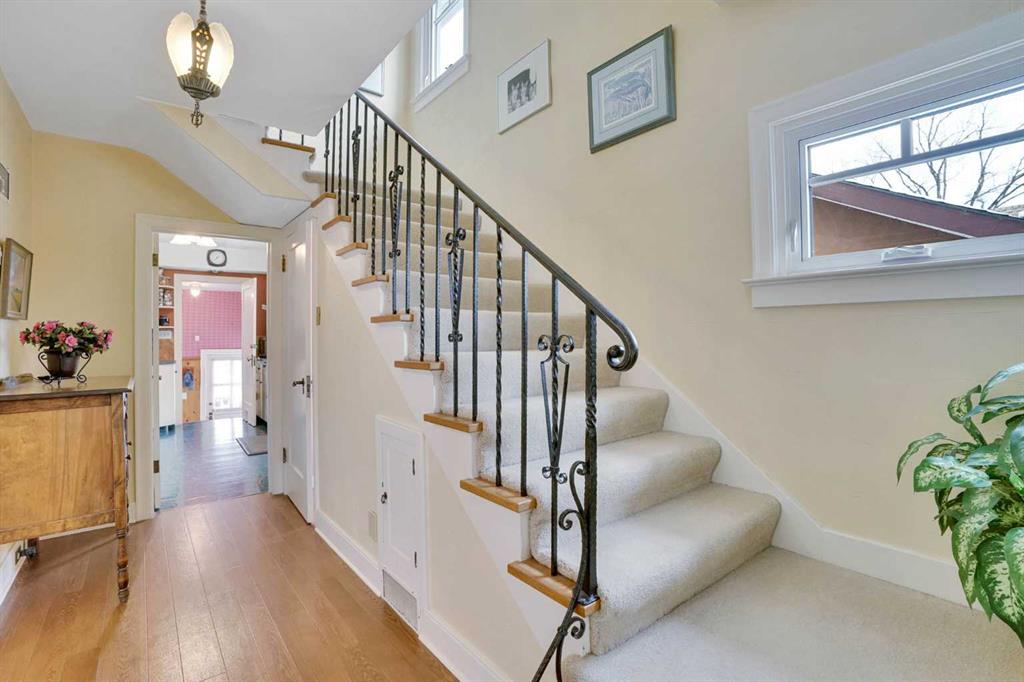 Open house Saturday March 03, 2 to 4, 408-11 avenue N.W. Offered for the very first time, beloved home on one of the most prime Avenues in the inner city. Tucked in behind Crescent Road and less than 45m to Crescent Park with many, all season, family friendly recreational facilities. Check out the children’s playground, new NHL size Skating Rink, Baseball diamonds, Tennis courts, Basketball court and Curling Rink. Character, 1997 sq.ft. 3 bedroom, 2 storey featuring large windows and formal rooms which rival modern home design. Inviting main floor with a sunny, spacious living room and dining room, cozy library/den, a functional kitchen plus a cheery eating area with views of the beautiful backyard. Many custom highlights; cornice ceiling moldings, French doors, dual sided, brick, wood burning fireplace, site finished oak hardwood on the main and upper floors. Large primary bedroom with walk in closet and access to a west rooftop deck – perfect for sipping summer Sangria’s. There are two more generously sized bedrooms perfect for the kids or an extra office space and a large four piece bath. Exceptionally well cared for and in pristine condition. Situated on a 50×120 foot lot graced with elegant trees and professional, mature landscaping that has been lovingly and meticulously maintained. Unwind on your cobblestone patio and enjoy the vibrant display of hardy perennials and shrubs bursting with color through spring and summer. Lined with century-old boulevard elm trees, this block offers a distinctively historic and timeless appeal increasingly rare in Calgary. A very quiet location; a short stroll to downtown, Prince’s Island, St. Patrick’s Island and the Bow River pathway. Bordering Rosedale with City, River & Mountain views.