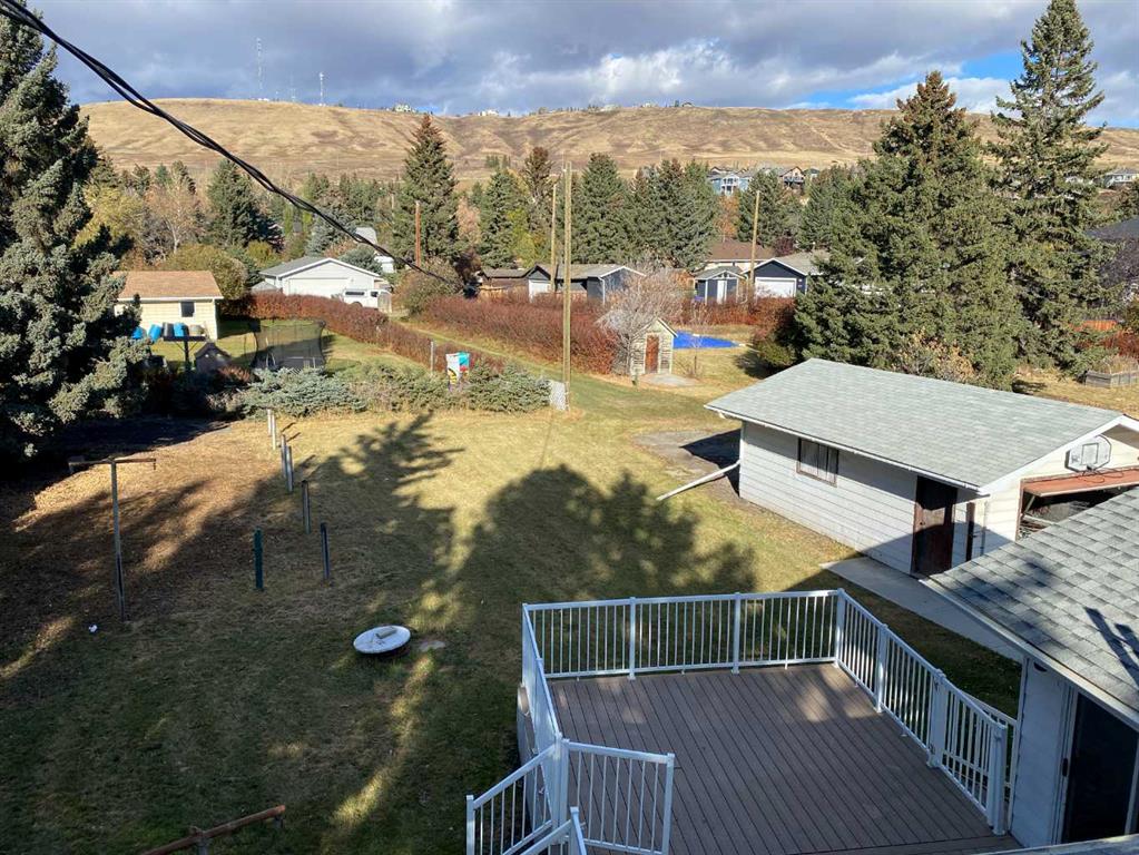 **Attention** Lots of Potential for this large lot in the East side of Cochrane. This 1962 home is situated on a huge 13,218 sq foot lot with back alley access, not many lots this big in Cochrane. The home will need some TLC but has a newer furnace (approximately 5 years old), hot water tank and asphalt shingles (approximately 2014). The upper level of the home has 3 entrances and consists of a Kitchen, dinning, family room, 3 bedrooms and a 4 pc bathroom. The lower level has 1 bedroom, recreation area, storage and laundry hook ups. From the kitchen patio doors is the large north facing composite deck, back yard and oversized single garage. The entrance to the property is a concrete driveway big enough for 5 cars. Property is close to (walking) downtown Cochrane old and new, with all the amenities needed. Across the street is a tennis court, close to a playground and Cochrane Christian Academy school. Zoned as Residential Low Density, with Day Home permitted use. Buyer to research the approval needed and zoning uses from the town of Cochrane, Discretionary uses are Secondary suite, Backyard suite and child care services and other.