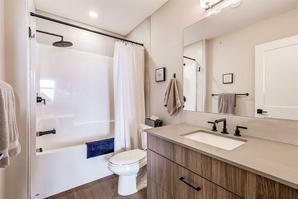 Welcome to this stunning, fully furnished, modern 1-bedroom condo—an ideal space for first-time buyers, savvy investors, or anyone seeking a comfortable, low-maintenance home. Built in 2023, this beautifully designed unit features a spacious bedroom with large windows that flood the space with natural light, complemented by a sleek 4-piece ensuite bathroom. The open-concept kitchen boasts stainless steel appliances, an eat-up island, and flows seamlessly into a bright living area—perfect for relaxing or entertaining guests. Step outside onto your private balcony to enjoy fresh air and scenic views. Additional highlights include in-unit laundry with a full-size washer and dryer, air conditioning, and a convenient half-bathroom for guests. The condo also comes with a titled underground parking stall and a separate storage locker. Located in a quiet, well-maintained complex, this home offers unmatched convenience with quick access to major routes including Stoney Trail, Sarcee Trail, and Shaganappi Trail. You’re just minutes away from schools, public transit, shopping centers, dining options, and key business hubs. Pet-friendly with board approval. This condo blends style, function, and location—making it a perfect place to call home or a valuable addition to your investment portfolio.