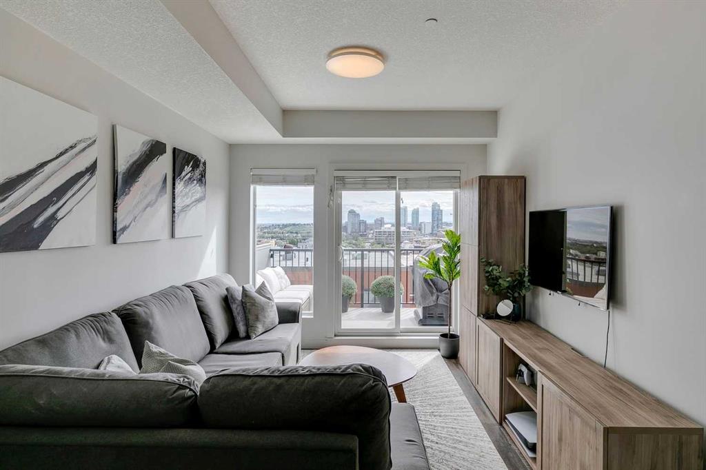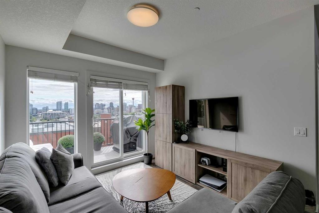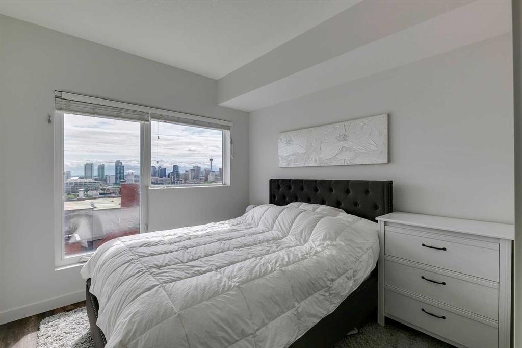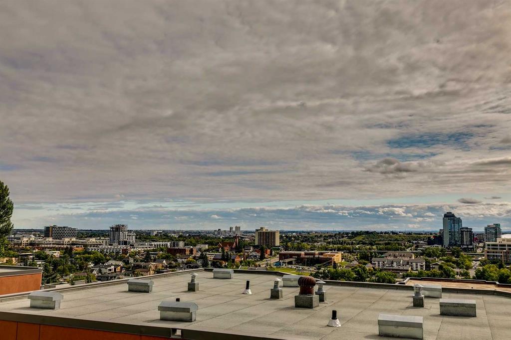 Experience PENTHOUSE living in Renfrew with sweeping, UNOBSTRUCTED VIEWS of downtown, the rolling hills of South Calgary, and even the MOUNTAINS, visible from both your living room and primary bedroom. This top-floor, striking architecture with everyday comfort, featuring 20-ft VAULTED CEILINGS with oversized SKYLIGHTS that pour natural light across the entire home. The kitchen is designed for real living and entertaining, not just looking good. You’ll appreciate the OVERSIZED ISLAND with an integrated eating table, DEEP full-height cabinets, and QUARTZ countertops that offer ample prep space for cooks and hosts alike. The open layout flows effortlessly into the living area and out to your private BALCONY, complete with a GAS line ready for your BBQ. Retreat to a spacious bedroom where morning views greet you daily. A WALKTHROUGH CLOSET leads directly into a well-appointed 4-piece bathroom with a SOAKER tub, creating a spa-like transition from day to night. A separate den/office provides the flexibility to work from home or create a dedicated hobby space. Comfort is top of mind with IN-FLOOR HEATING, AC, and custom WOOD-PLANK WINDOW COVERINGS and BLACKOUT curtains in the bedroom that add warmth and style. STORAGE is never a concern thanks to thoughtful cabinetry throughout. This home includes TITLED underground parking, a HEATED DRIVEWAY into the parkade, designated visitor stalls, plus ample FREE street parking for your guests. Located in one of Calgary’s best inner-city communities, you’ll enjoy quick access to downtown, local cafĂ©s, parks, and transit. A rare penthouse offering that blends luxury, functionality, and breathtaking views—welcome home to elevated urban living in Renfrew.