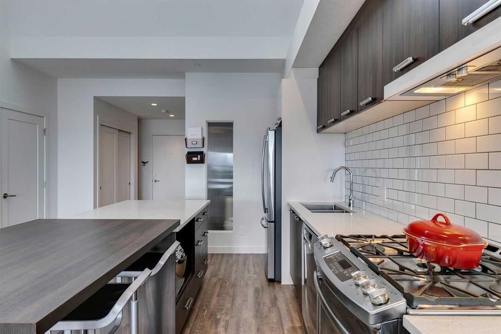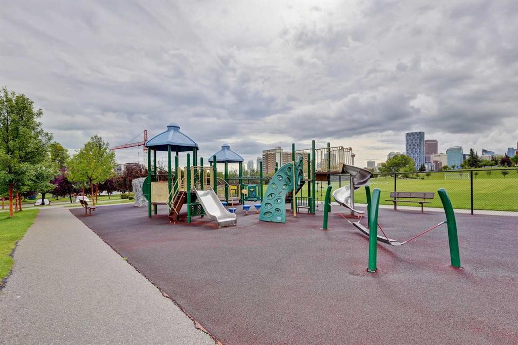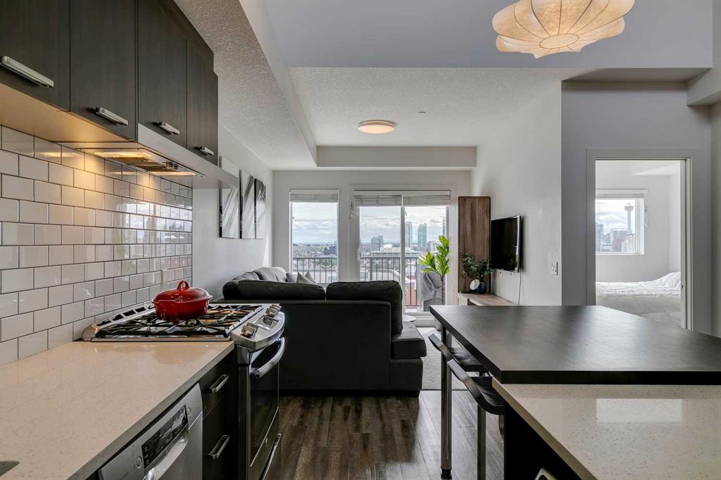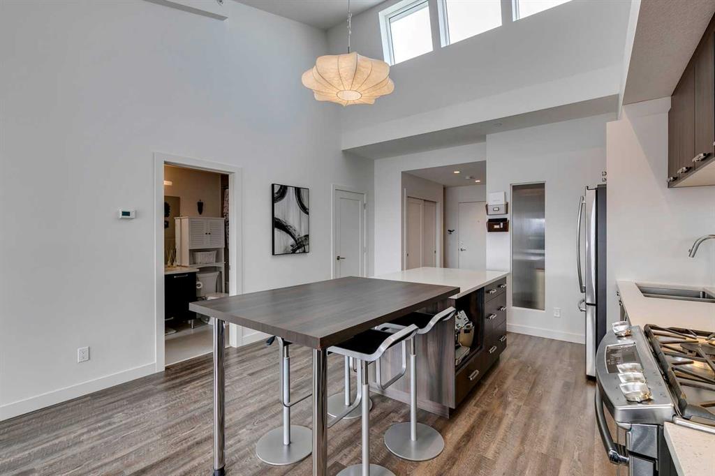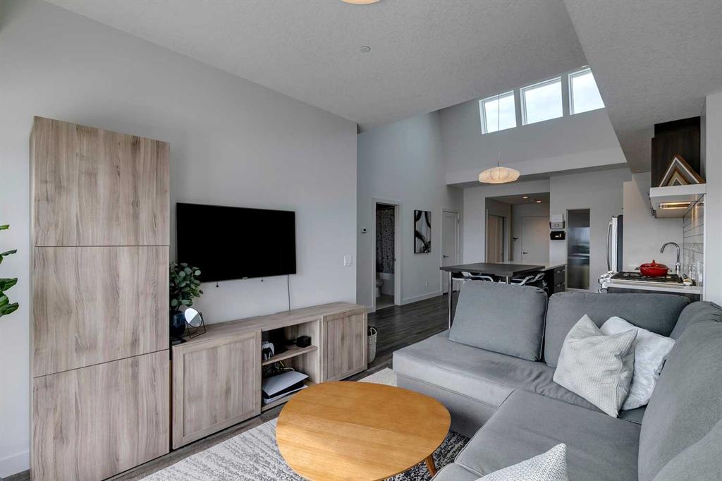 Experience PENTHOUSE living in Renfrew with sweeping, UNOBSTRUCTED VIEWS of downtown, the rolling hills of South Calgary, and even the MOUNTAINS, visible from both your living room and primary bedroom. This top-floor, striking architecture with everyday comfort, featuring 20-ft VAULTED CEILINGS with oversized SKYLIGHTS that pour natural light across the entire home. The kitchen is designed for real living and entertaining, not just looking good. You’ll appreciate the OVERSIZED ISLAND with an integrated eating table, DEEP full-height cabinets, and QUARTZ countertops that offer ample prep space for cooks and hosts alike. The open layout flows effortlessly into the living area and out to your private BALCONY, complete with a GAS line ready for your BBQ. Retreat to a spacious bedroom where morning views greet you daily. A WALKTHROUGH CLOSET leads directly into a well-appointed 4-piece bathroom with a SOAKER tub, creating a spa-like transition from day to night. A separate den/office provides the flexibility to work from home or create a dedicated hobby space. Comfort is top of mind with IN-FLOOR HEATING, AC, and custom WOOD-PLANK WINDOW COVERINGS and BLACKOUT curtains in the bedroom that add warmth and style. STORAGE is never a concern thanks to thoughtful cabinetry throughout. This home includes TITLED underground parking, a HEATED DRIVEWAY into the parkade, designated visitor stalls, plus ample FREE street parking for your guests. Located in one of Calgary’s best inner-city communities, you’ll enjoy quick access to downtown, local cafĂ©s, parks, and transit. A rare penthouse offering that blends luxury, functionality, and breathtaking views—welcome home to elevated urban living in Renfrew.