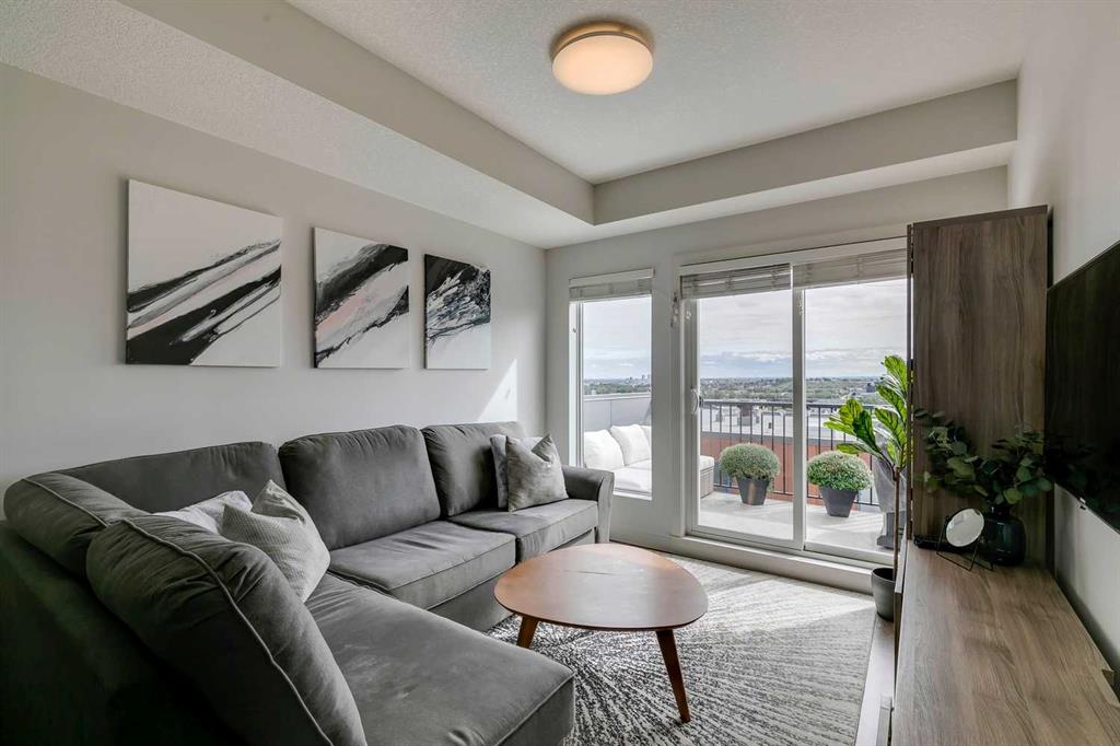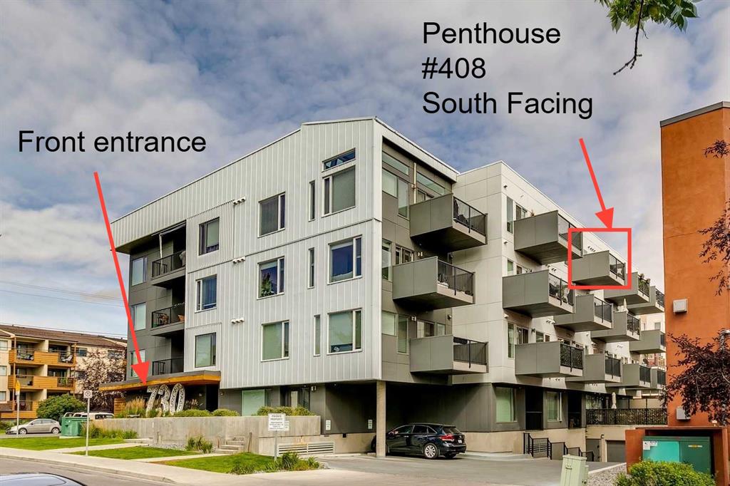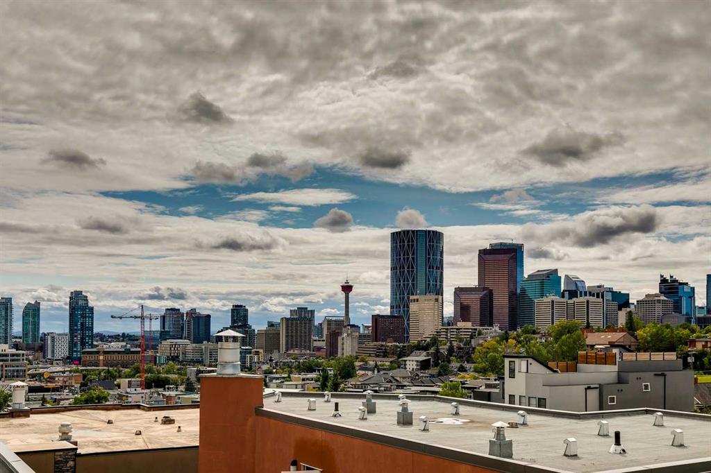 Experience PENTHOUSE living in Renfrew with sweeping, UNOBSTRUCTED VIEWS of downtown, the rolling hills of South Calgary, and even the MOUNTAINS, visible from both your living room and primary bedroom. This top-floor, striking architecture with everyday comfort, featuring 20-ft VAULTED CEILINGS with oversized SKYLIGHTS that pour natural light across the entire home. The kitchen is designed for real living and entertaining, not just looking good. You’ll appreciate the OVERSIZED ISLAND with an integrated eating table, DEEP full-height cabinets, and QUARTZ countertops that offer ample prep space for cooks and hosts alike. The open layout flows effortlessly into the living area and out to your private BALCONY, complete with a GAS line ready for your BBQ. Retreat to a spacious bedroom where morning views greet you daily. A WALKTHROUGH CLOSET leads directly into a well-appointed 4-piece bathroom with a SOAKER tub, creating a spa-like transition from day to night. A separate den/office provides the flexibility to work from home or create a dedicated hobby space. Comfort is top of mind with IN-FLOOR HEATING, AC, and custom WOOD-PLANK WINDOW COVERINGS and BLACKOUT curtains in the bedroom that add warmth and style. STORAGE is never a concern thanks to thoughtful cabinetry throughout. This home includes TITLED underground parking, a HEATED DRIVEWAY into the parkade, designated visitor stalls, plus ample FREE street parking for your guests. Located in one of Calgary’s best inner-city communities, you’ll enjoy quick access to downtown, local cafĂ©s, parks, and transit. A rare penthouse offering that blends luxury, functionality, and breathtaking views—welcome home to elevated urban living in Renfrew.