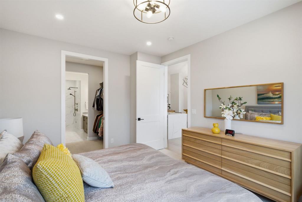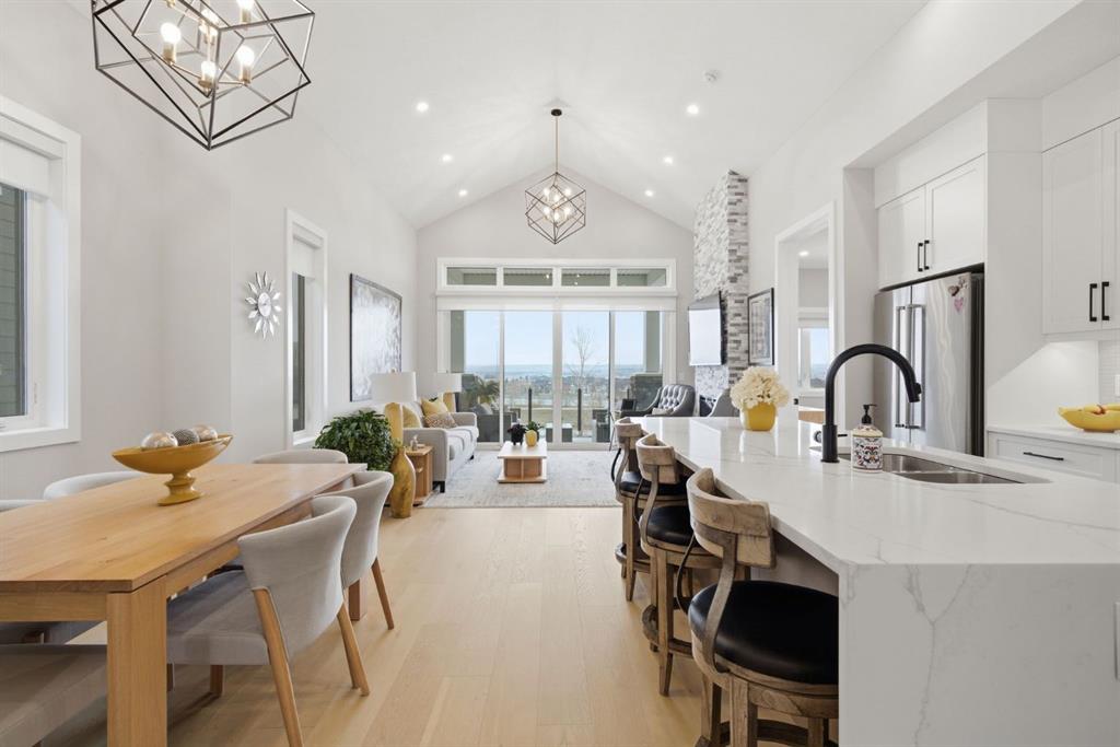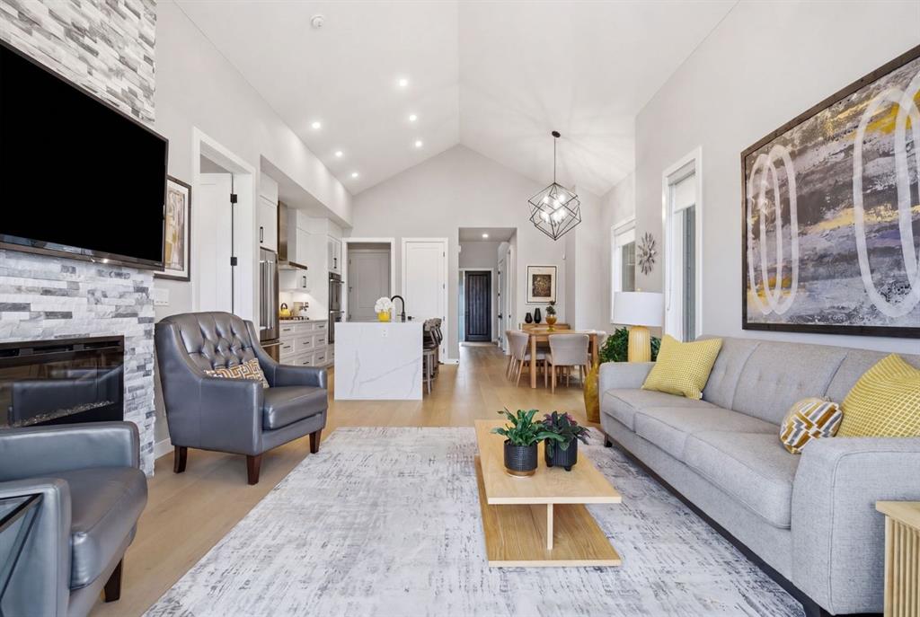 Welcome to this beautifully upgraded bungalow villa in the sought-after community of Crestmont. Offering over 2,100 sq ft of thoughtfully designed living space and a rare combination of luxury, low-maintenance living, and breathtaking views with no neighbours behind. Built in 2021 and offered by the original owners, this home showcases exceptional pride of ownership and a carefully curated list of upgrades throughout. The main level is bright and inviting, highlighted by soaring vaulted ceilings, engineered hardwood flooring, and expansive windows that perfectly frame the peaceful natural setting beyond. The chef-inspired kitchen is both stylish and functional, featuring upgraded appliances including a gas cooktop and double wall ovens, quartz countertops, full-height cabinetry, and a stunning waterfall island that anchors the space. The open-concept layout flows seamlessly into the dining area and spacious living room, where a floor-to-ceiling rock feature wall and electric fireplace create a warm and modern focal point. Step outside to the covered deck and take in the uninterrupted views—this is where the home truly shines. With no neighbours behind, you’ll enjoy a sense of privacy and tranquility that is hard to find. The primary suite offers a private retreat, complete with a walk-in closet featuring custom organizers and a spa-like ensuite with a steam shower and upscale finishes. A convenient main floor laundry room with sink and an additional 2-piece bathroom complete this level. The fully finished basement expands your living space with in-floor heating throughout, a large recreation room with a second electric fireplace, and a beautifully designed wet bar with beverage fridge—perfect for entertaining. Additional space provides flexibility for guests, a home office, or hobby areas. Additional features include an attached single garage, in-floor heating in both the basement and ensuite bathroom, upgraded lighting and finishes throughout, and the added value of being an end unit. With low-maintenance living and every upgrade already complete, this home offers a turnkey lifestyle in one of Calgary’s most desirable west communities. Don’t miss your chance to see this one today.