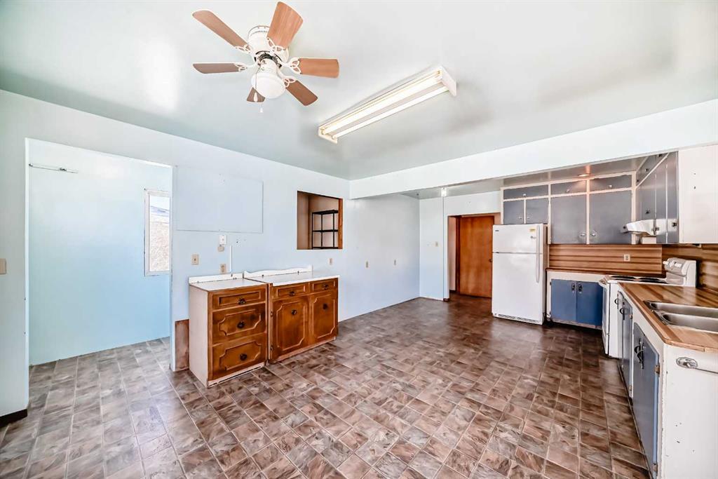 **Attention** Lots of Potential for this large lot in the East side of Cochrane. This 1962 home is situated on a huge 13,218 sq foot lot with back alley access, not many lots this big in Cochrane. The home will need some TLC but has a newer furnace (approximately 5 years old), hot water tank and asphalt shingles (approximately 2014). The upper level of the home has 3 entrances and consists of a Kitchen, dinning, family room, 3 bedrooms and a 4 pc bathroom. The lower level has 1 bedroom, recreation area, storage and laundry hook ups. From the kitchen patio doors is the large north facing composite deck, back yard and oversized single garage. The entrance to the property is a concrete driveway big enough for 5 cars. Property is close to (walking) downtown Cochrane old and new, with all the amenities needed. Across the street is a tennis court, close to a playground and Cochrane Christian Academy school. Zoned as Residential Low Density.