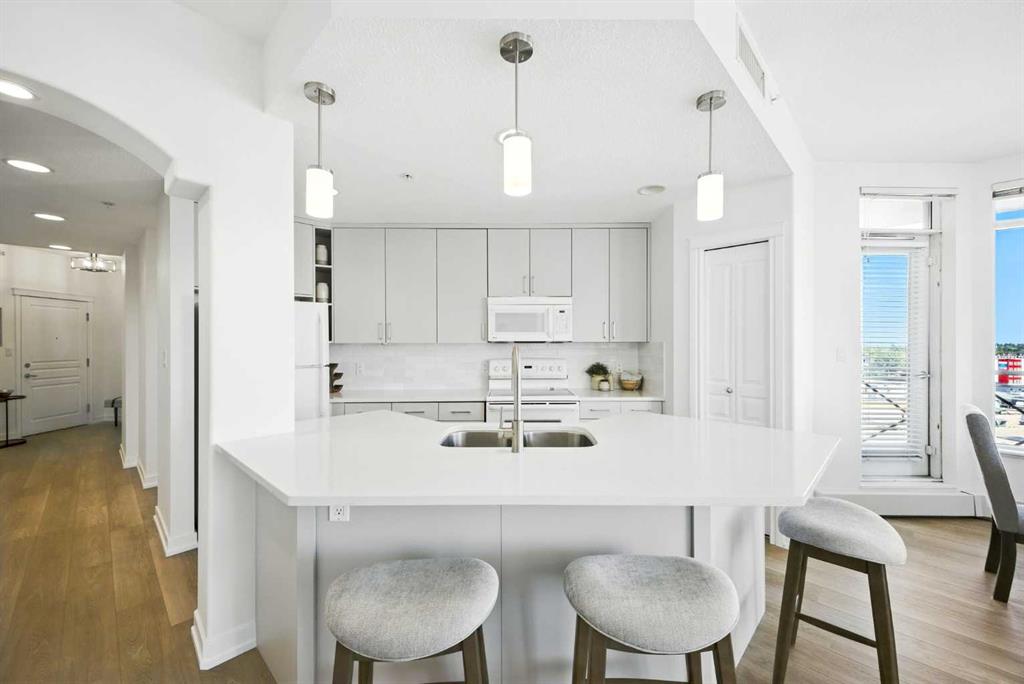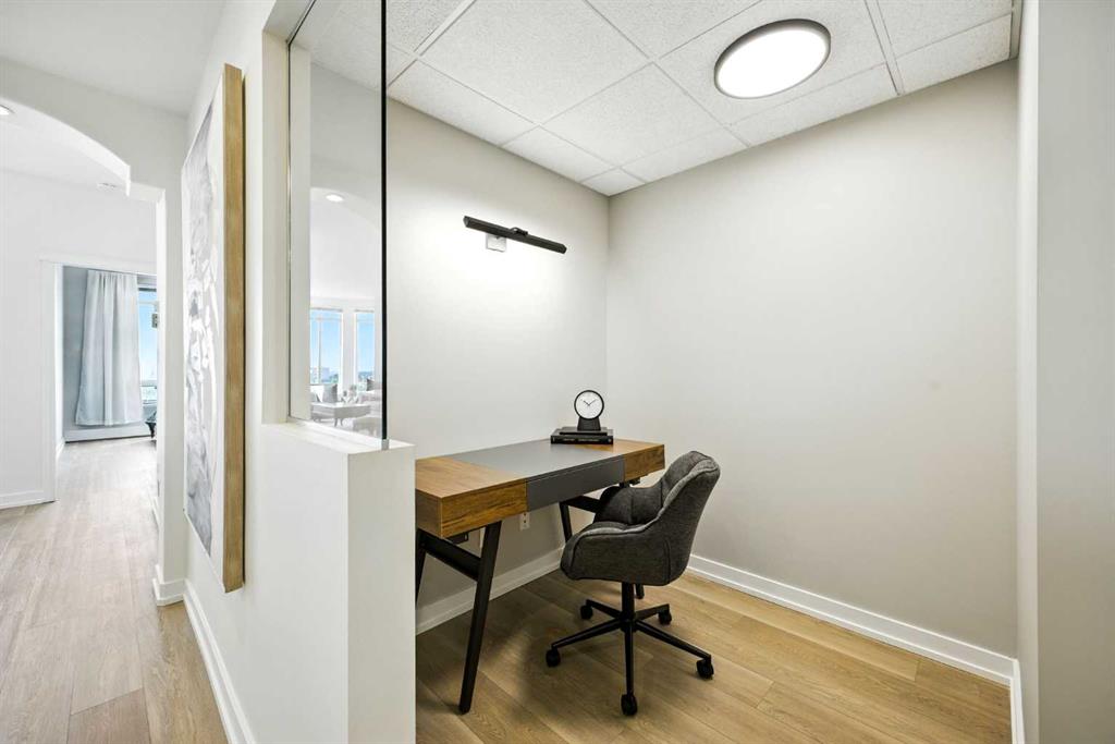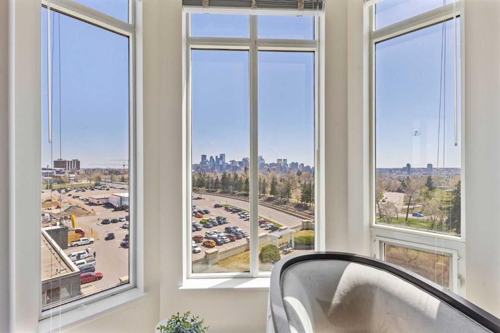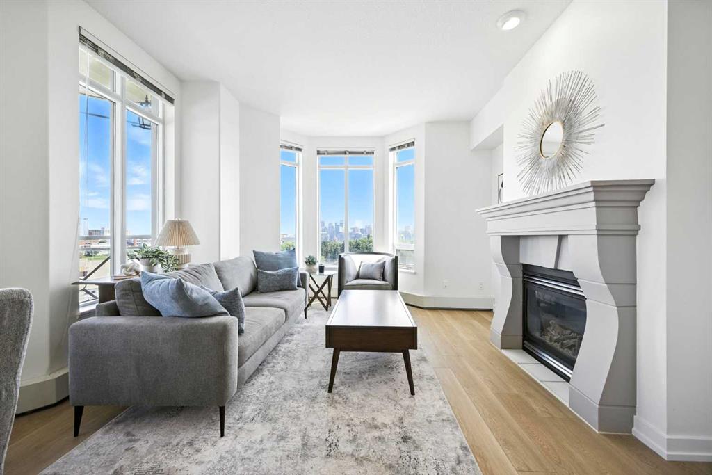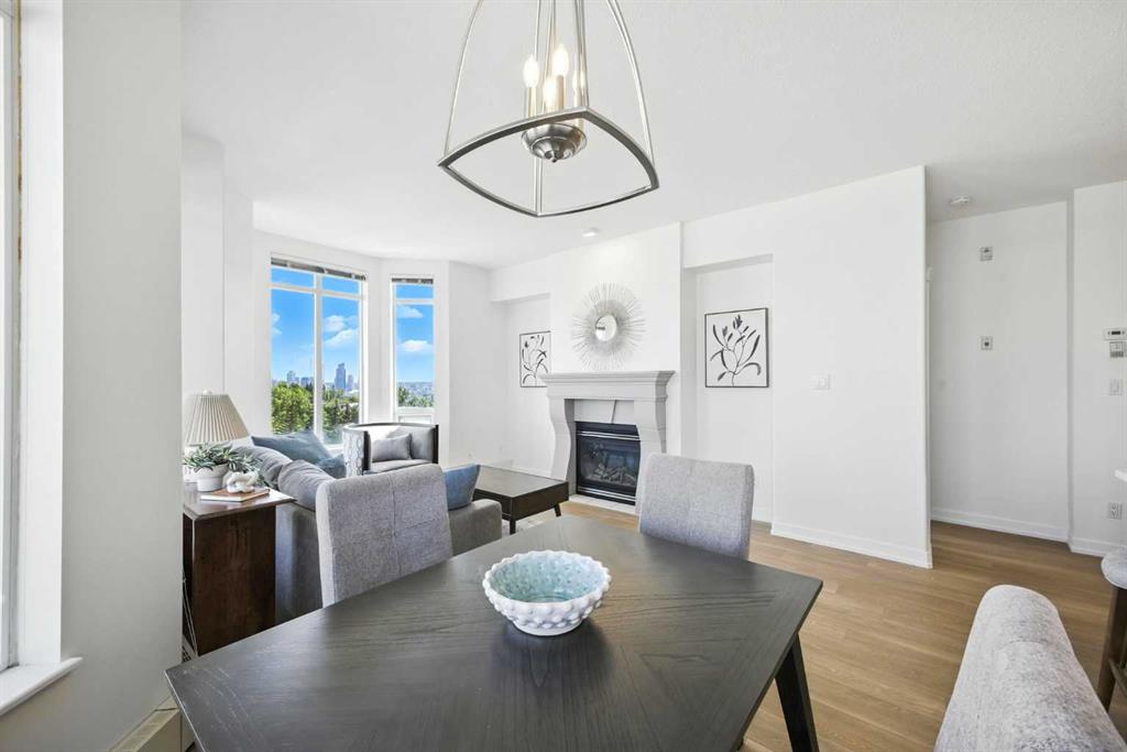 Welcome to luxury living at its finest in the prestigious Renaissance 18+ condominium development. This beautifully updated 2-bedroom, 2-bathroom residence with a dedicated office offers an elevated lifestyle in one of the city’s most sought-after locations. Step inside to discover a bright, open-concept layout enhanced by BRAND NEW luxury vinyl plank flooring, new baseboards and fresh, modern paint throughout. The heart of the home is a stunning, contemporary kitchen featuring upgraded cabinetry, gleaming new quartz countertops, a chic tile backsplash, and designer lighting—perfect for both everyday living and entertaining. Relax by the cozy fireplace in the expansive living area while soaking in breathtaking, unobstructed views of downtown Calgary. The spacious primary retreat boasts a spa-inspired 5-piece ensuite with dual vanities, a deep soaker tub, and a separate shower—an ideal space to unwind at the end of the day. This exceptional home also includes one titled, heated underground parking stall and an assigned storage unit for added convenience. Residents of the Renaissance enjoy exclusive access to world-class amenities, including a private concierge, fitness centre, games and craft rooms, a movie theatre, meeting room, outdoor terrace, and two luxurious guest suites. An elevator offers direct indoor access to North Hill Shopping Centre, while the nearby C-Train station provides quick, effortless access to downtown and beyond—just minutes away. Experience the perfect blend of comfort, convenience, and sophistication in this truly remarkable home. New staging furniture may be negotiated with price.