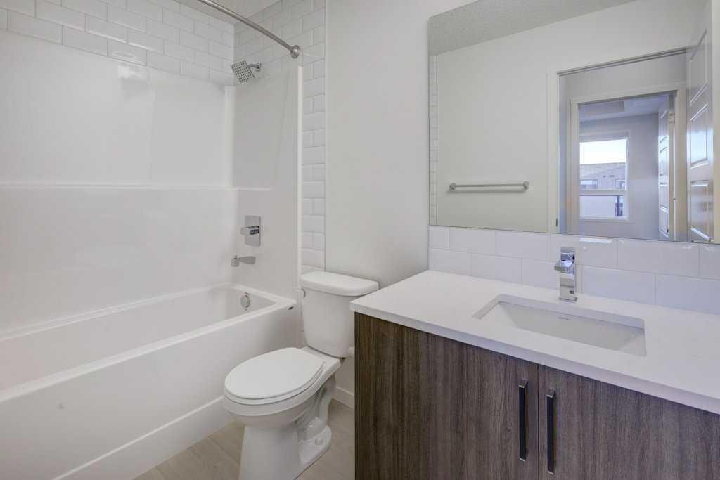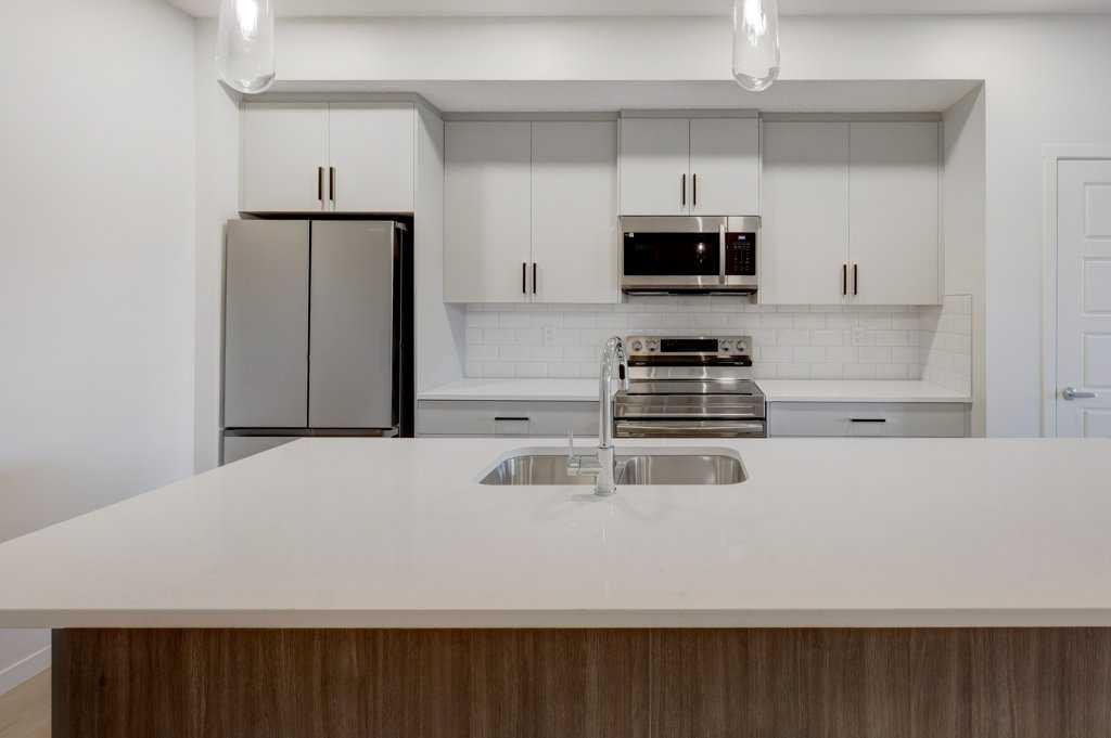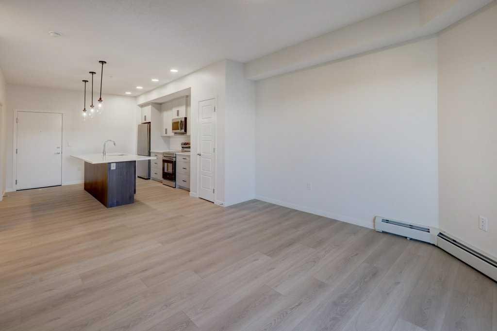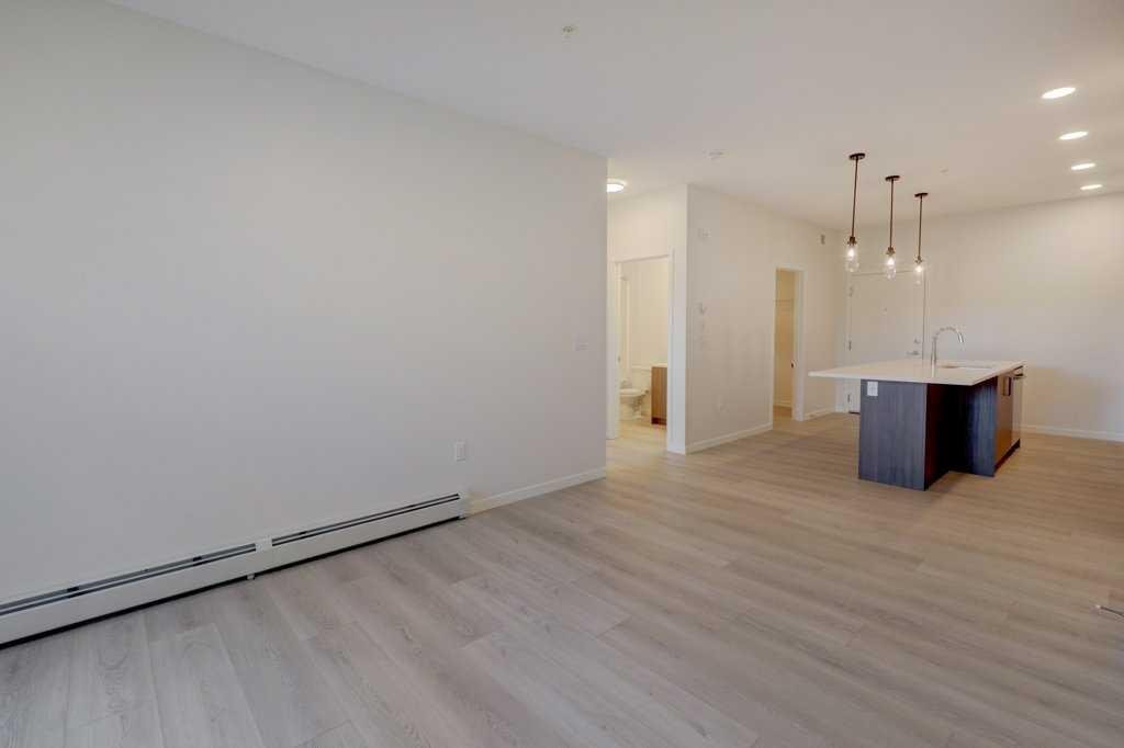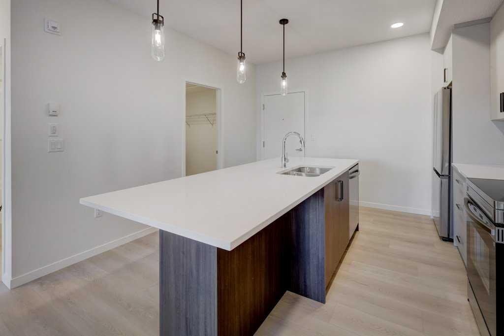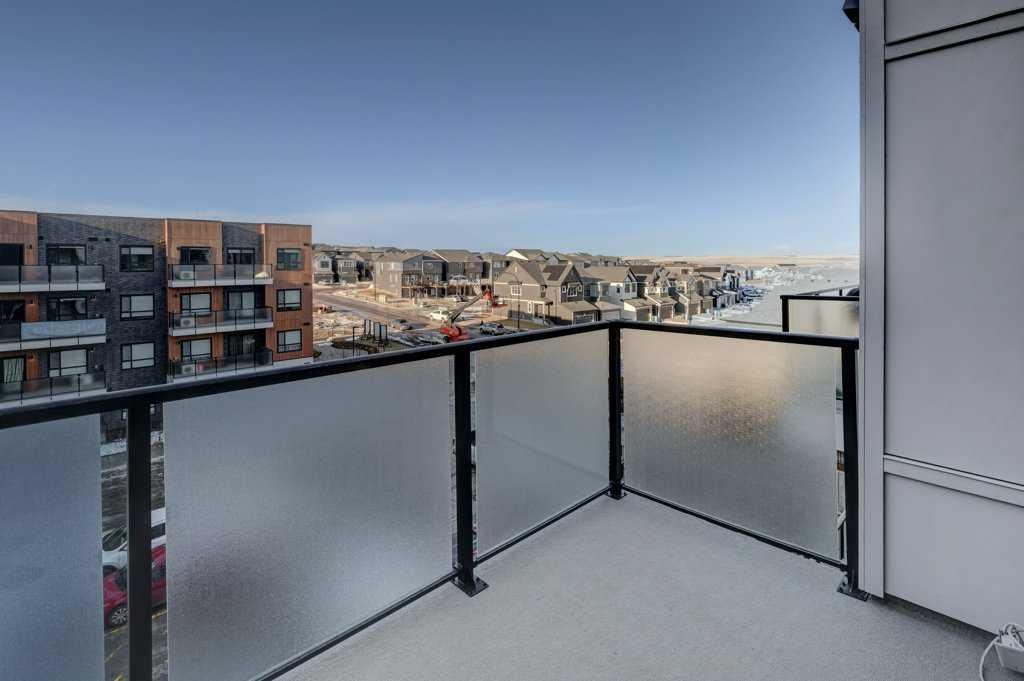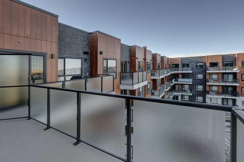 INTRODUCING GLACIER RIDGE, IN BEAUTIFUL NORTHWEST CALGARY. BUILT BY CEDARGLEN LIVING, WINNER OF THE CustomerInsight BUILDER OF CHOICE AWARD, 6 YEARS RUNNING! BRAND NEW “GR04” unit with high-spec features. You will feel right at home in this well thought-out TOP FLOOR, 652.95 RMS sq.ft. 1 bed, 1 bath home with open plan, 9′ ceilings, LVP flooring throughout (NO CARPET), Low E triple glazed windows, BBQ gas line on the patio, Fresh Air System (ERV), A/C rough-in, and so much more. The kitchen is spectacular with full height, two tone cabinets, quartz counters, upgraded bank of drawers for pots and pans, undermount sink, rough-in water line to the fridge and S/S appliances. The island is extensive with built in flush breakfast bar, which transitions into the spacious living area, perfect for entertaining. The spacious primary bedroom has a large bright window (triple pane windows) and sizeable walk-in closet. Right beside your bedroom is a 4pc bath with quartz counters, upgraded tiles to the ceiling, and undermount sink. Nearby is the spacious laundry/storage room, this is a must see (washer & dryer included). Highlights include: Hardie board siding, designer lighting package, sound reducing membrane to reduce sound transmission between floors, clear glass railing to balconies and 1 titled underground parking stall included. A once in a lifetime community in Northwest Calgary. Framed by views of the Rocky Mountains and distinguished by natural coulees that cross the land, Glacier Ridge offers a rare chance for families to live in a new community. PET FRIENDLY COMPLEX, IMMEDIATE POSSESSION AVAILABLE AND DON’T FORGET TO CHECK OUT THE VIRTUAL TOUR.